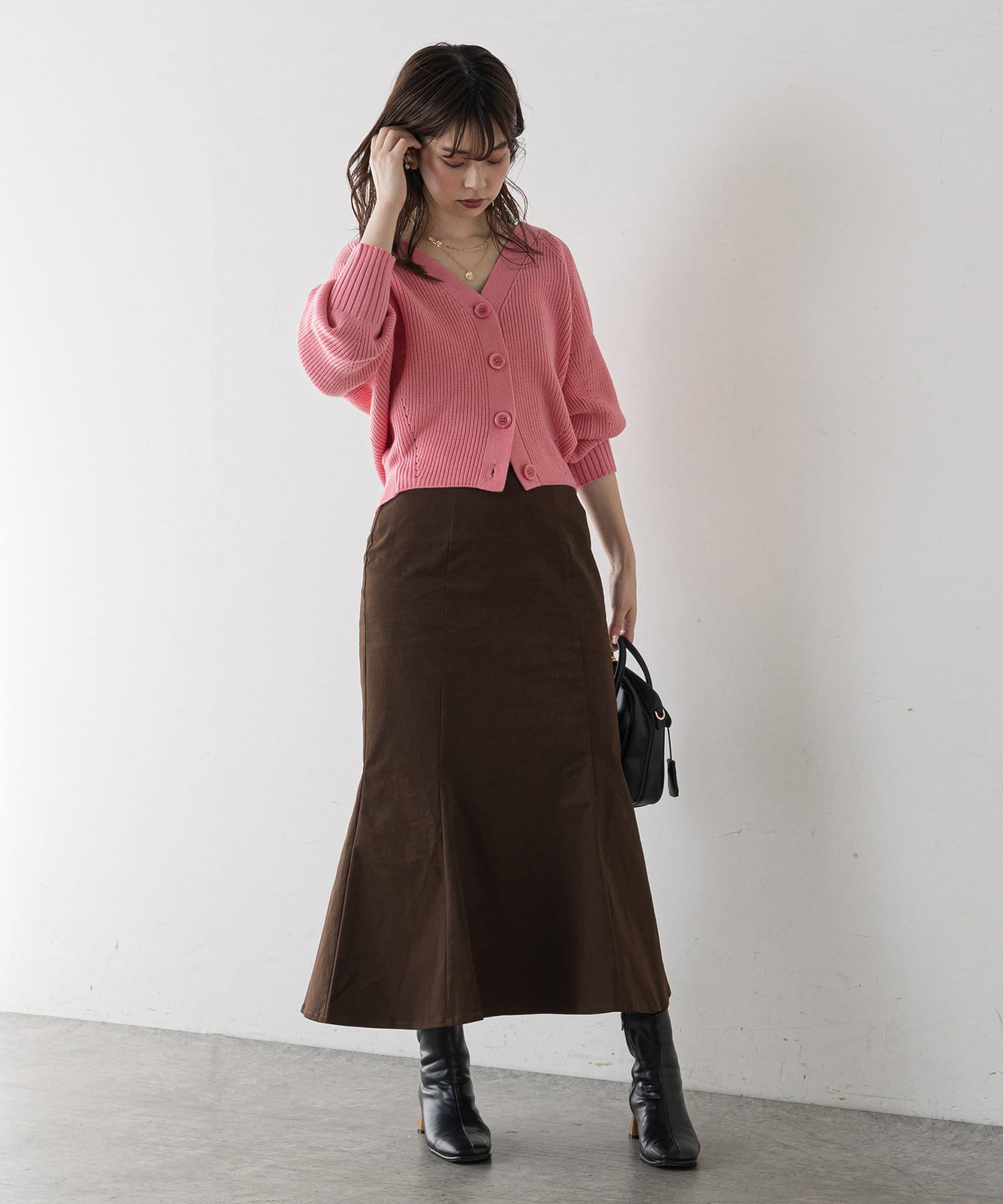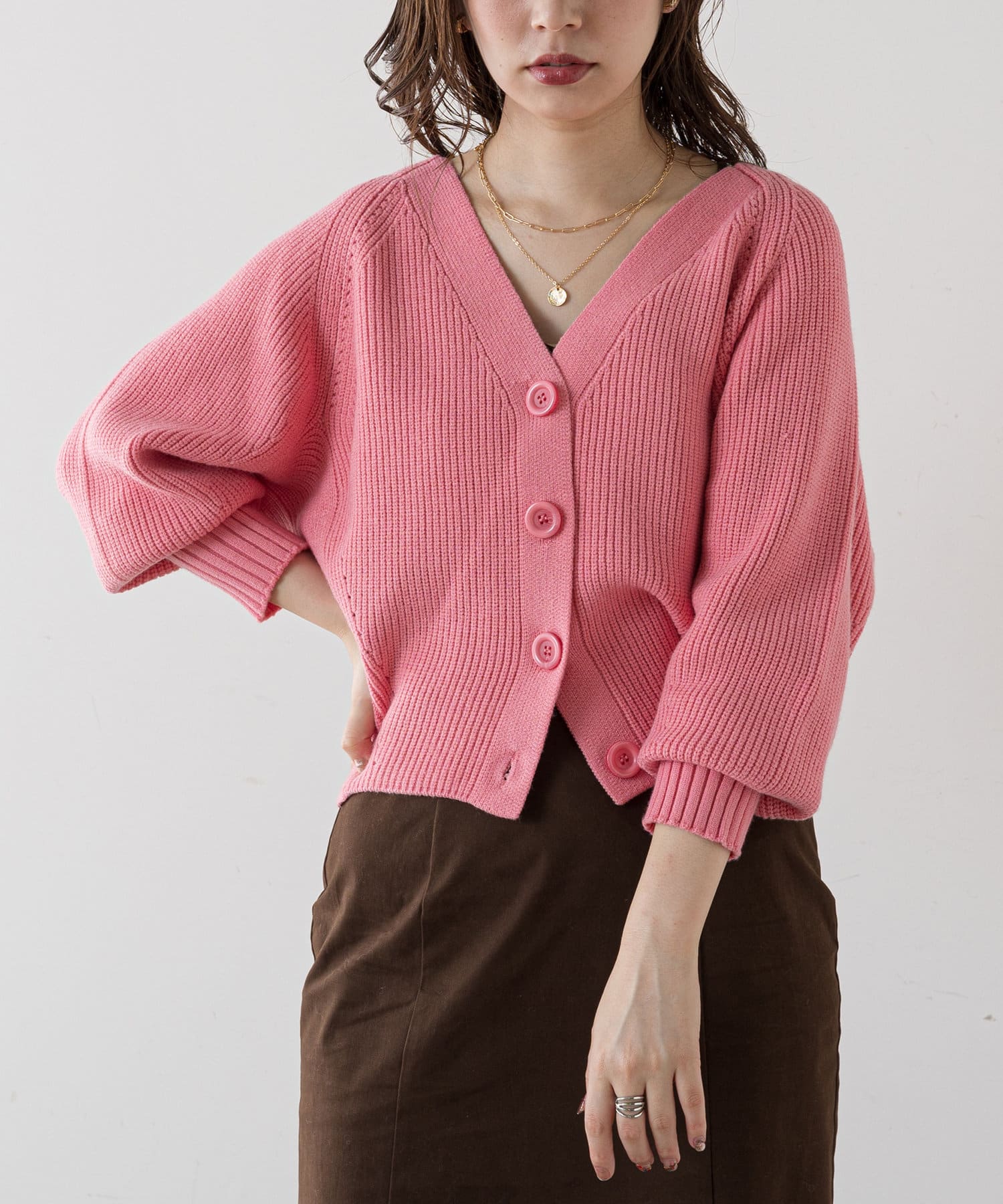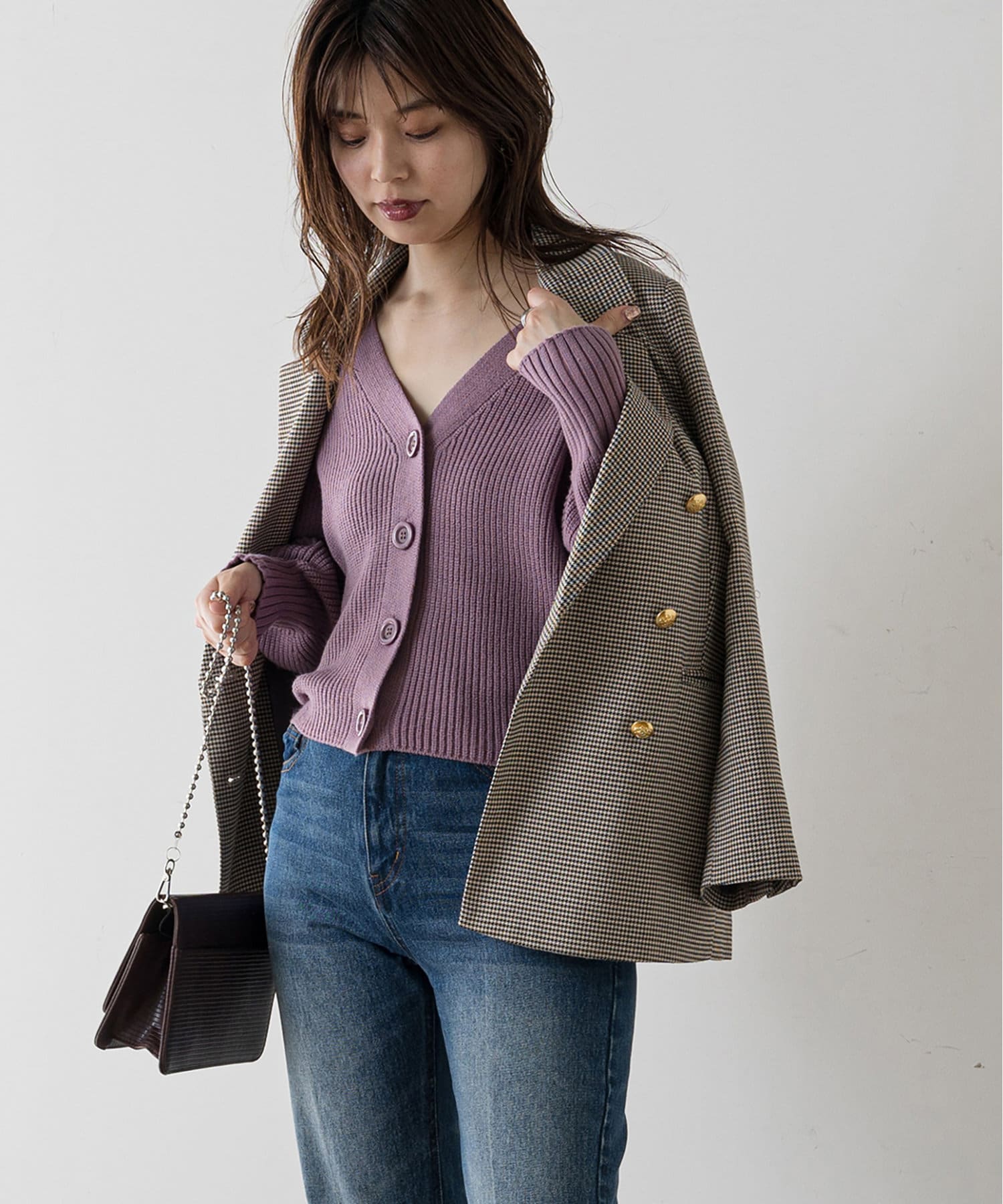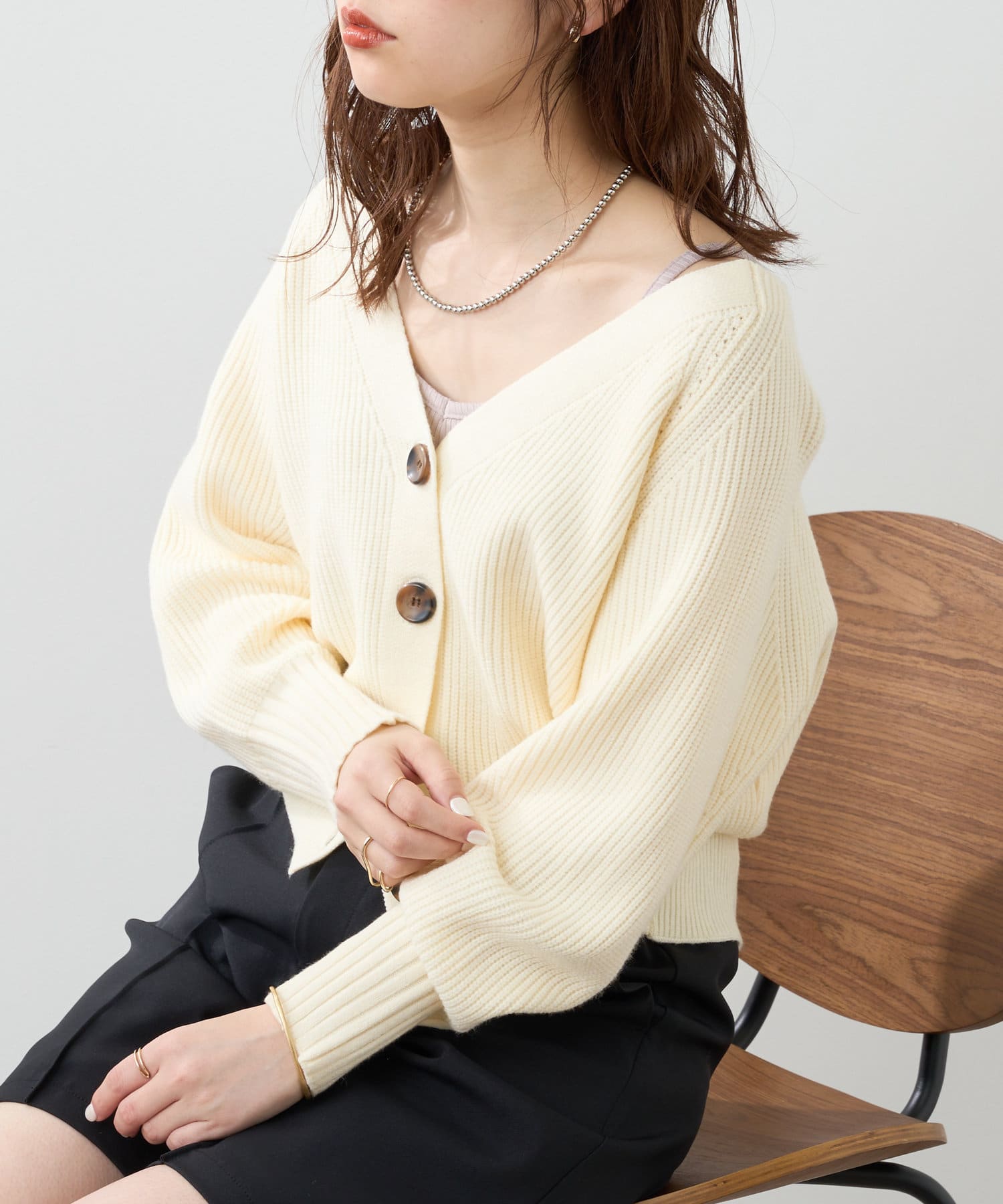 分厚すぎず、薄過ぎず。長め丈のカーディガン好みですが、これくらい少し短め丈もスッキリ着れて可愛いなと思いました。カーディガン合わせはもちろん、ハイウエストのボトムとも相性良くて、たくさん着まわせそうです。