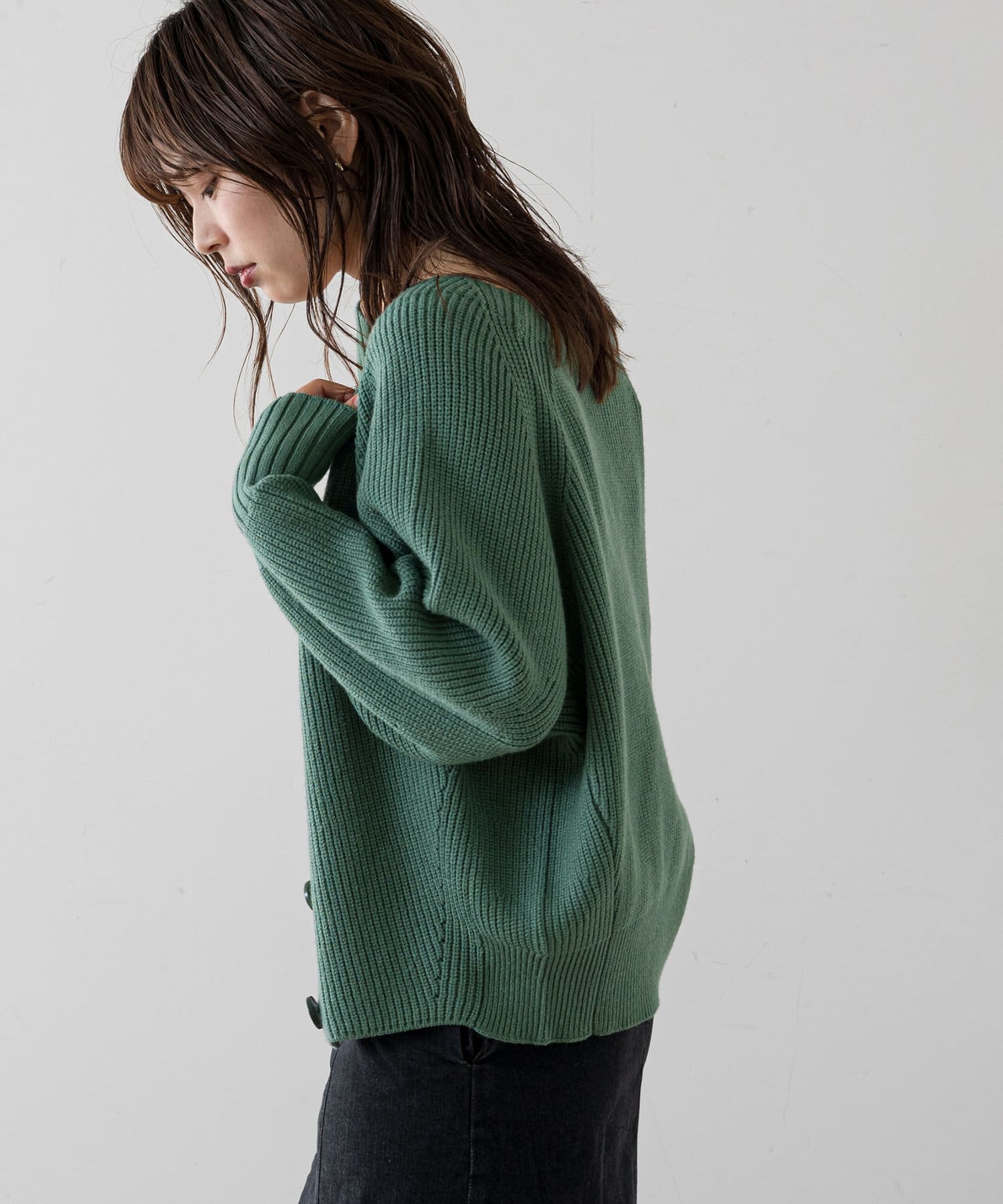 ボタンを閉じてプルオーバー風に着てもスタイリングが決まるデザインです。
