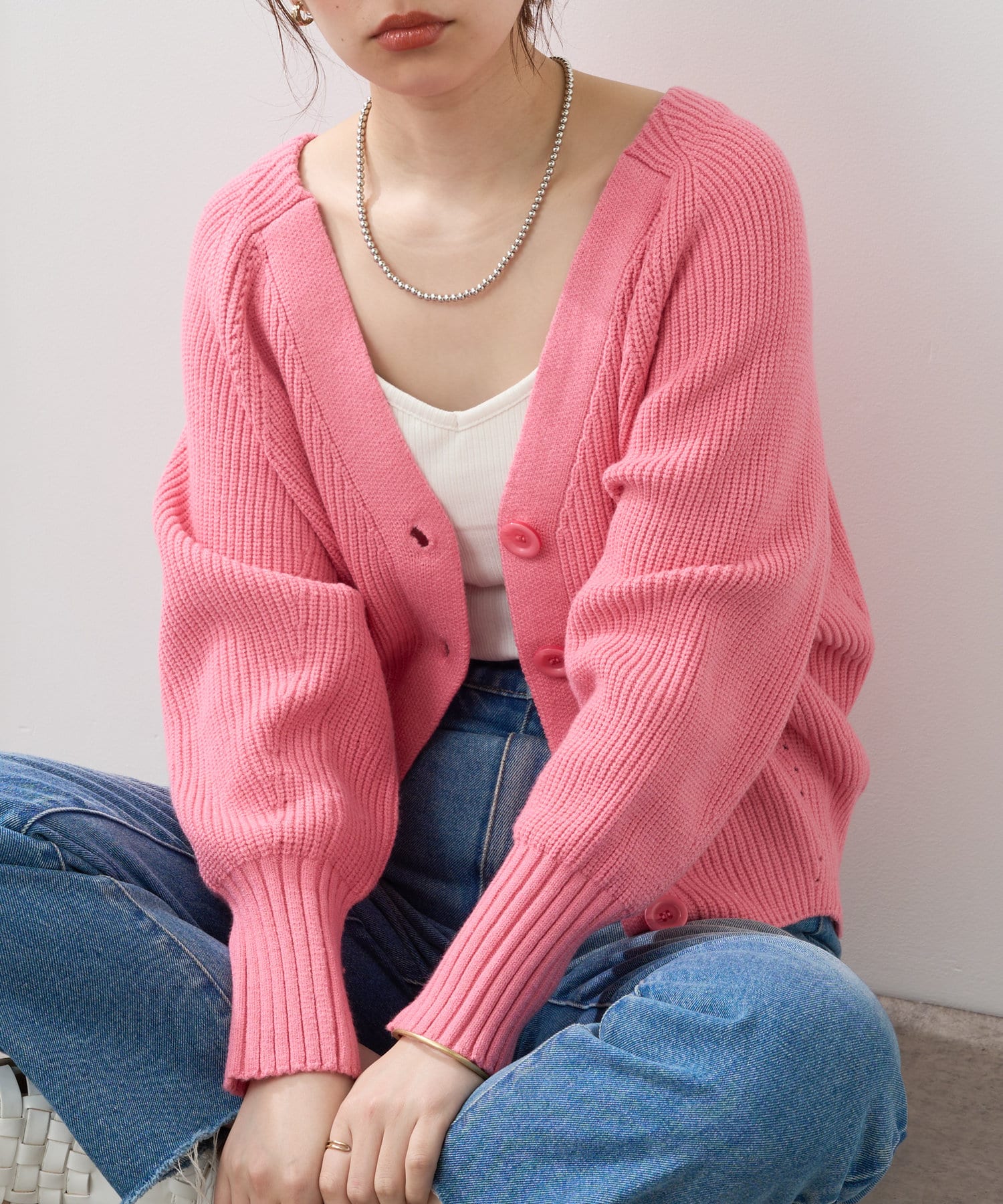 • natural couture(ナチュラルクチュール) もちもちプチプラアイレットカーディガン