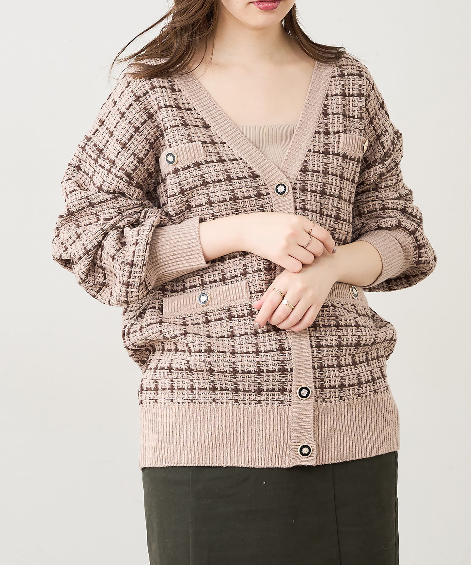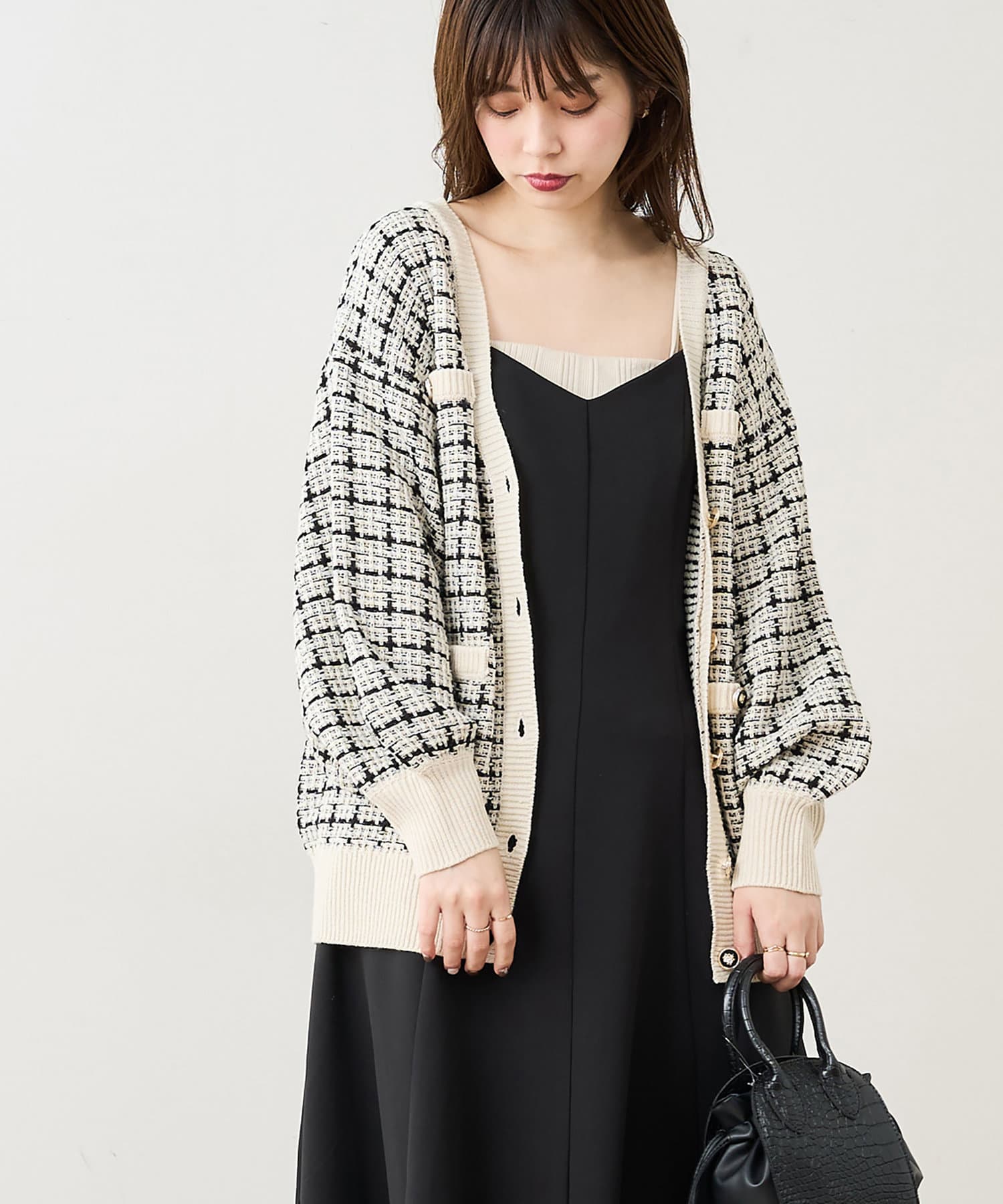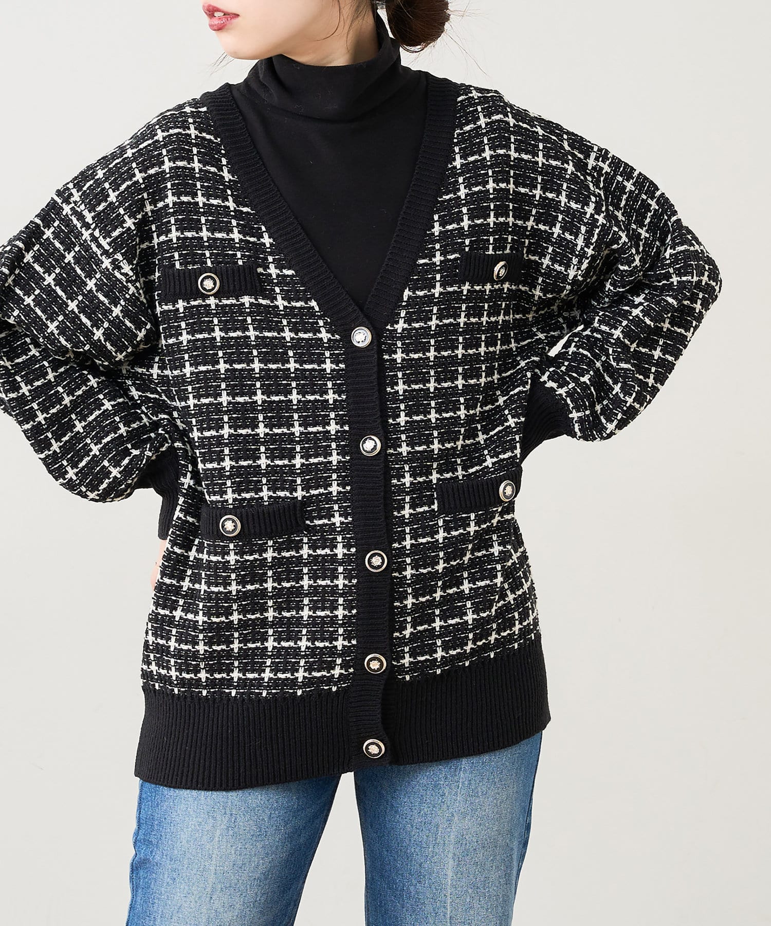 【WEB限定カラー有り】ツイードニットVカーディガン