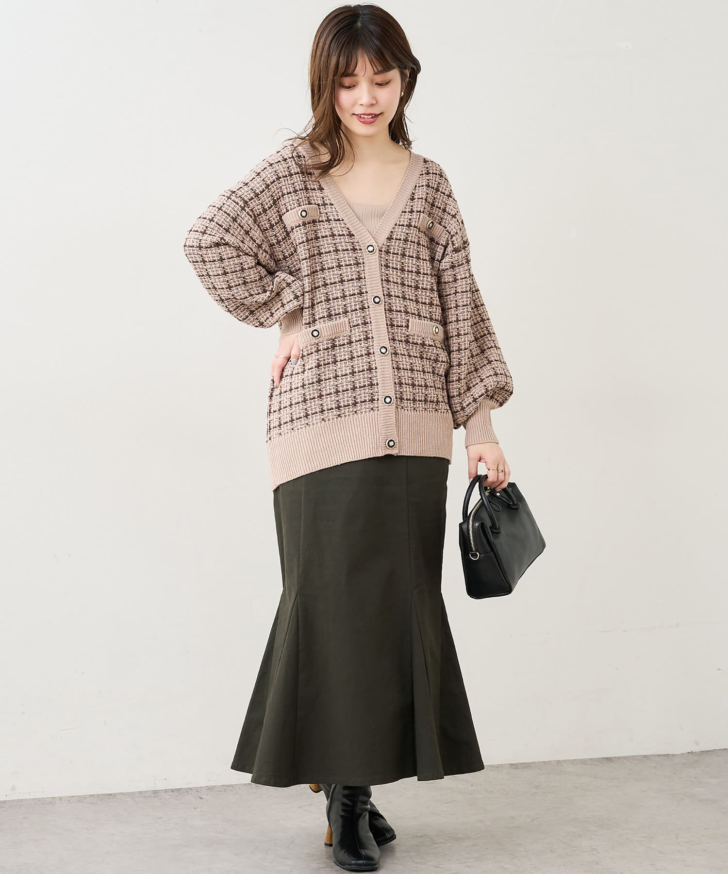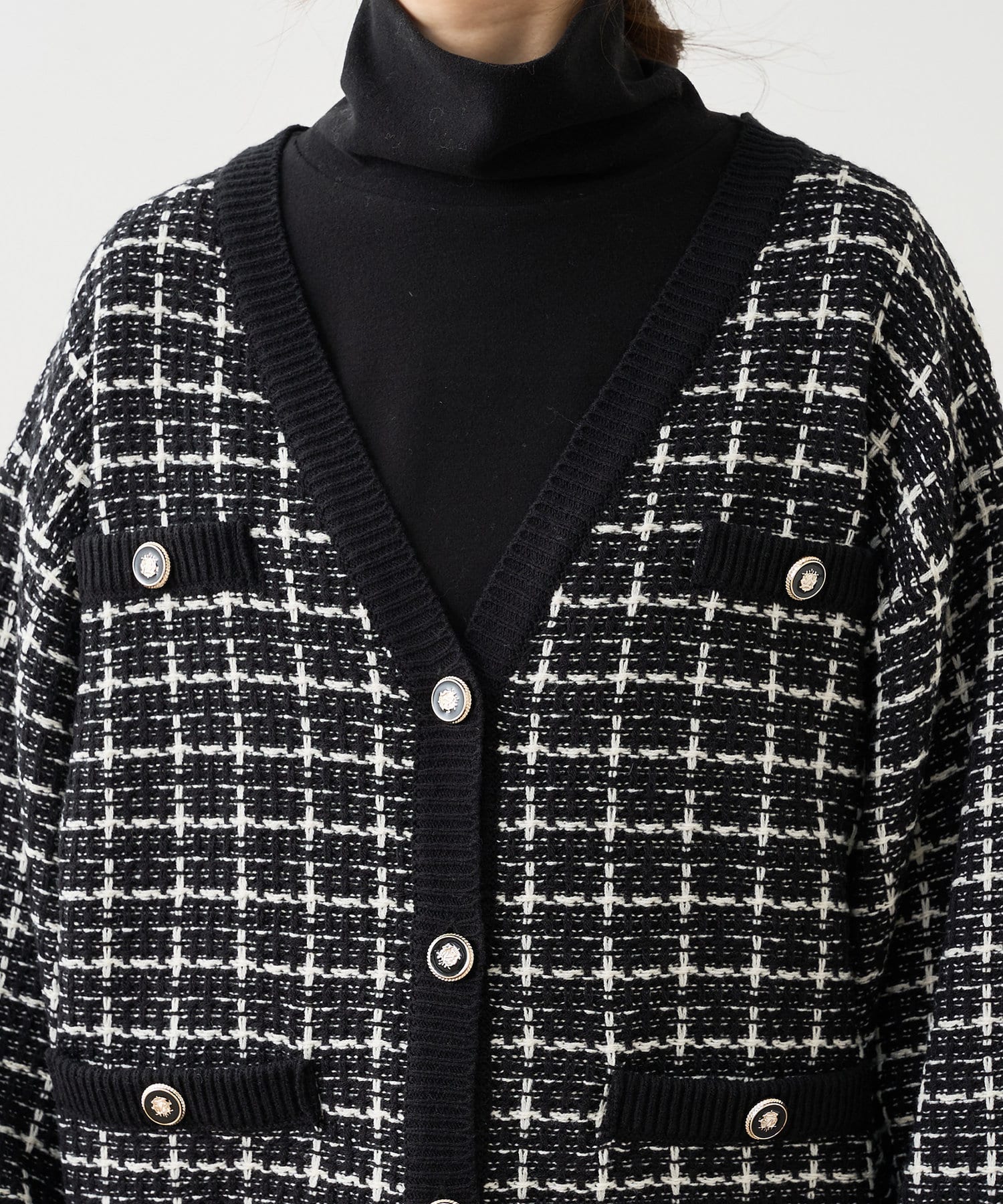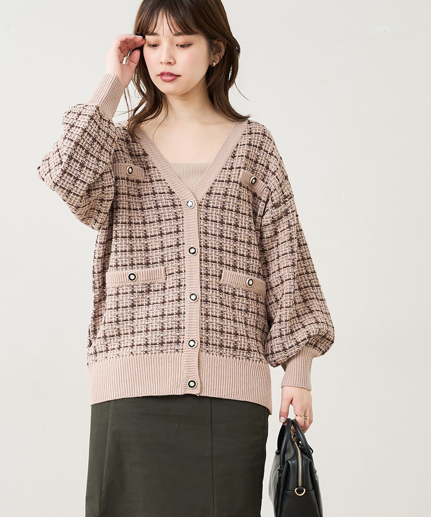 【WEB限定カラー有り】ツイードニットVカーディガン