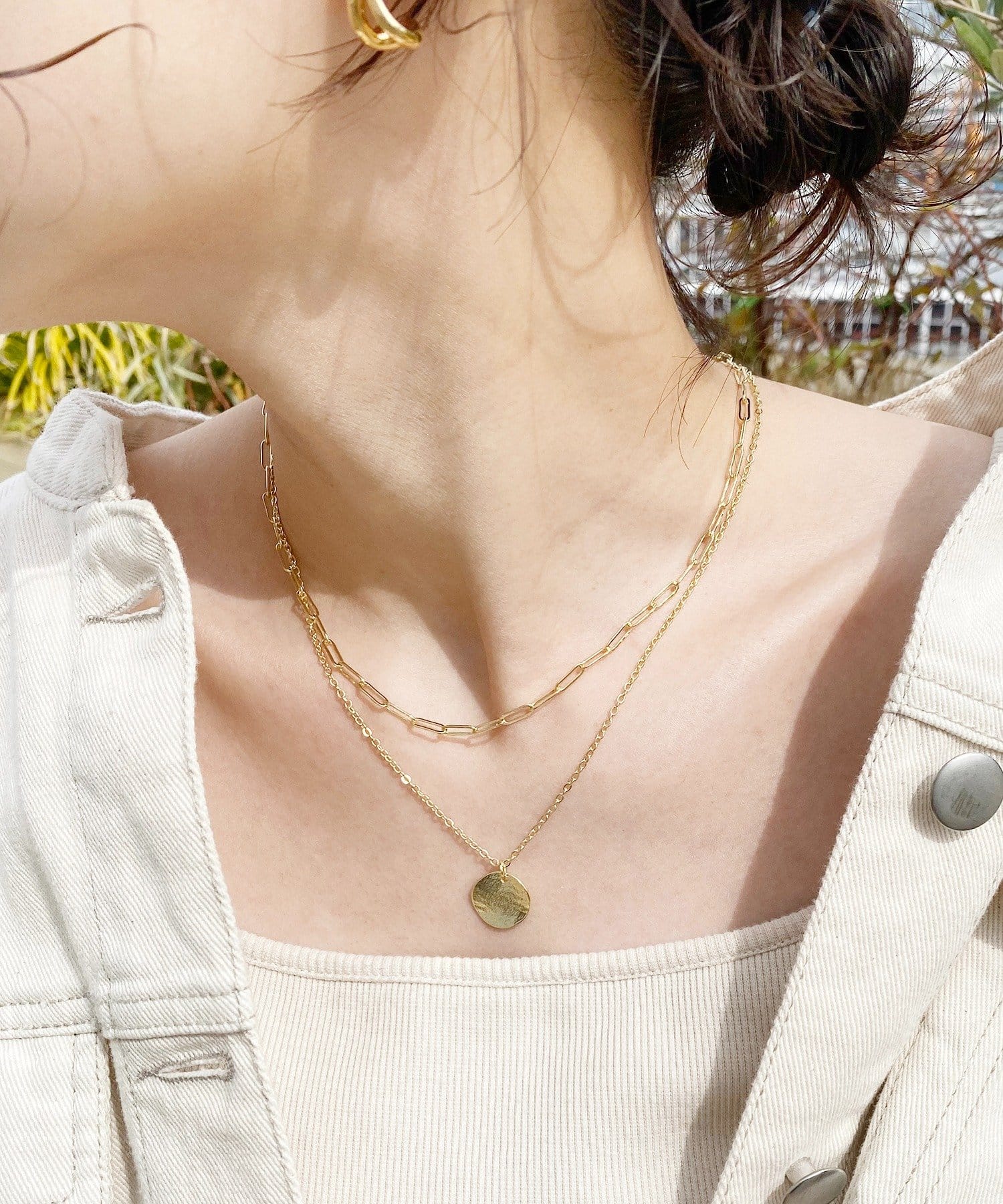2本のチェーンのデザインが異なるのもおしゃれポイント◎