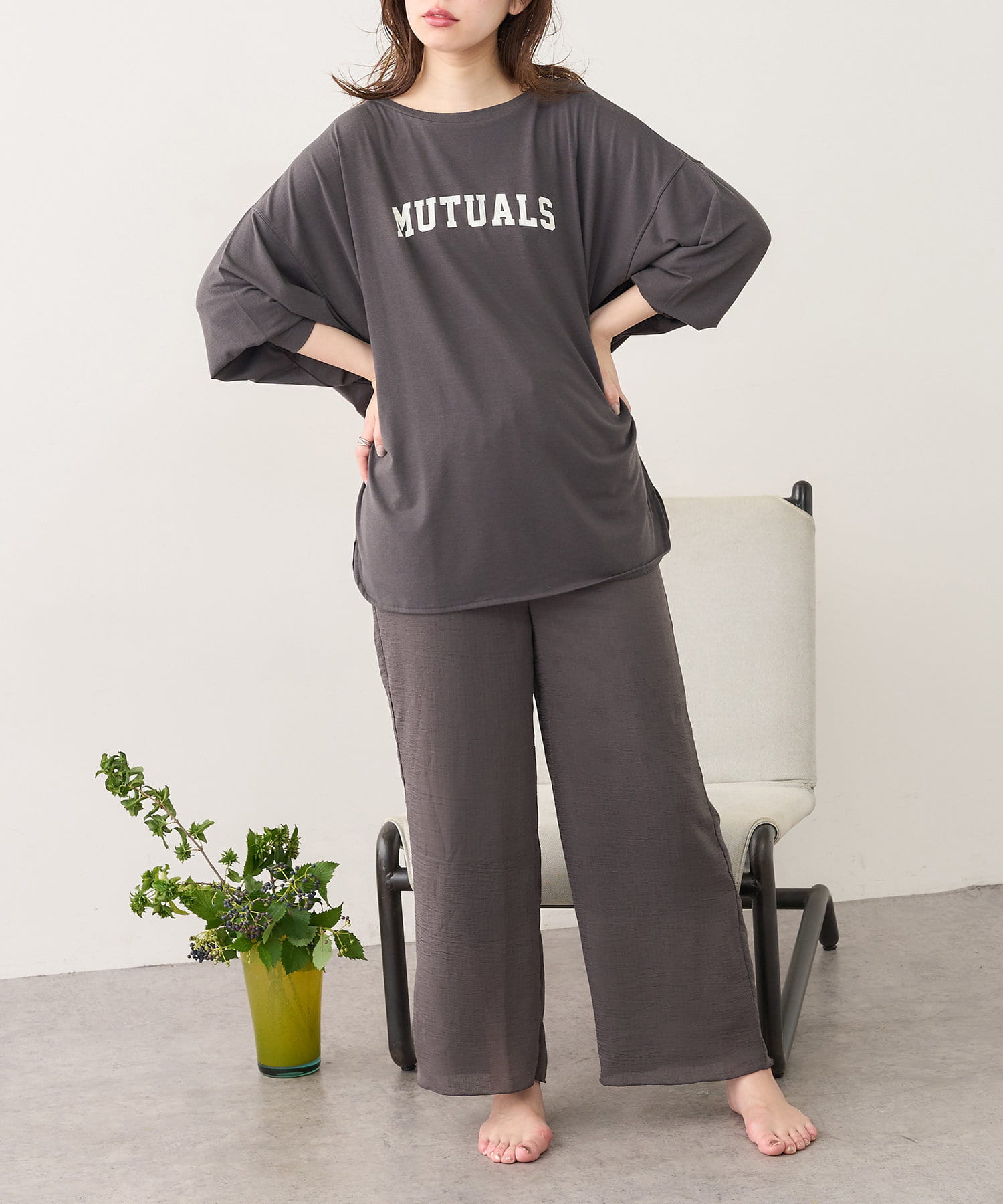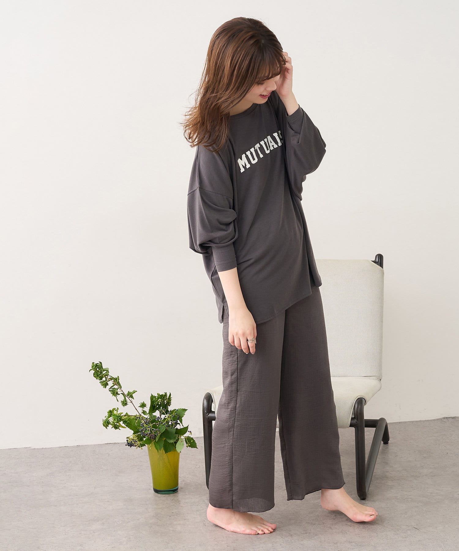 ルームウェアとしてだけでなく、普段使いでも大人カジュアルに着回して頂ける1品です。