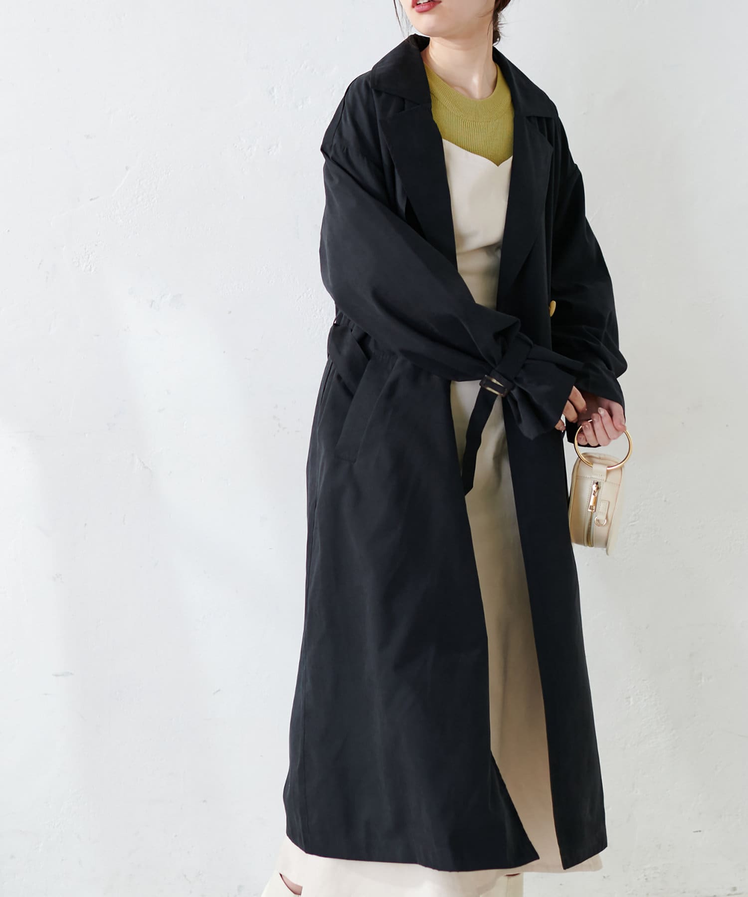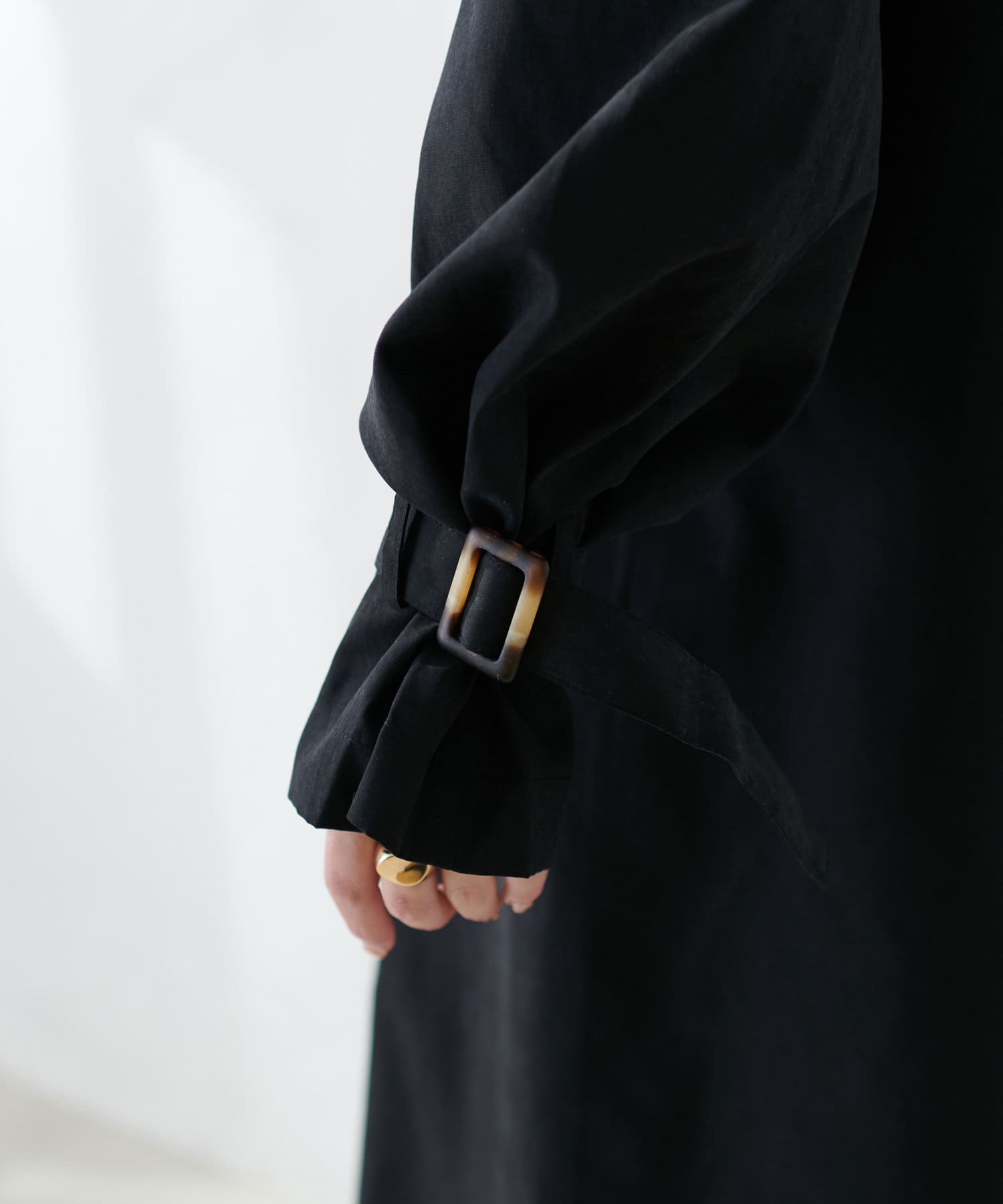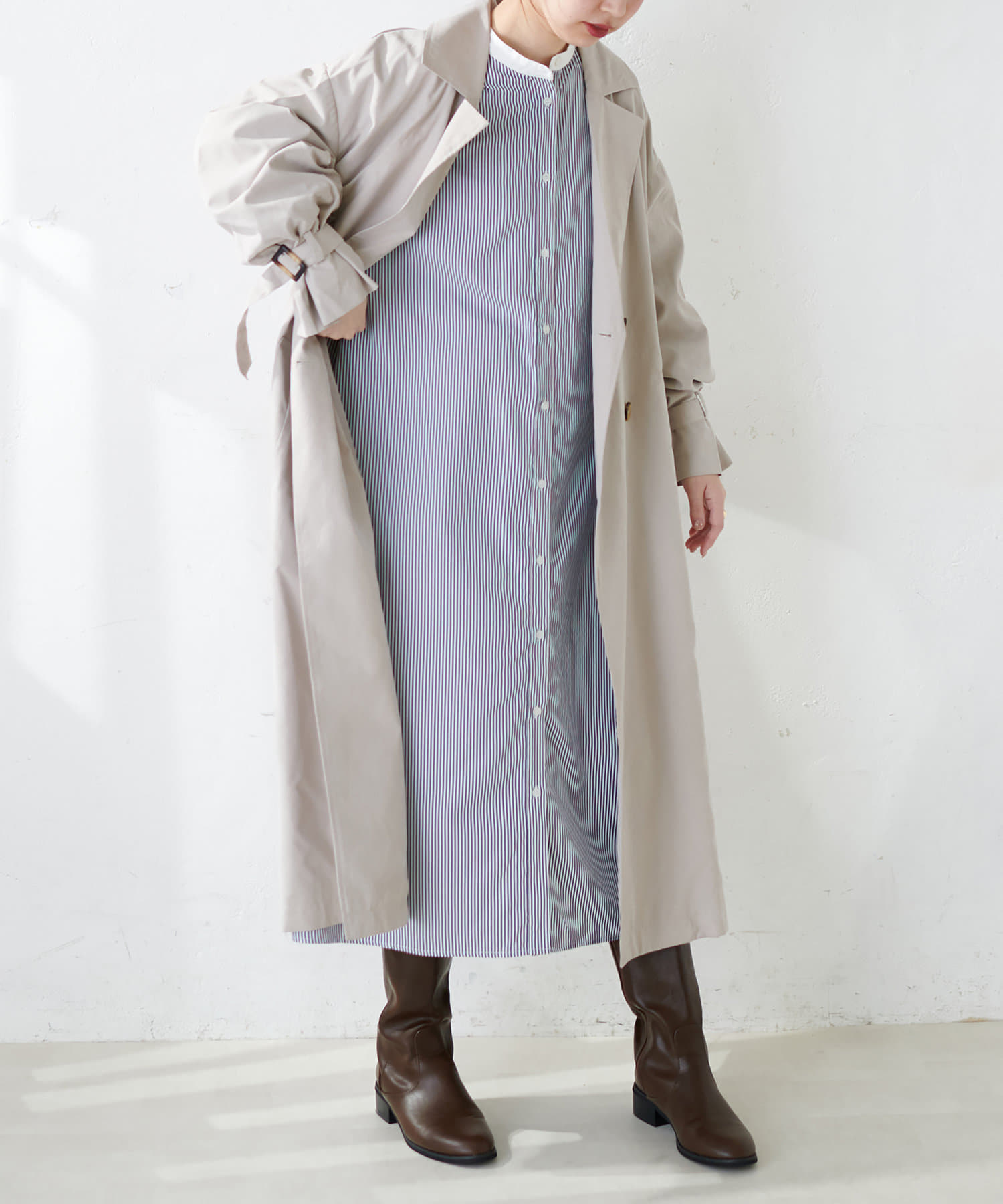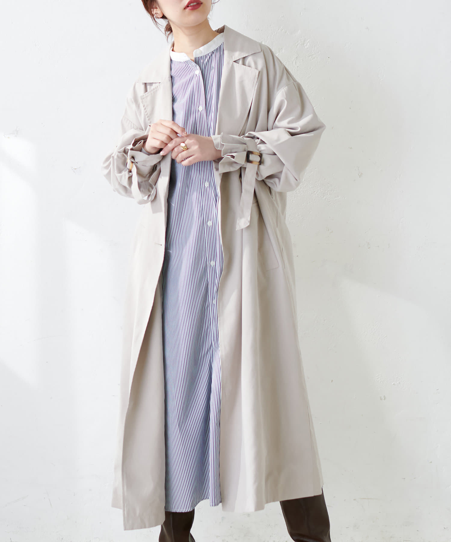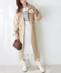 ボタンを全て閉じて、付属のベルトでウエストマークして頂くとメリハリのあるワンピース風な仕上がりに◎
