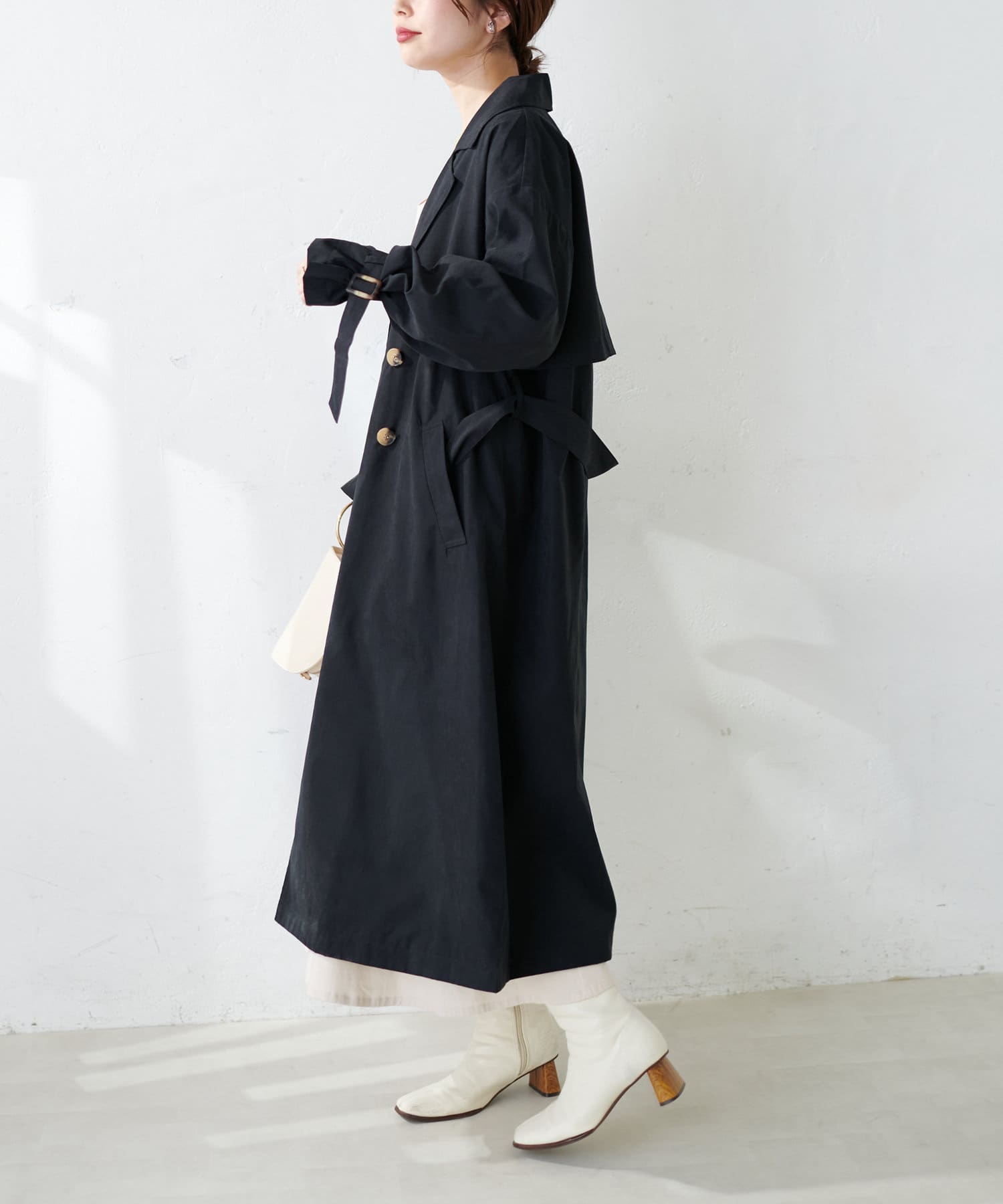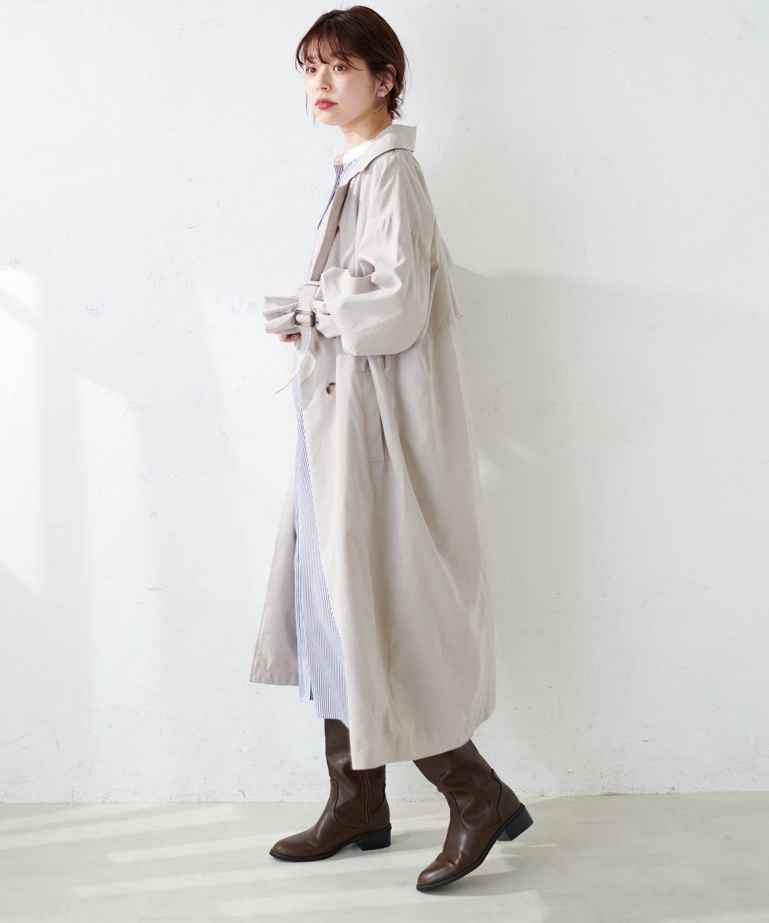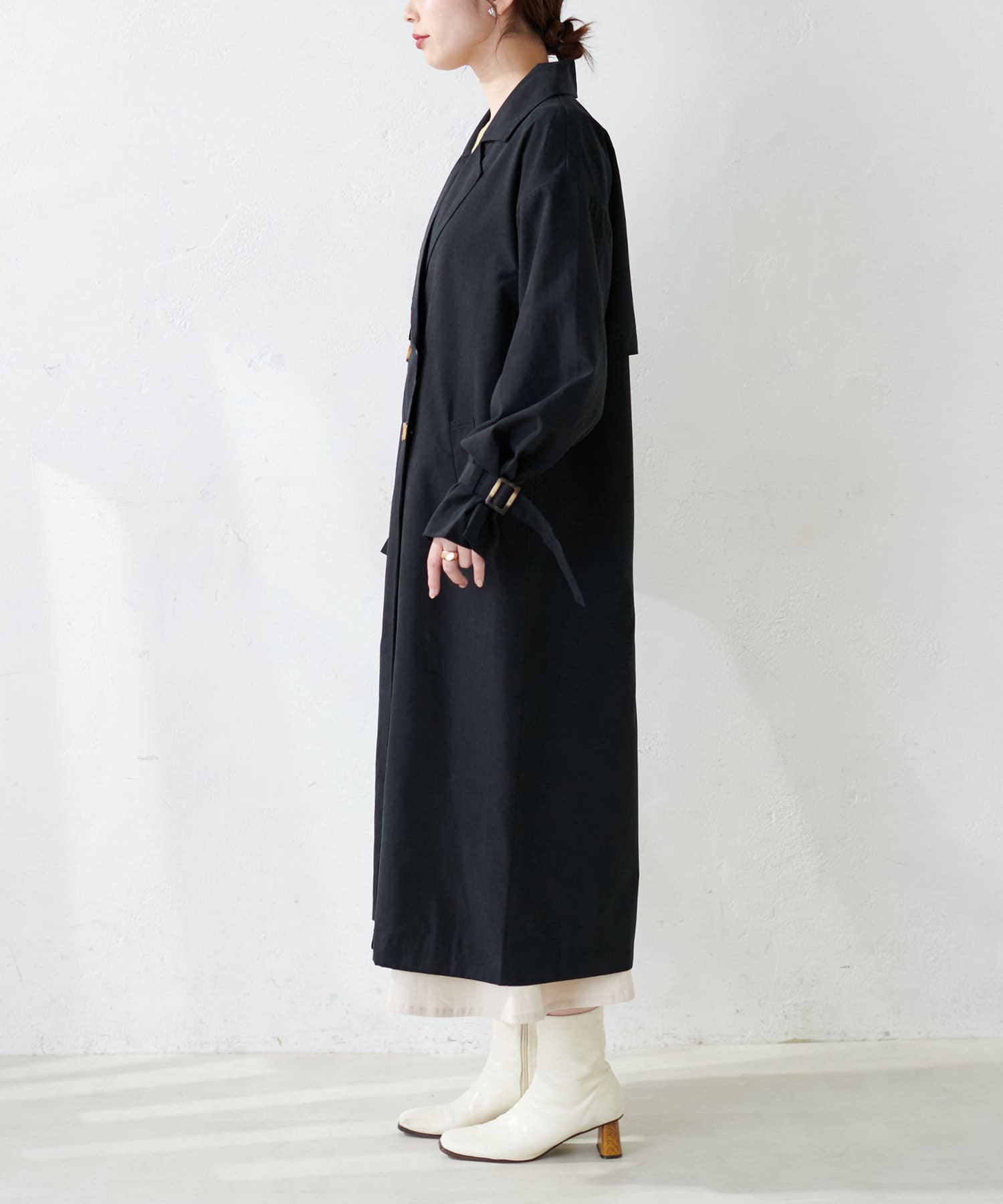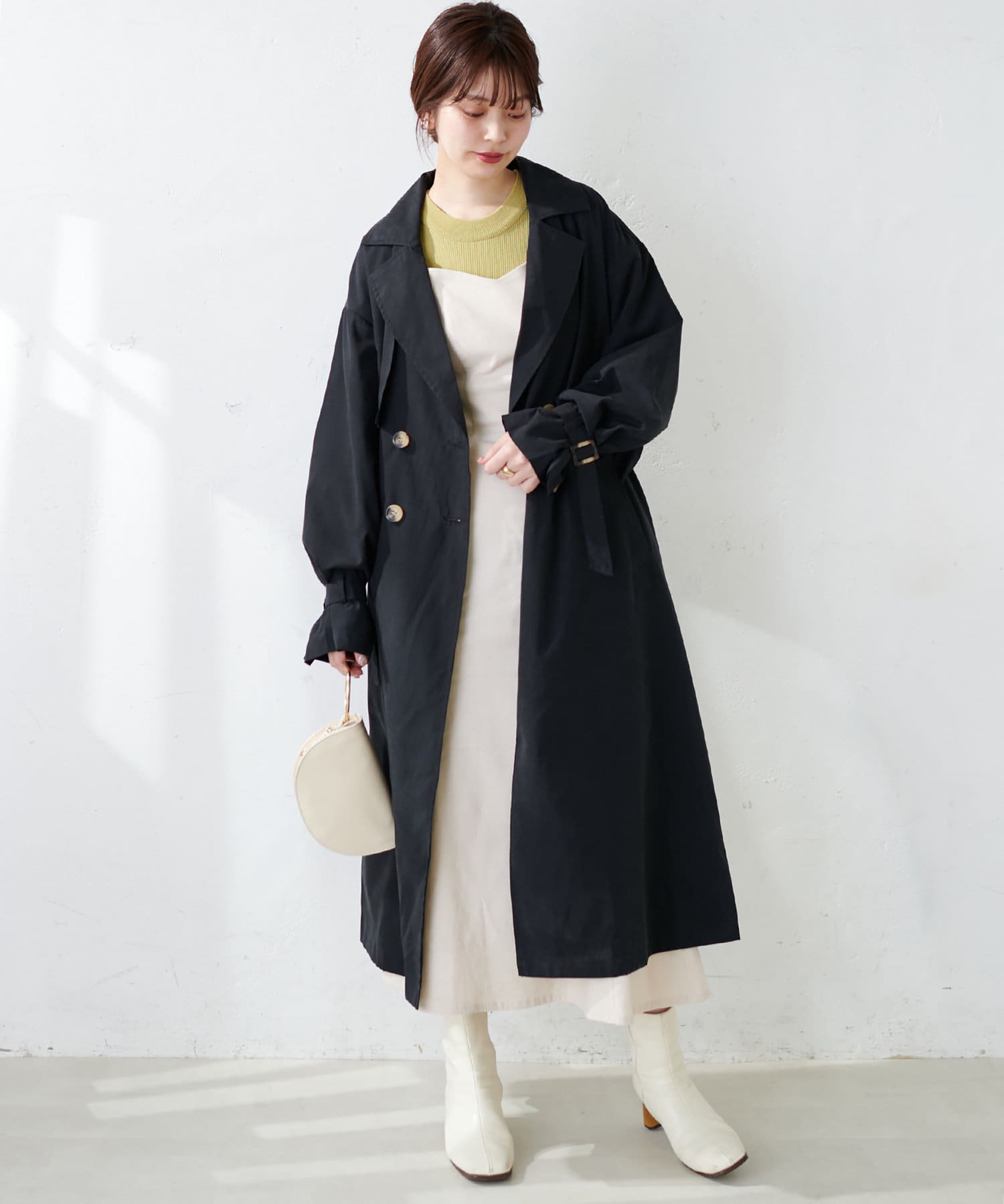 ボタンを全て閉じて、付属のベルトでウエストマークして頂くとメリハリのあるワンピース風な仕上がりに◎