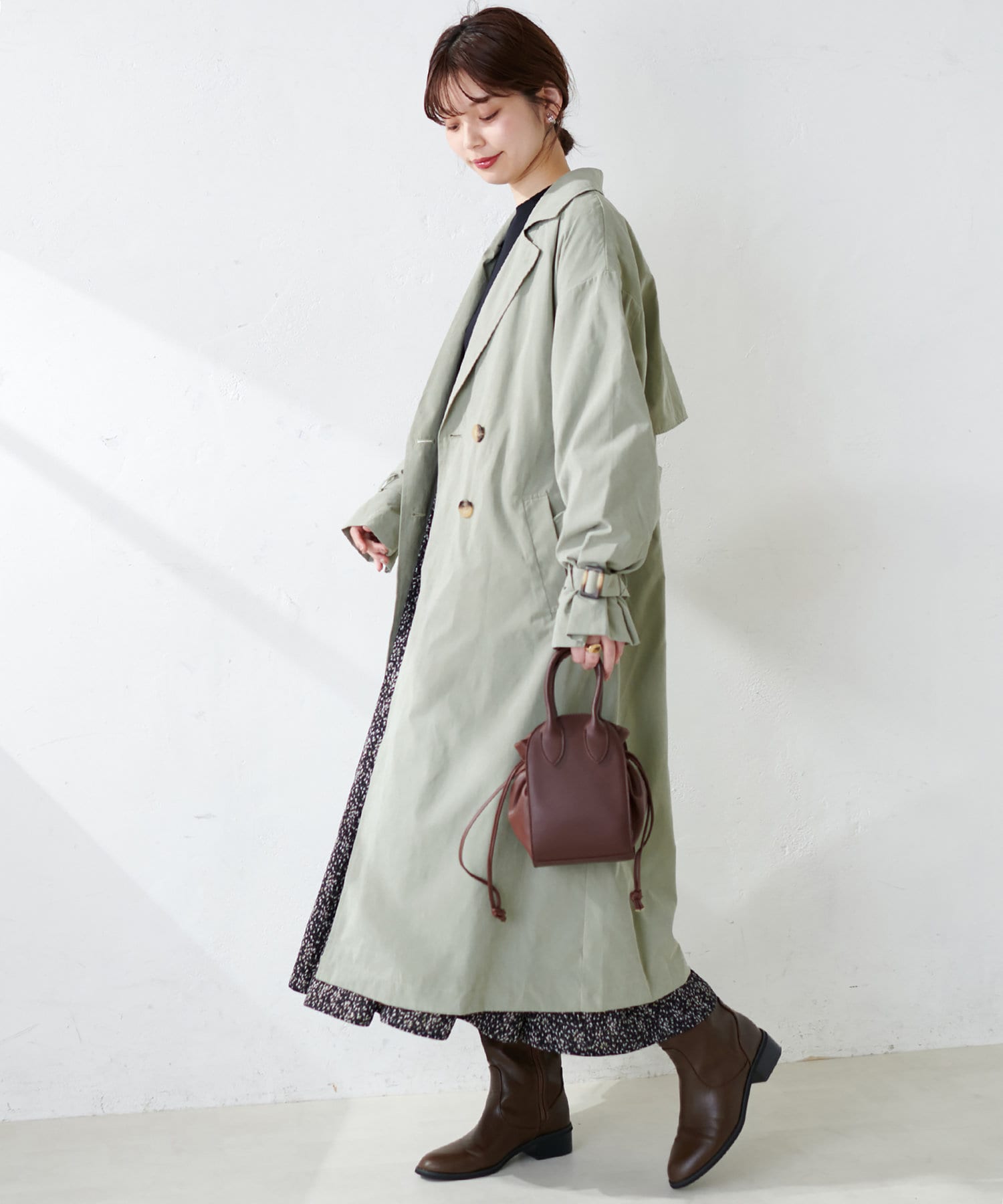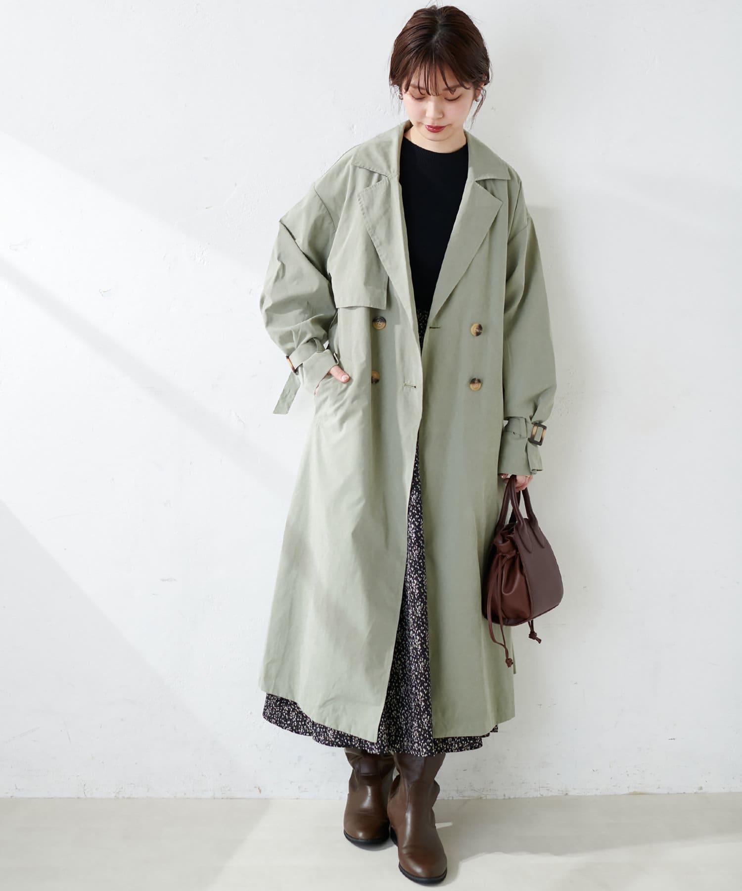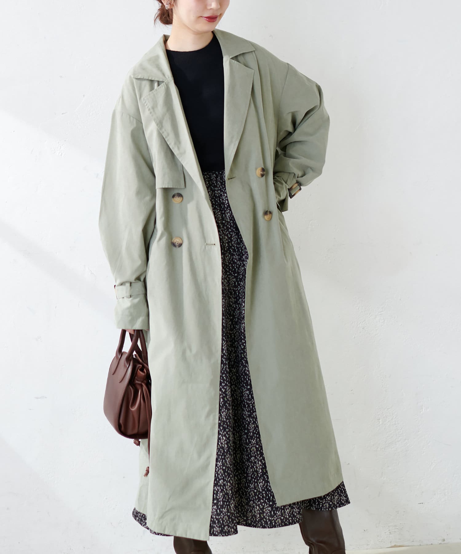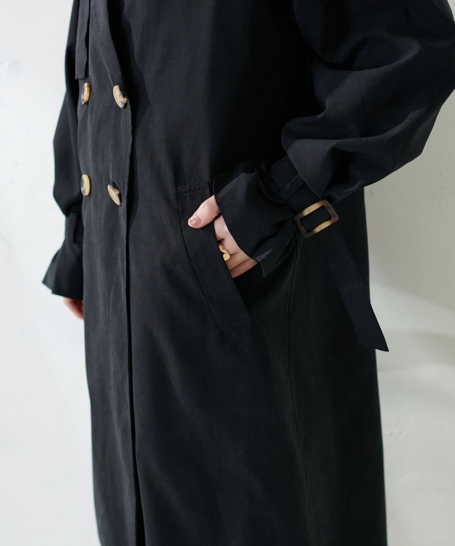 ボタンを全て閉じて、付属のベルトでウエストマークして頂くとメリハリのあるワンピース風な仕上がりに◎