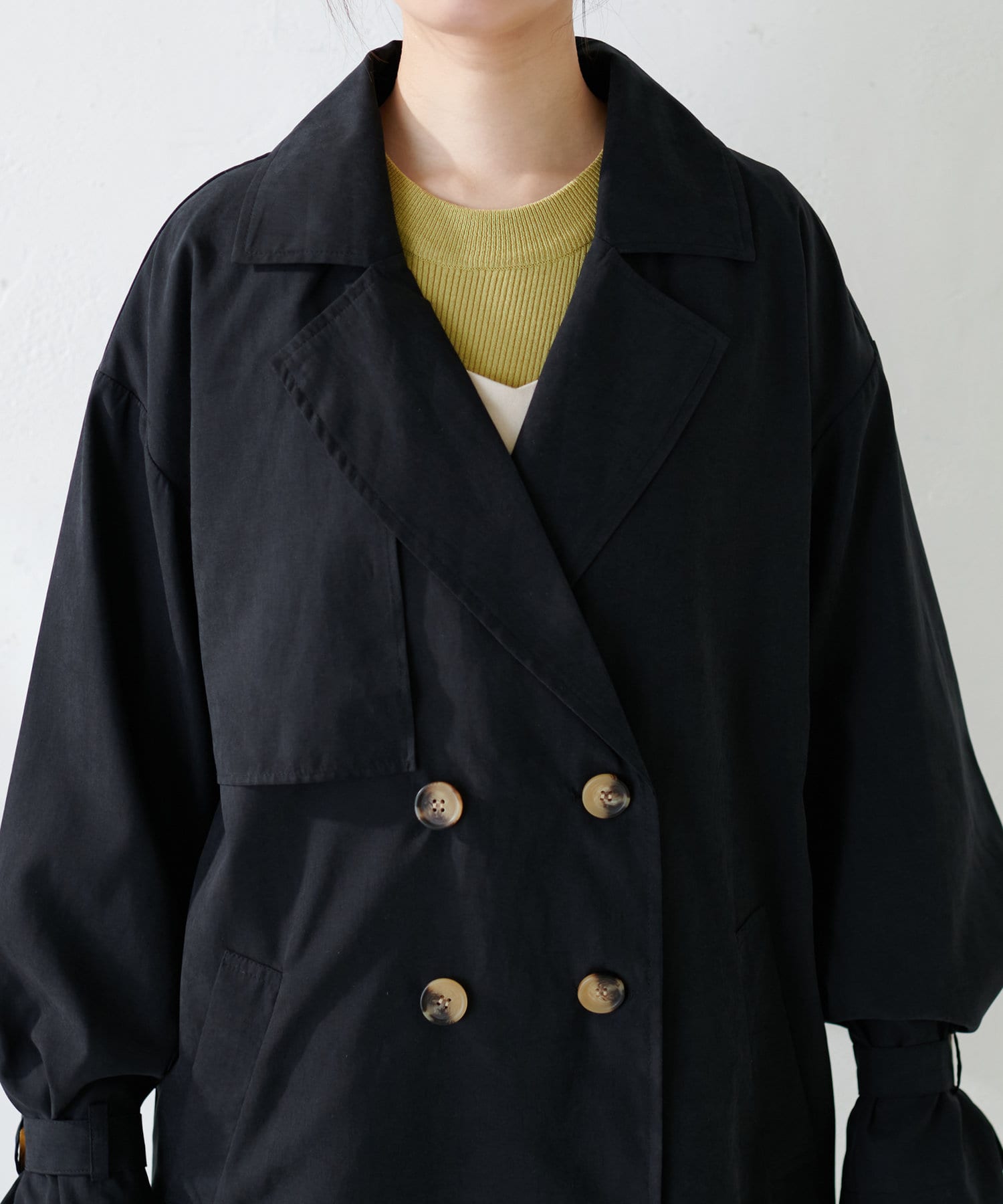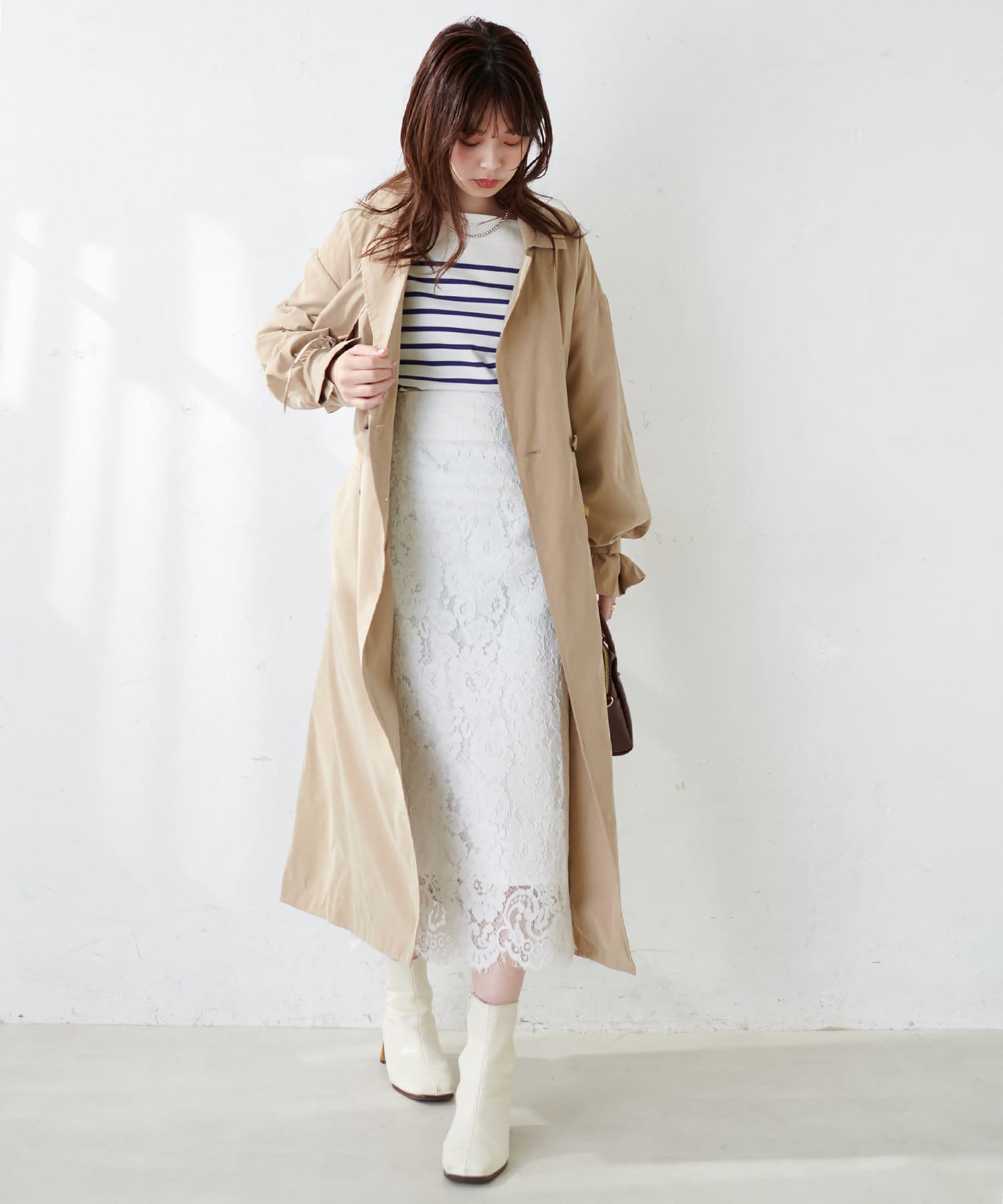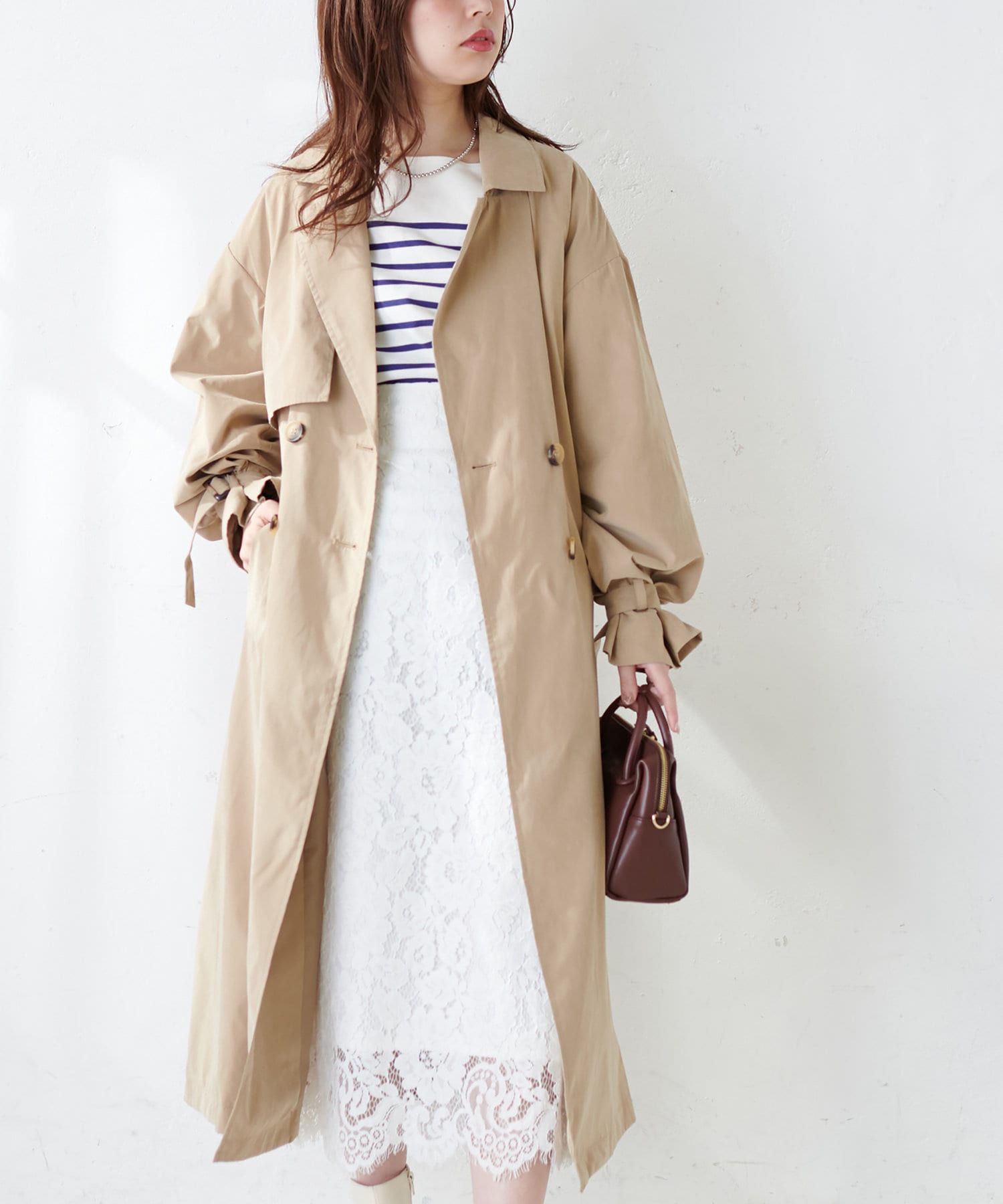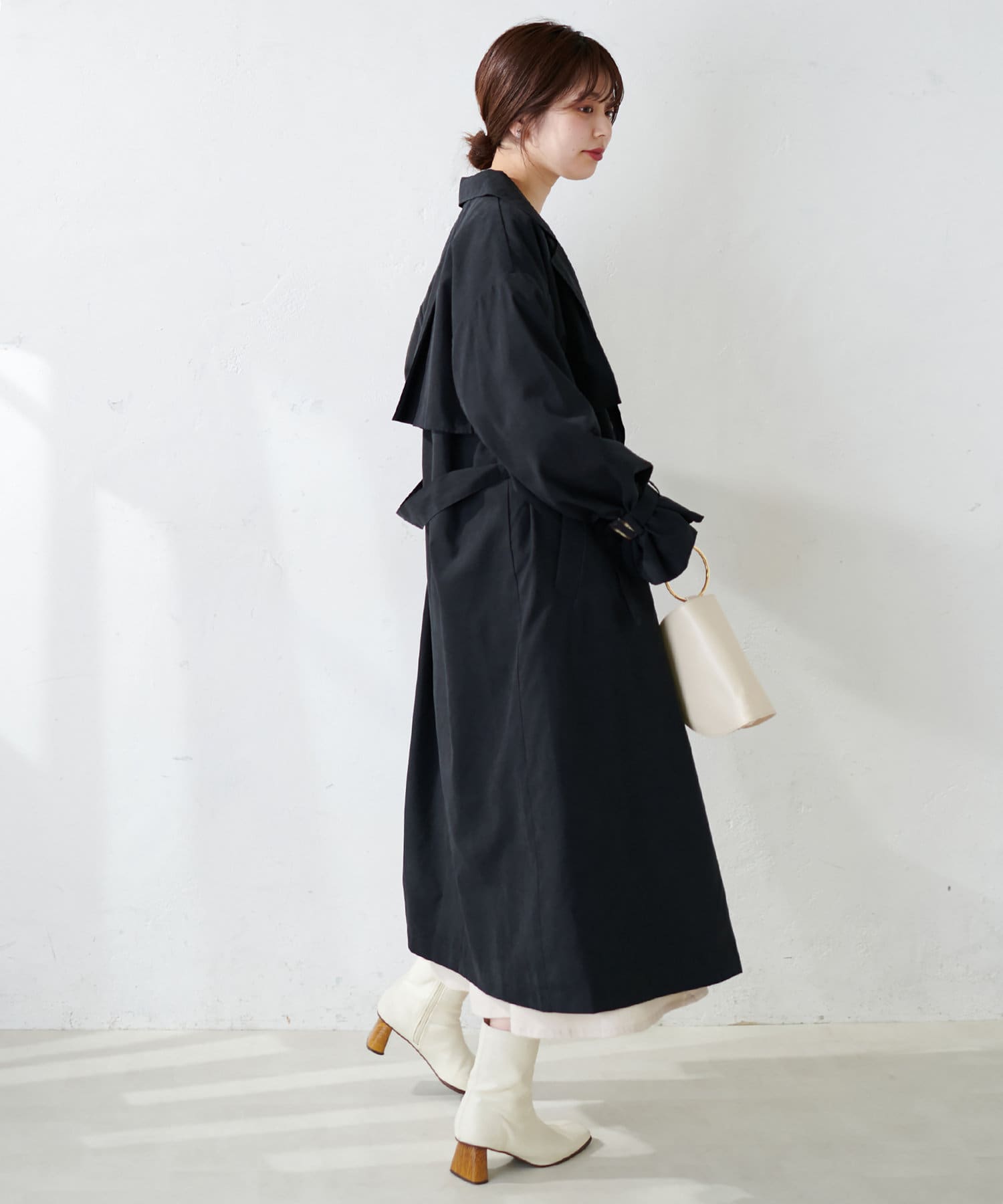 ボタンを全て閉じて、付属のベルトでウエストマークして頂くとメリハリのあるワンピース風な仕上がりに◎