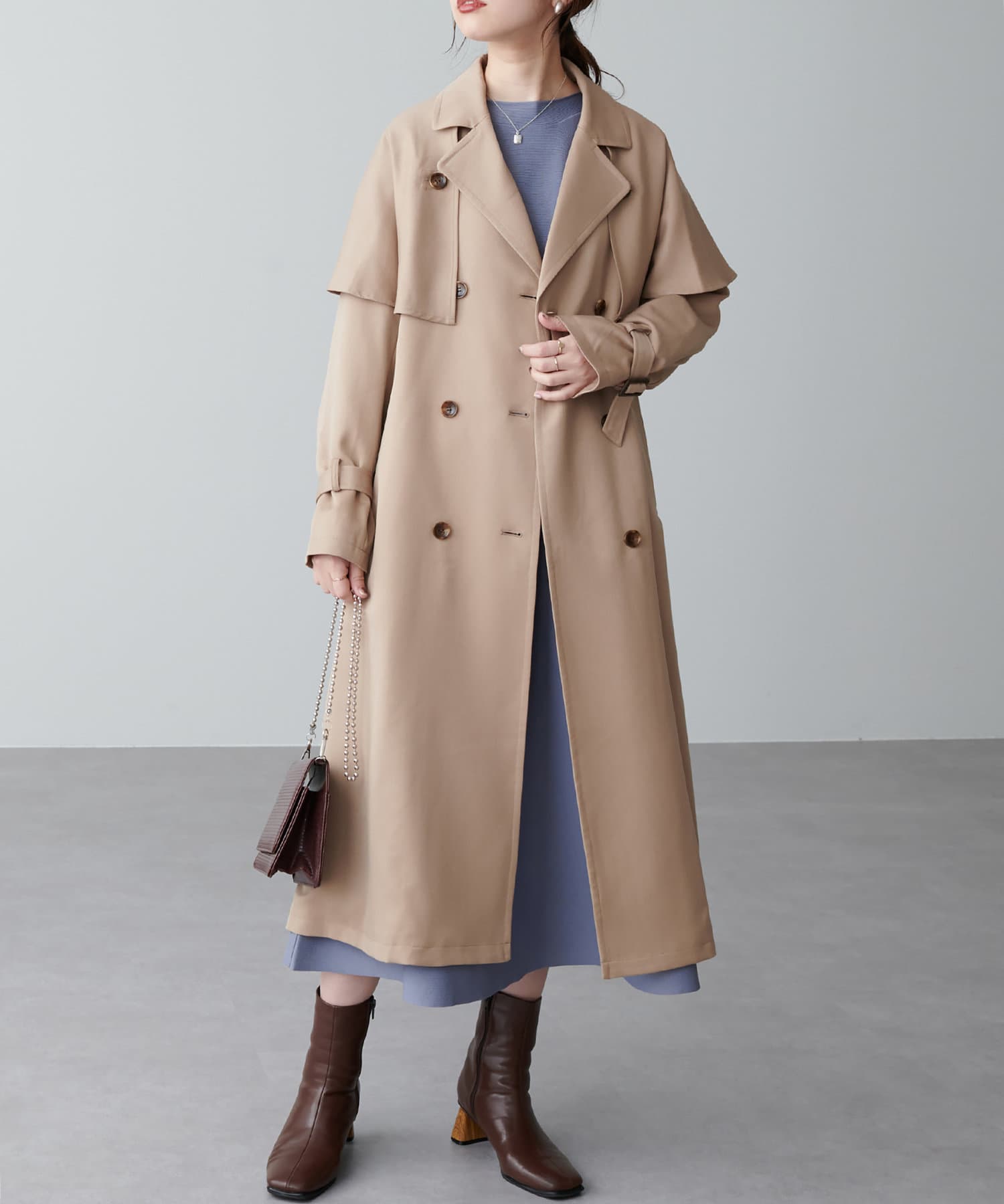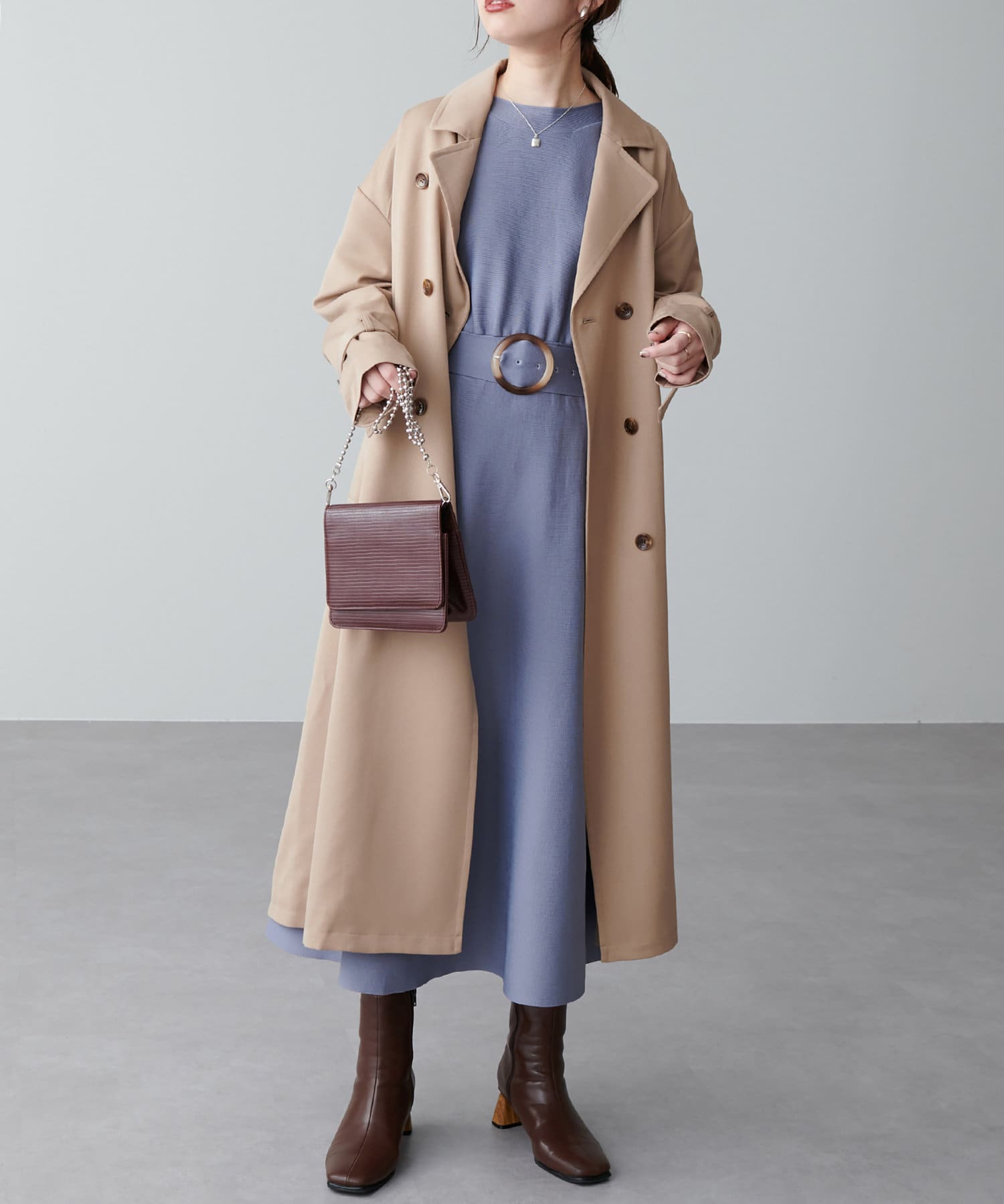 カジュアルもキレイめもロングシーズン着まわし可能なレディトレンチ