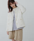 すっきりとしたノーカラーデザインと、ややゆとりのある身頃のシルエットで