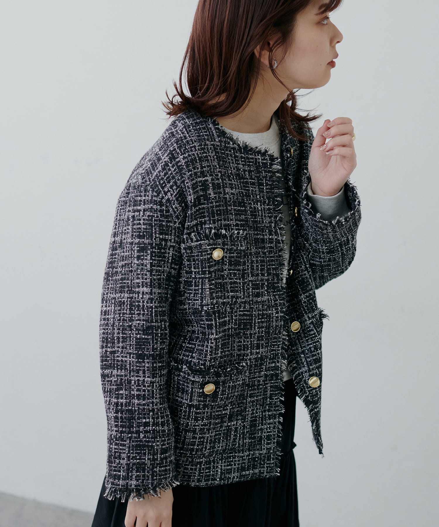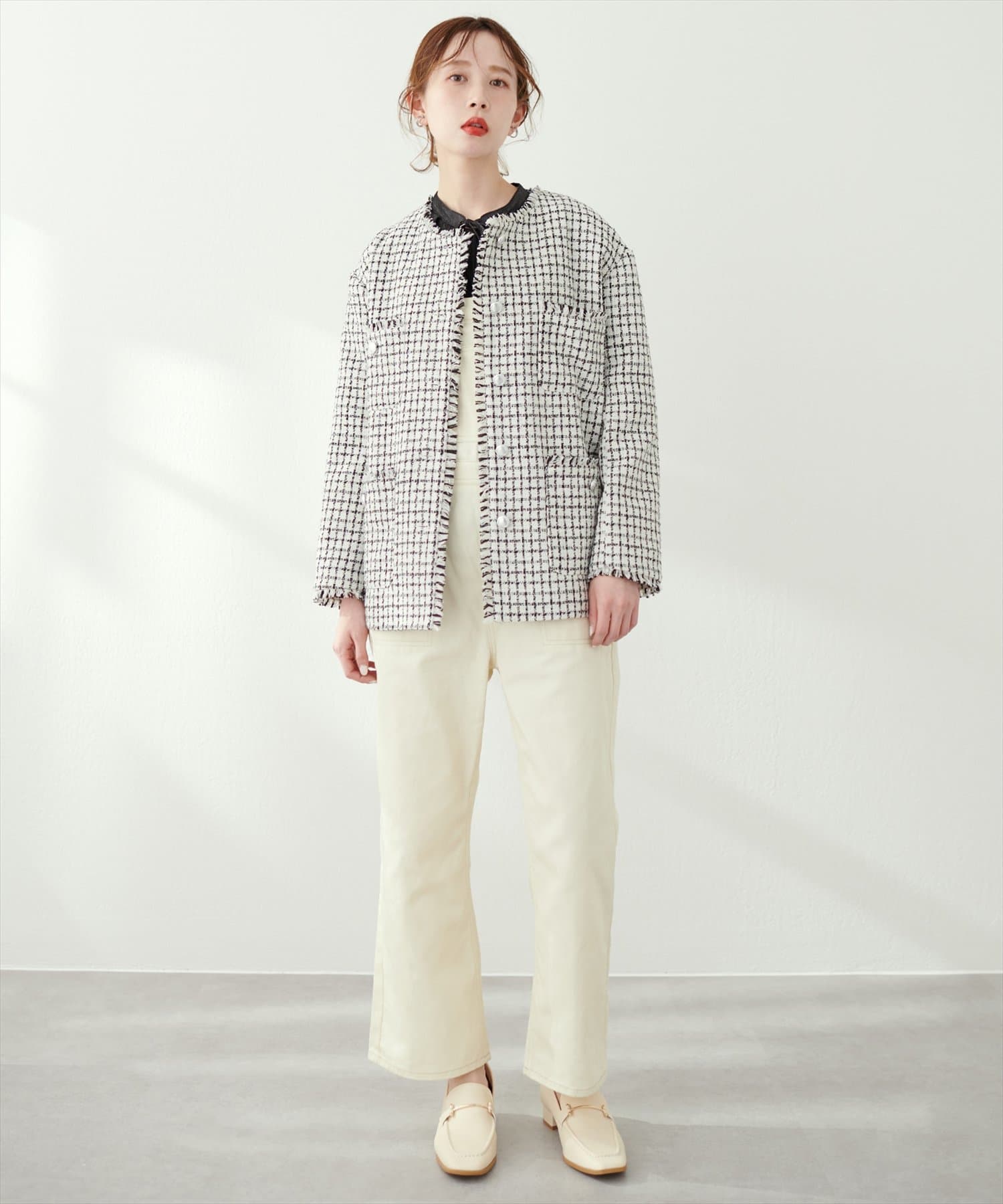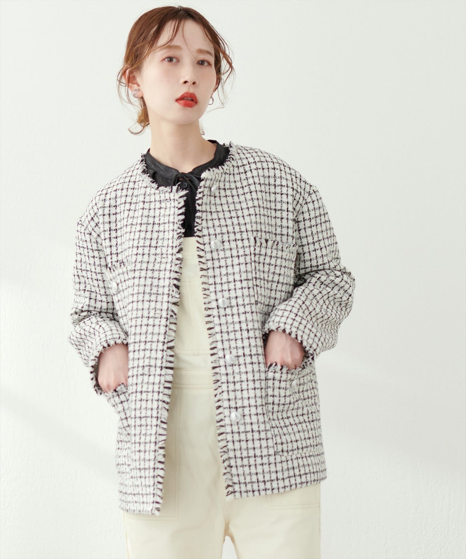 クラシックでお上品な雰囲気に仕上がるツイードジャケット