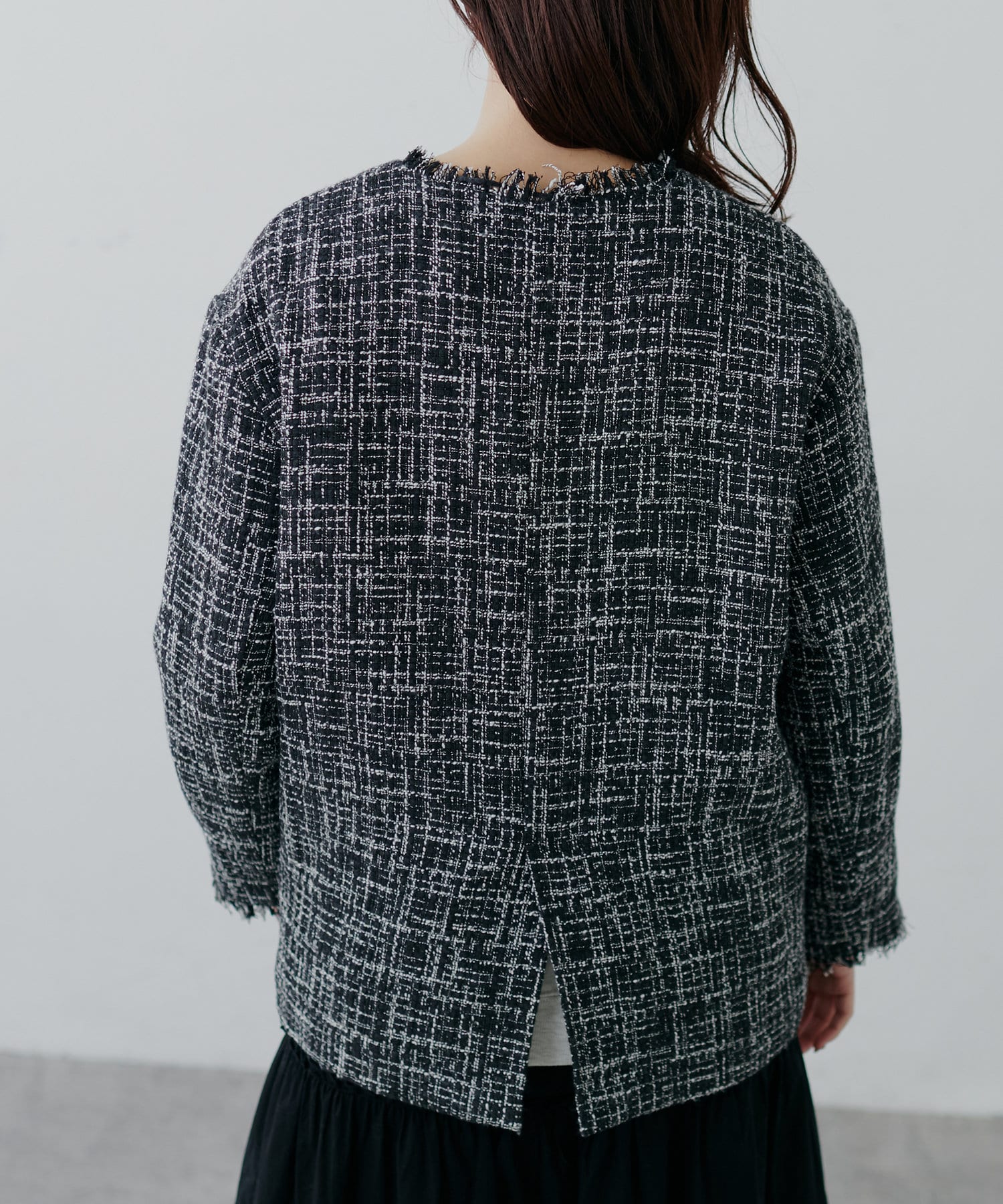 程良い肉感のツイード生地を採用し、中間の時期に羽織って頂きやすい1品に仕上げました。