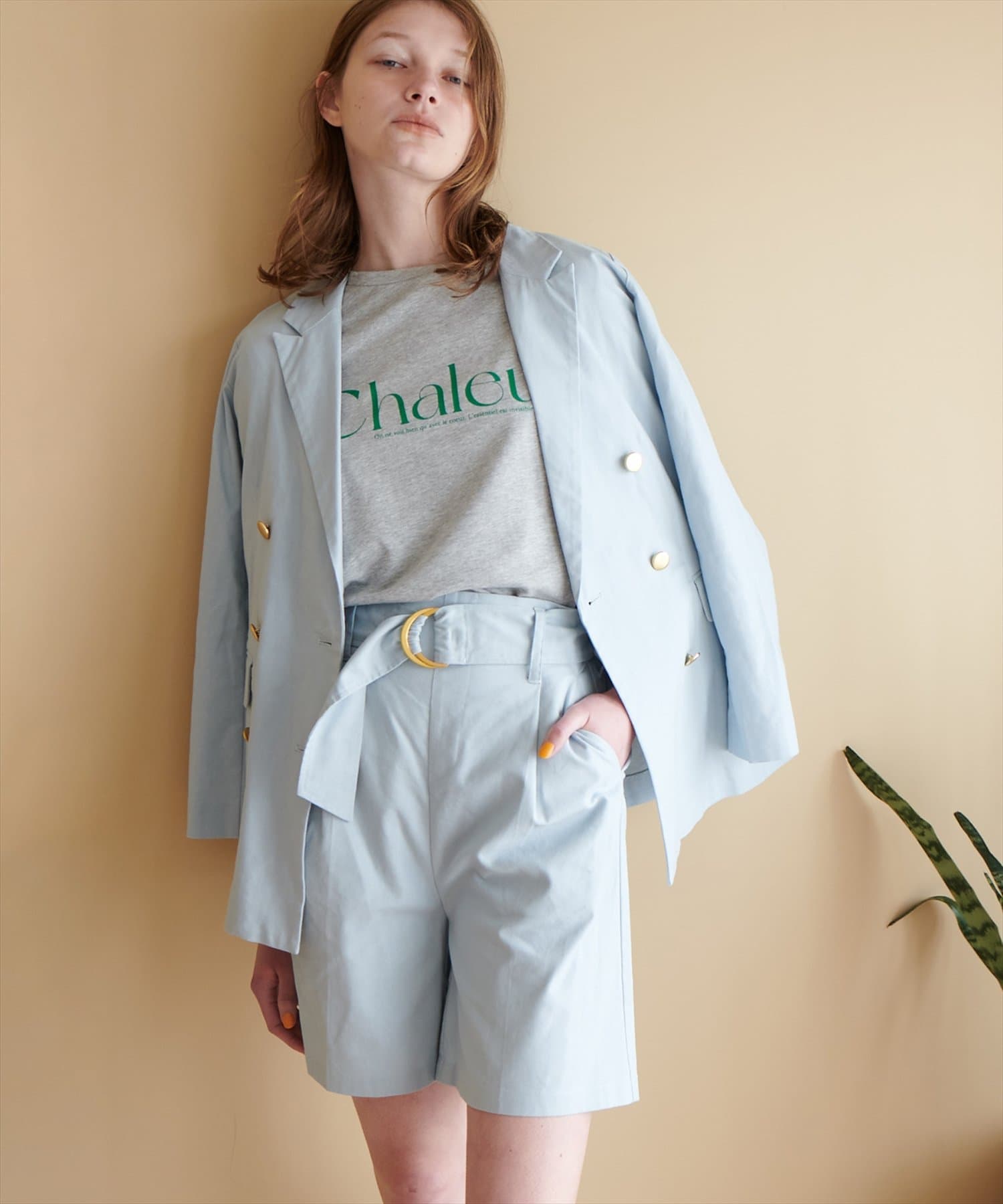351510200 : ベルト付き綿麻ショートパンツとセットアップでもお召し頂けます。