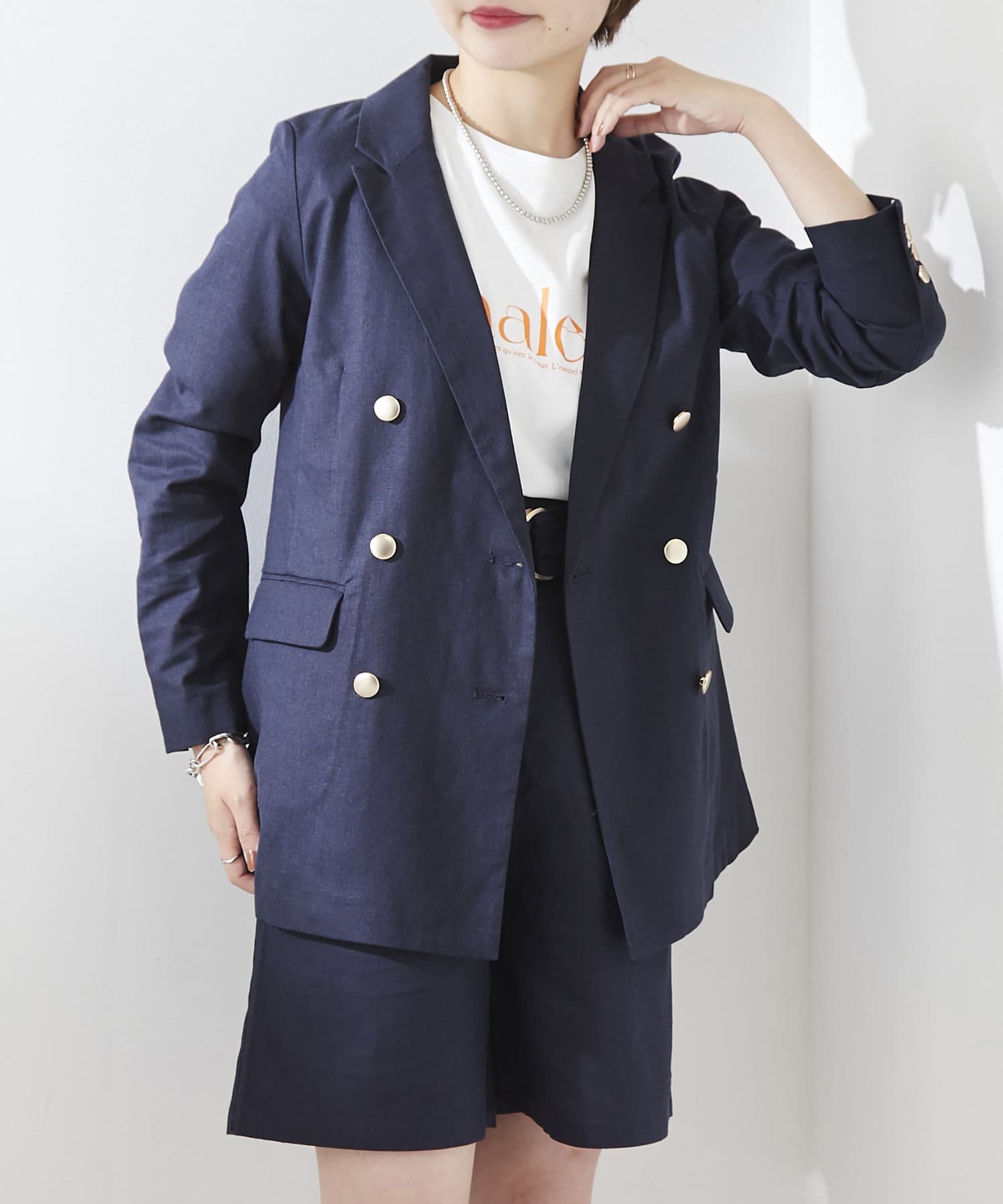 ちょっと大人な綿麻金釦テーラージャケット