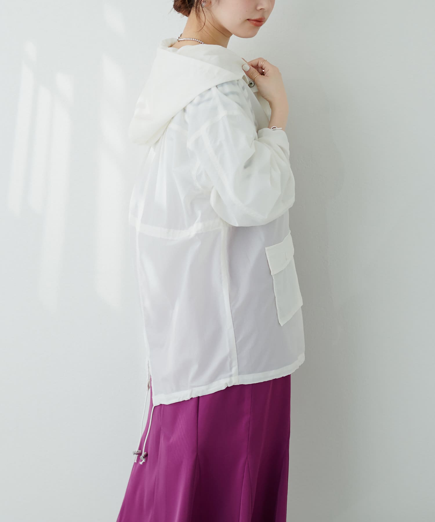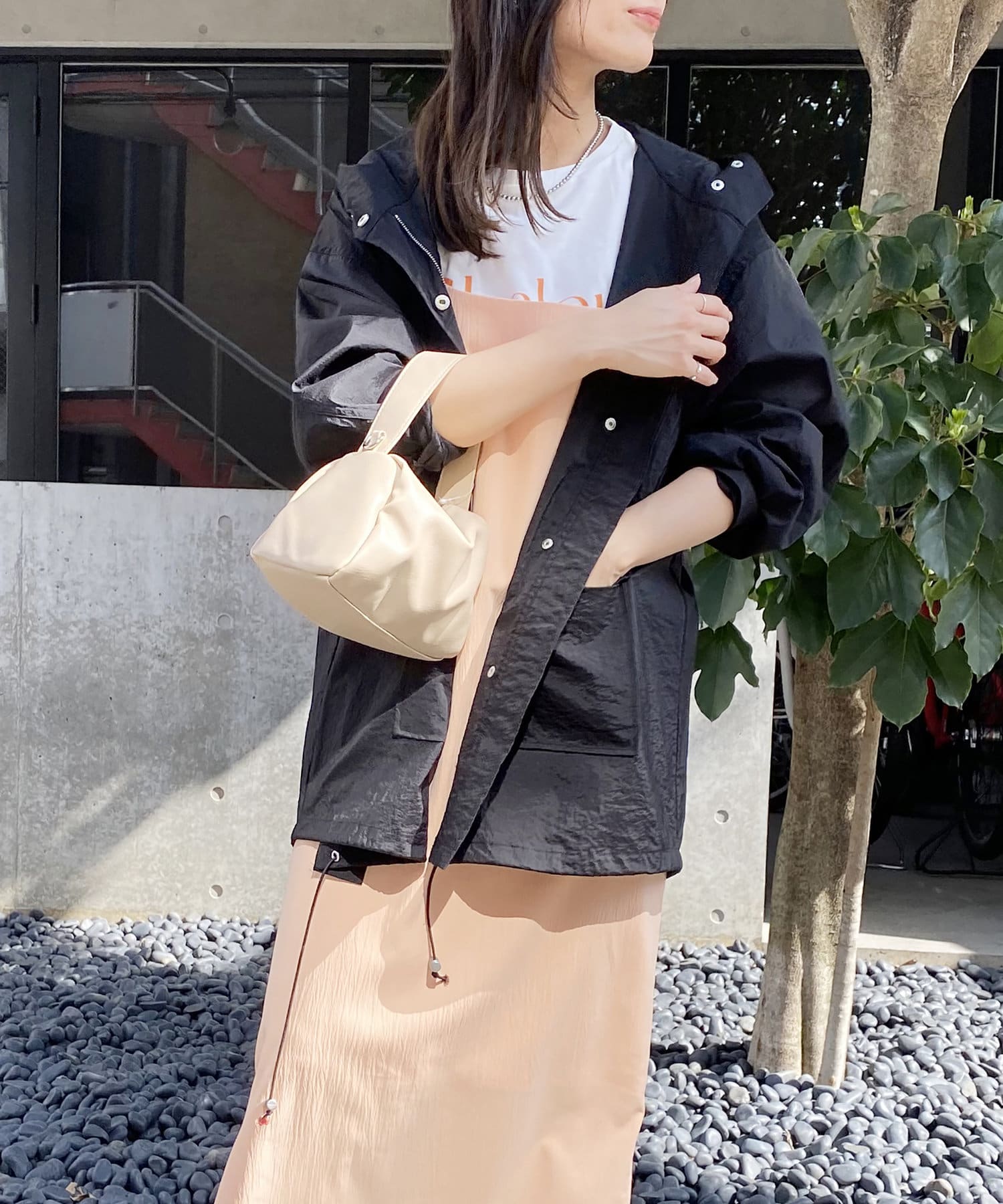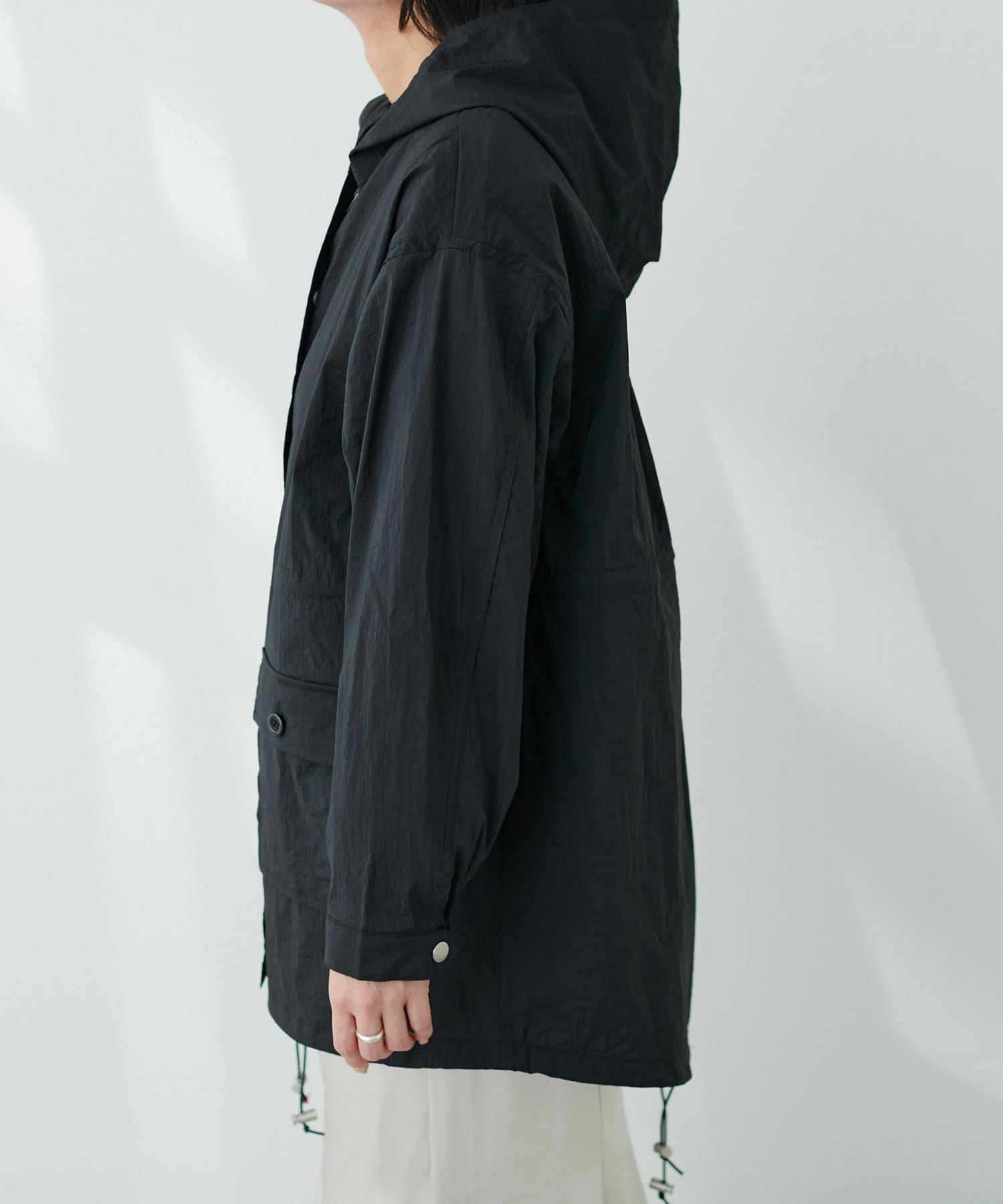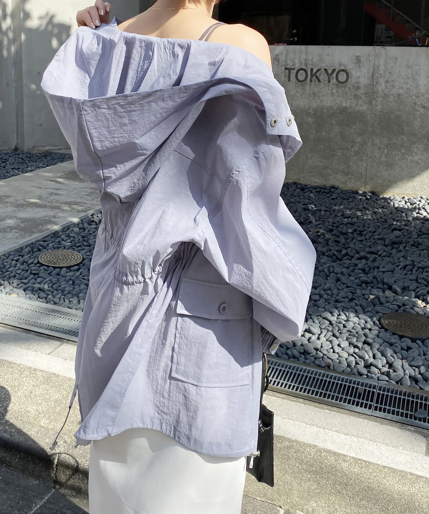 カジュアルな印象のマウンテンパーカーデザインに、ゆとりのあるアームラインやバックスタイルにさりげないディテールを施し、ほんのり女性らしさをプラスしました。