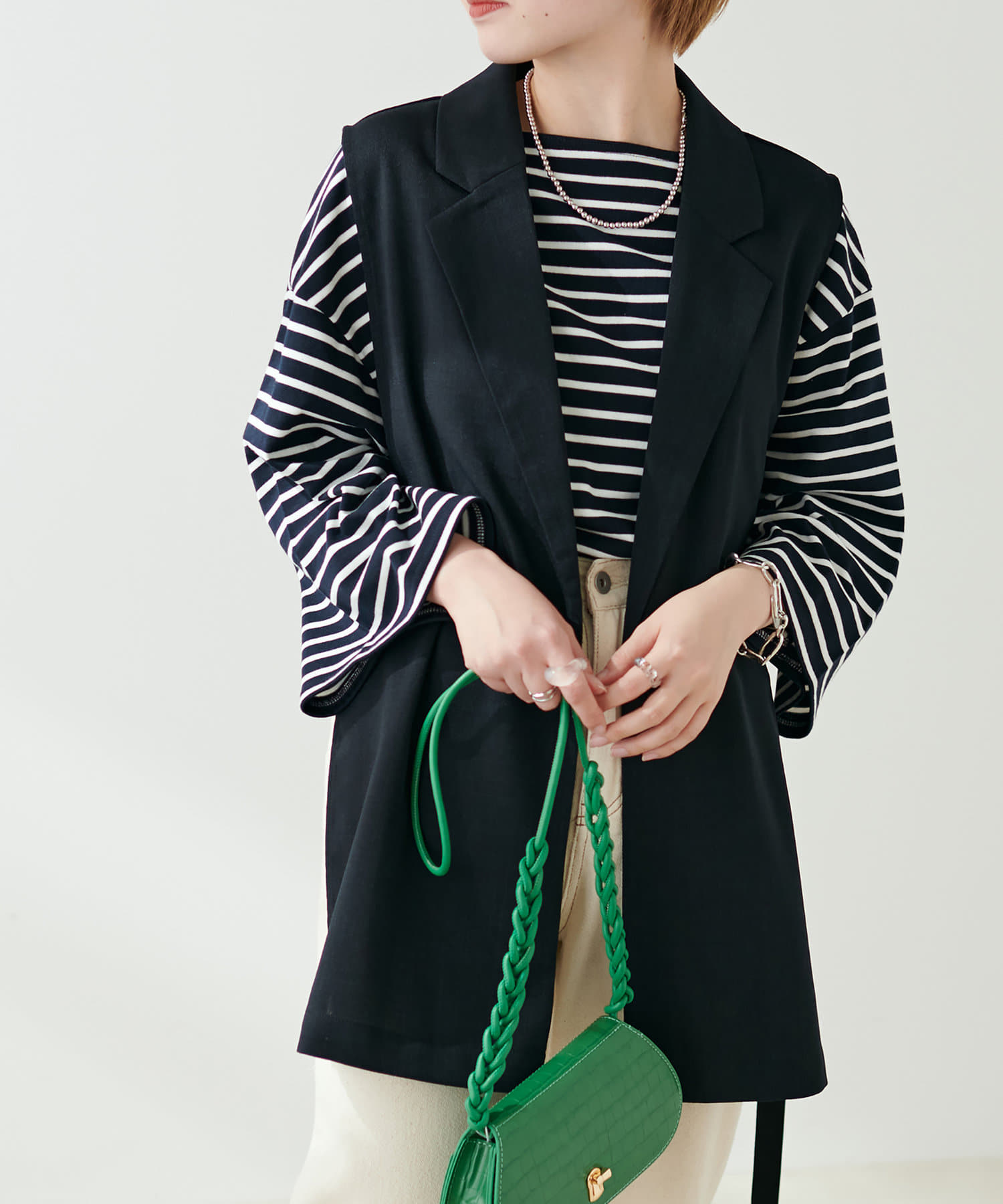 幅広いアイテムと合わせやすいようオープンデザインに仕立てました。