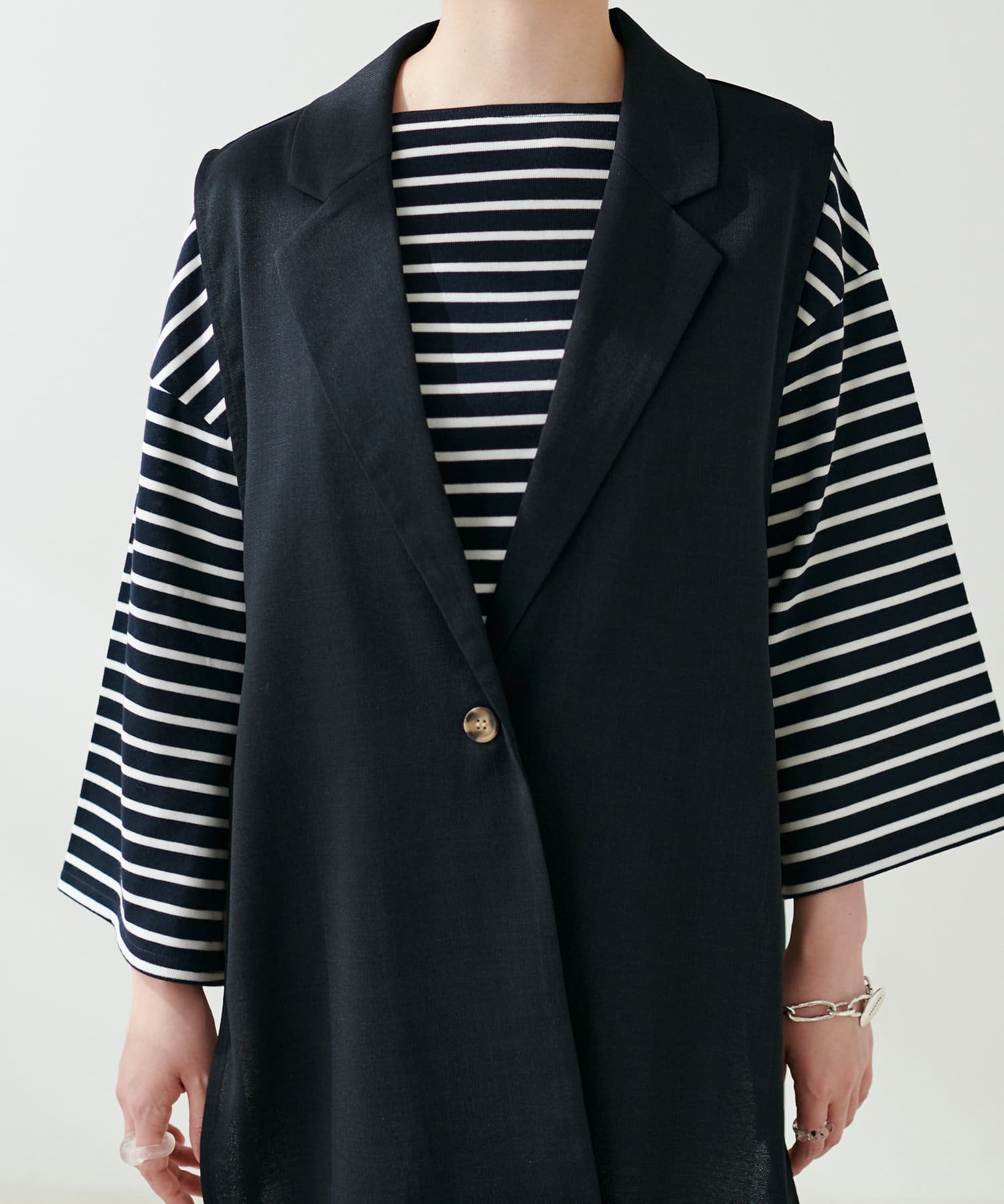 普段のコーデにこなれ感をプラス リネンライクサイドオープンベスト