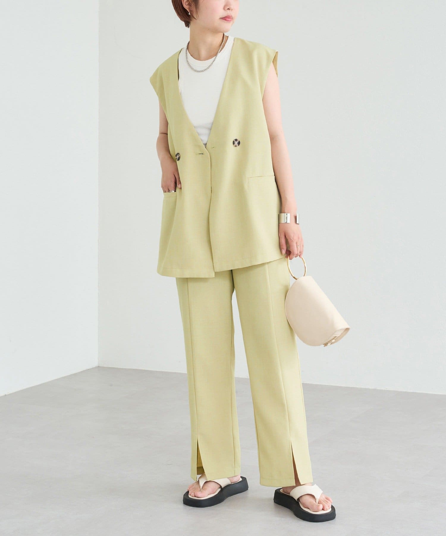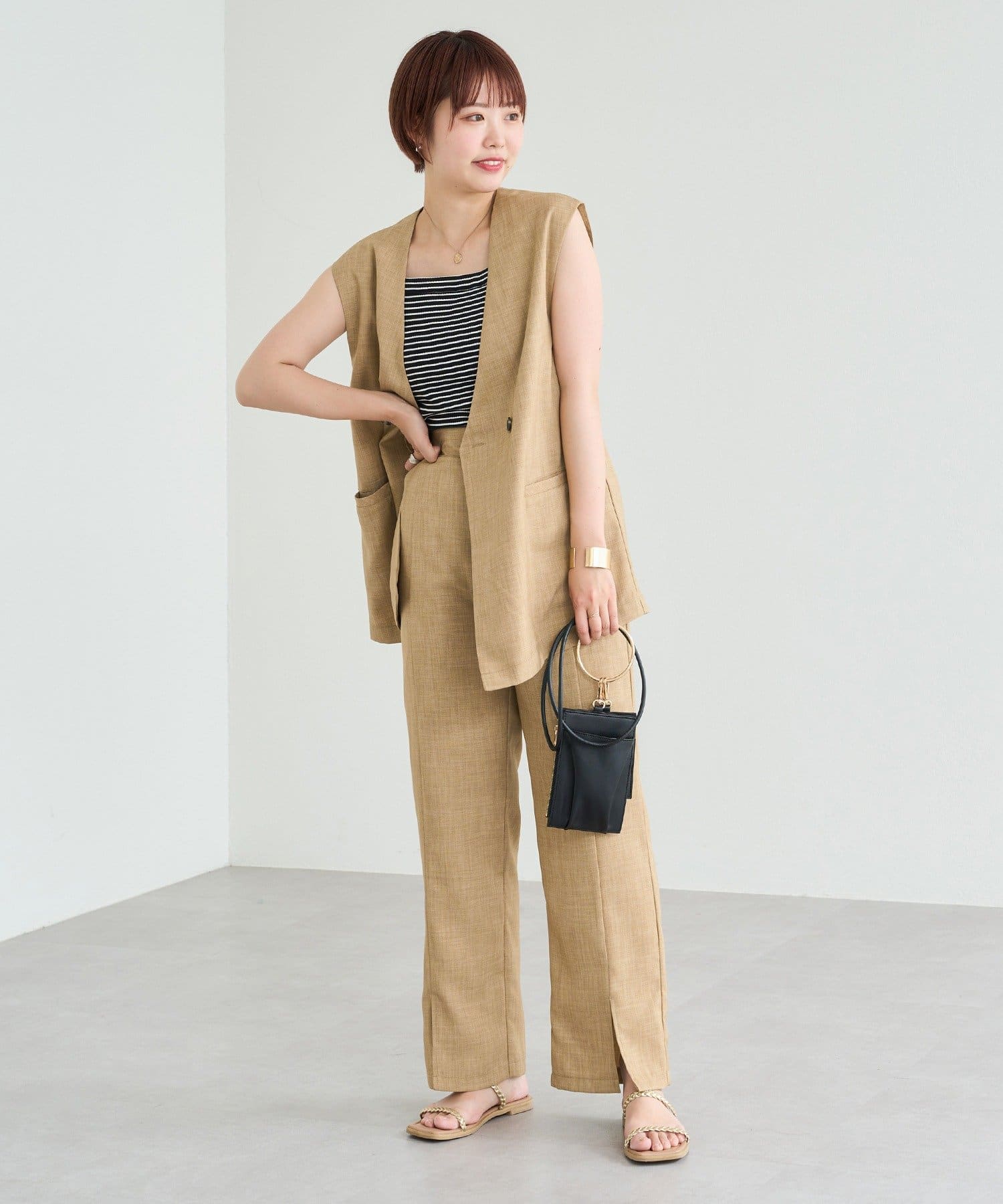 351510230 : 麻調合繊フロントスリットスラックス と同素材