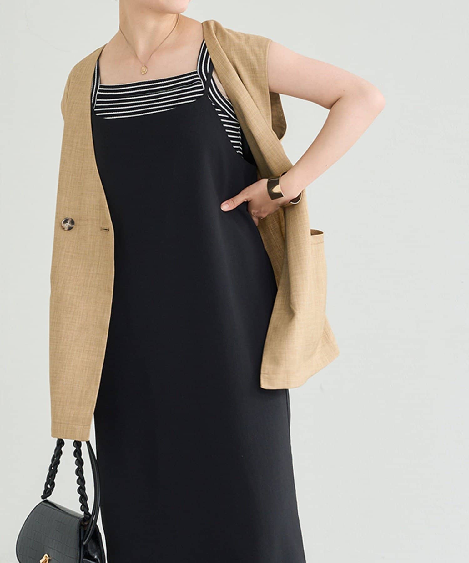 肩のラインを広めにデザインすることで、キャミソールやタンクトップに合わせてシンプルにお召し頂いても、