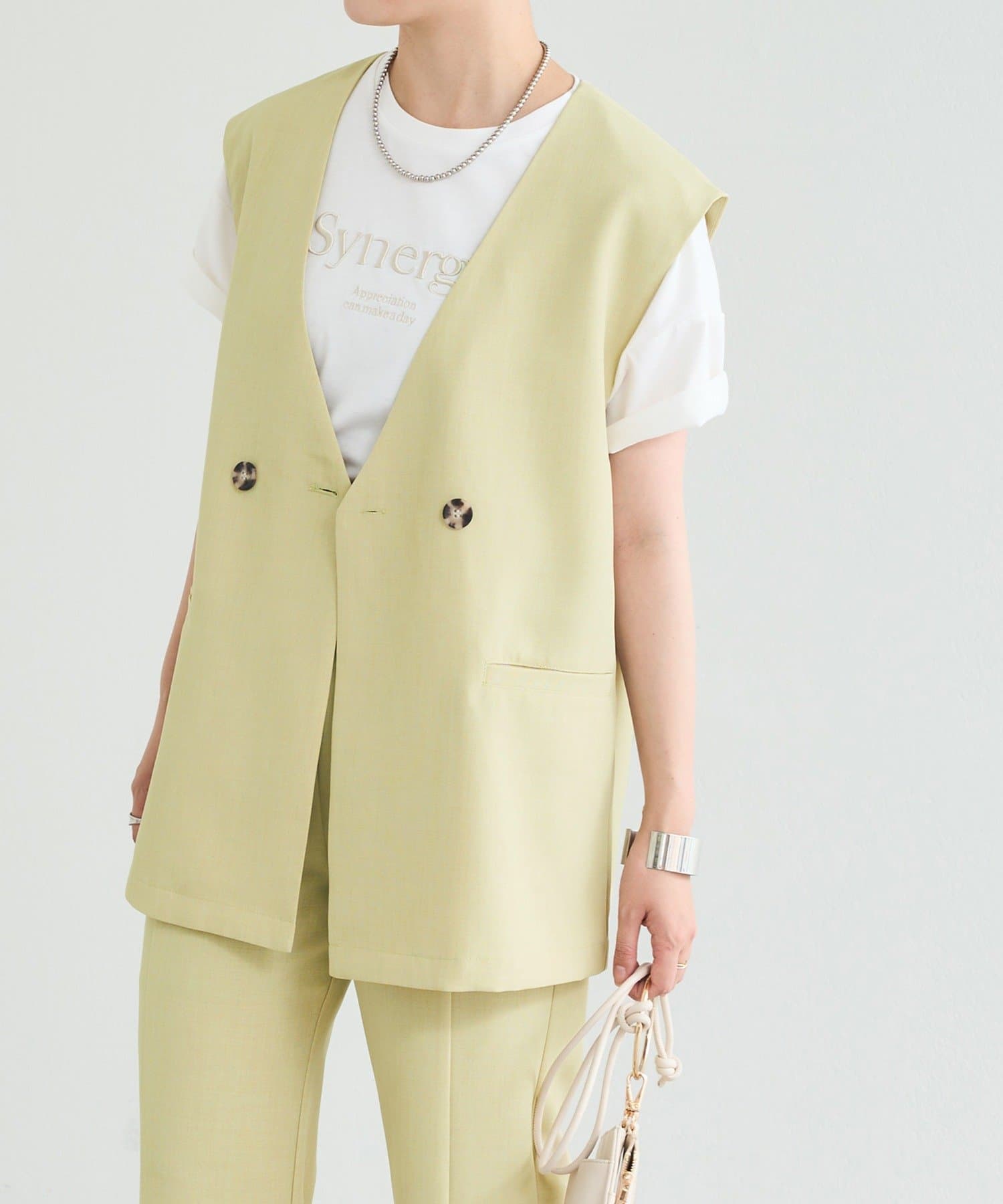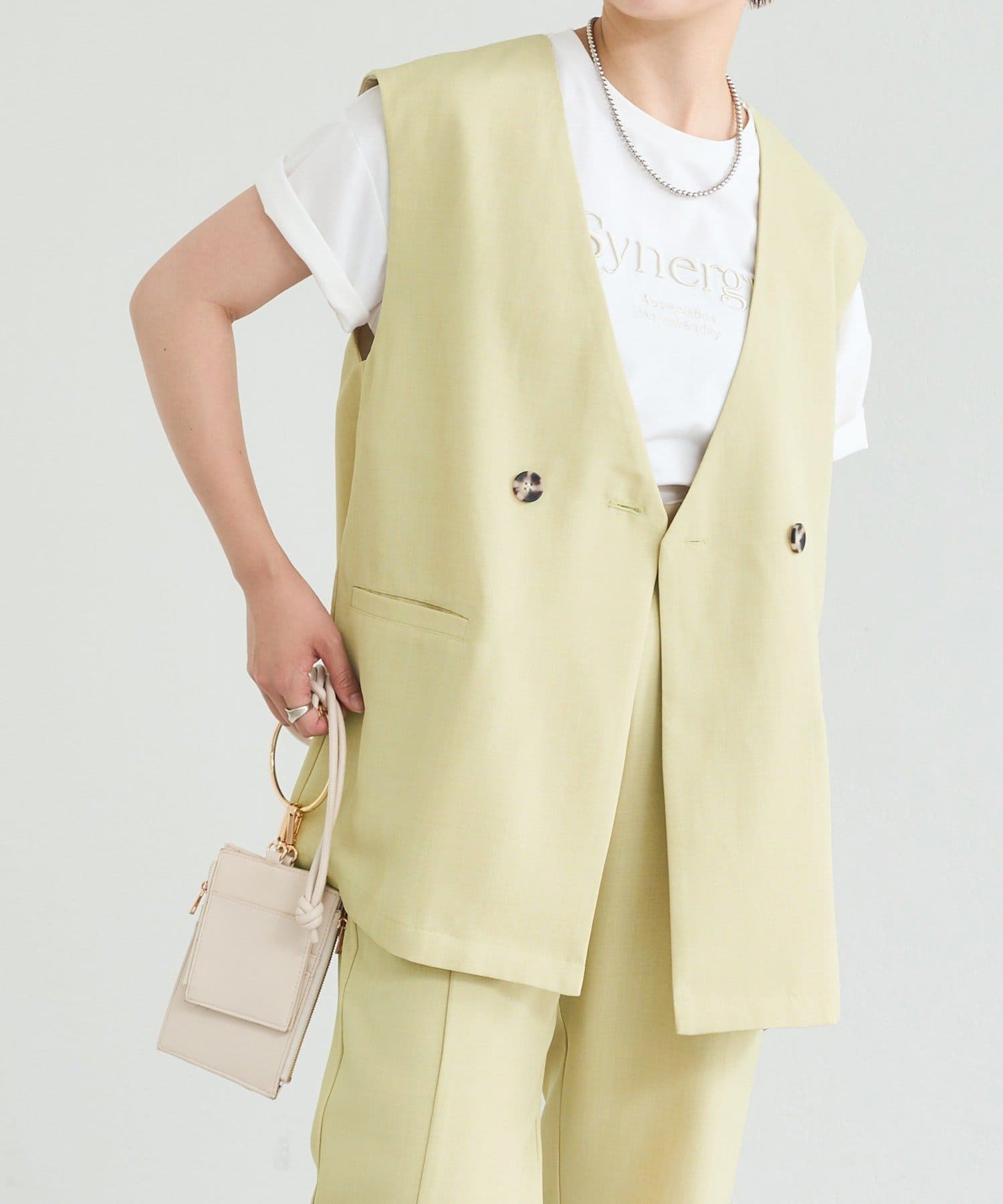 麻調のナチュラルな風合いが涼しげな、今季のトレンドアイテムとして1着は持っていたいベストが登場です。
