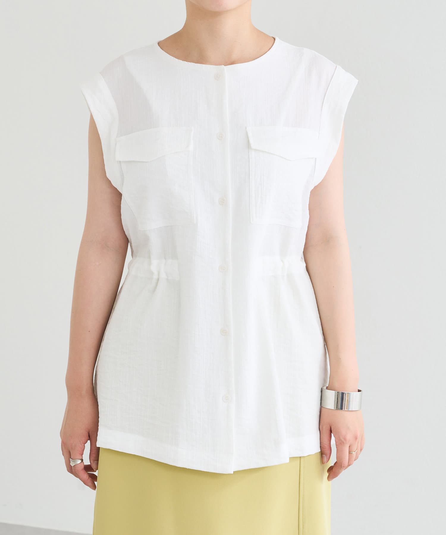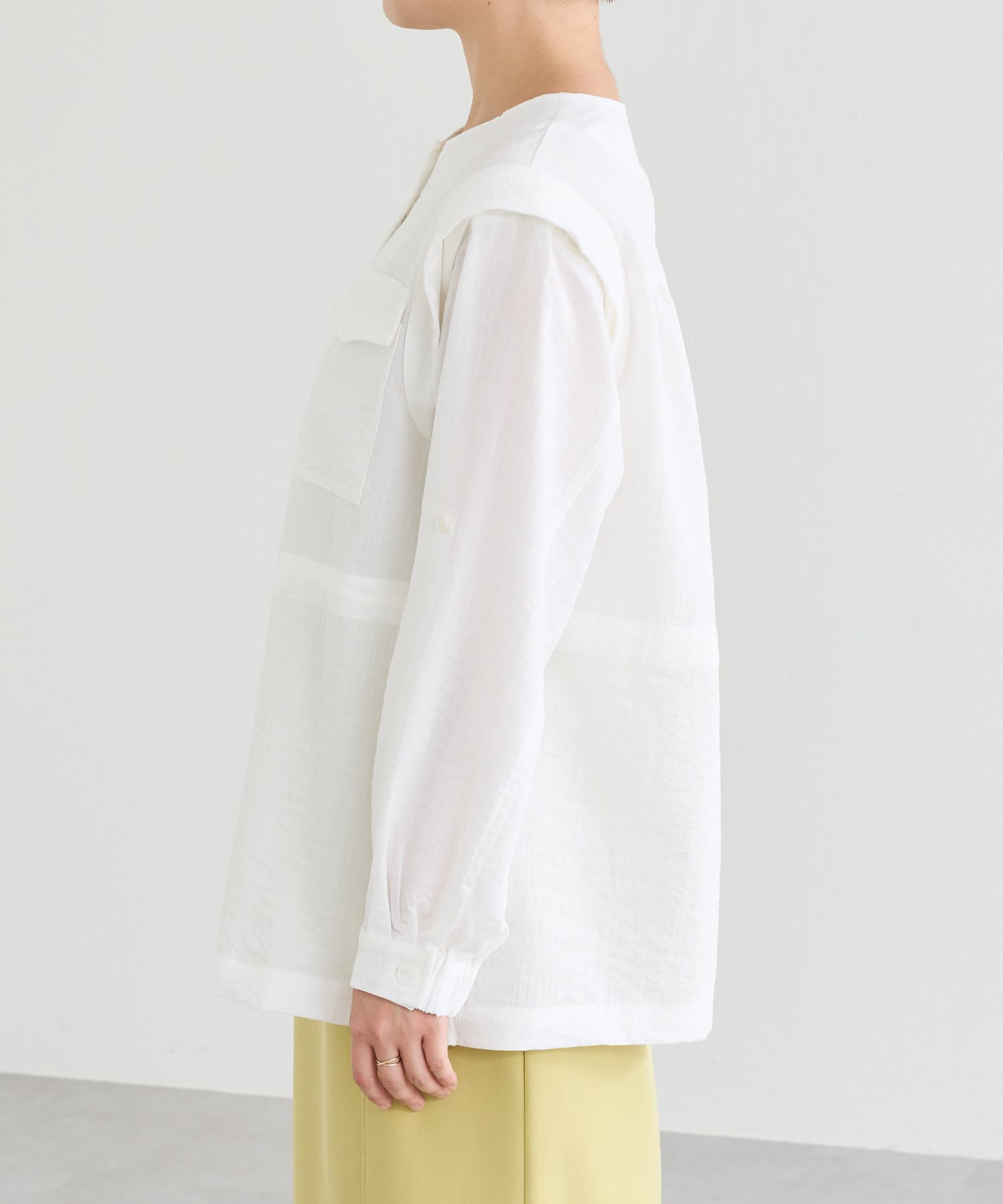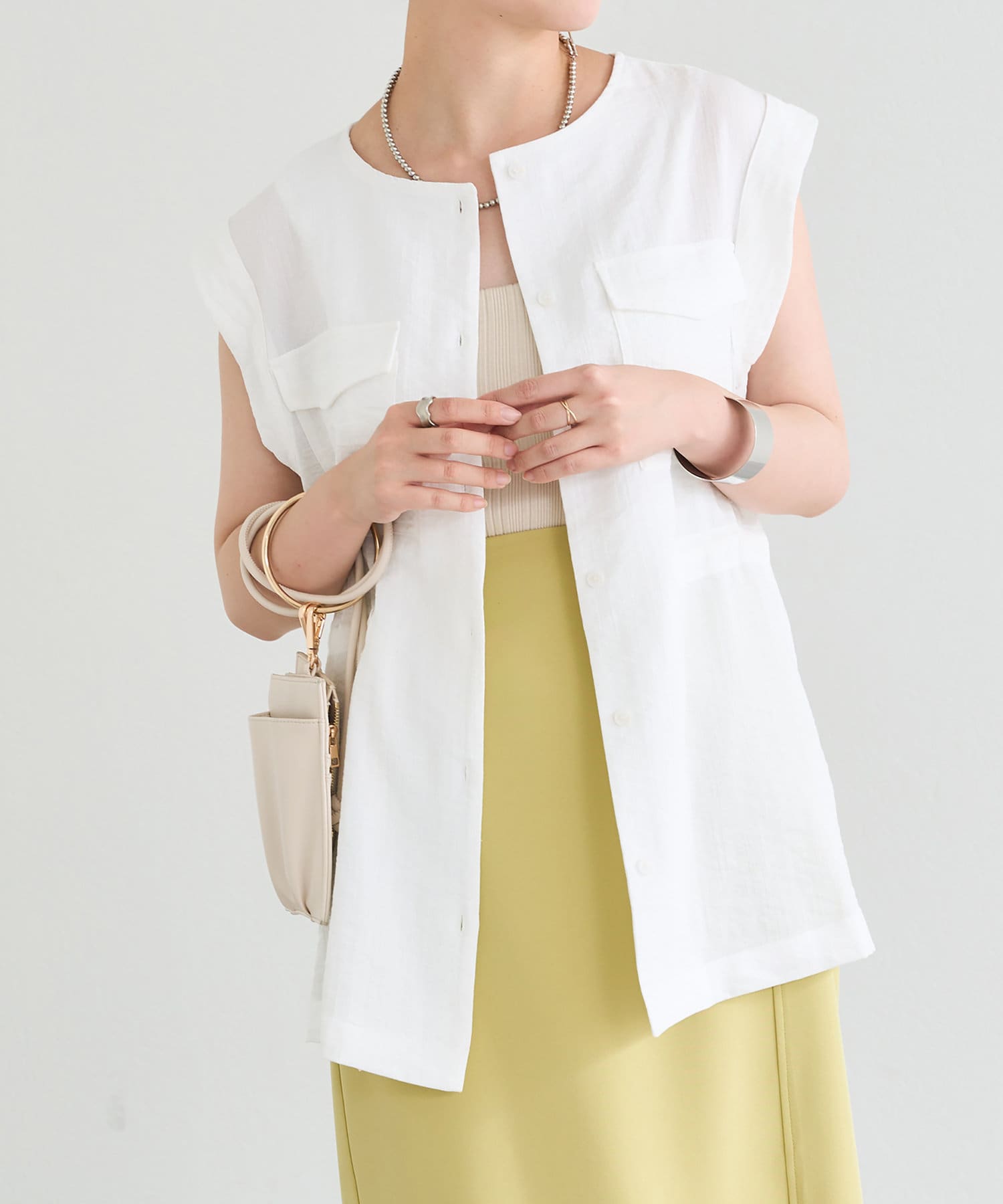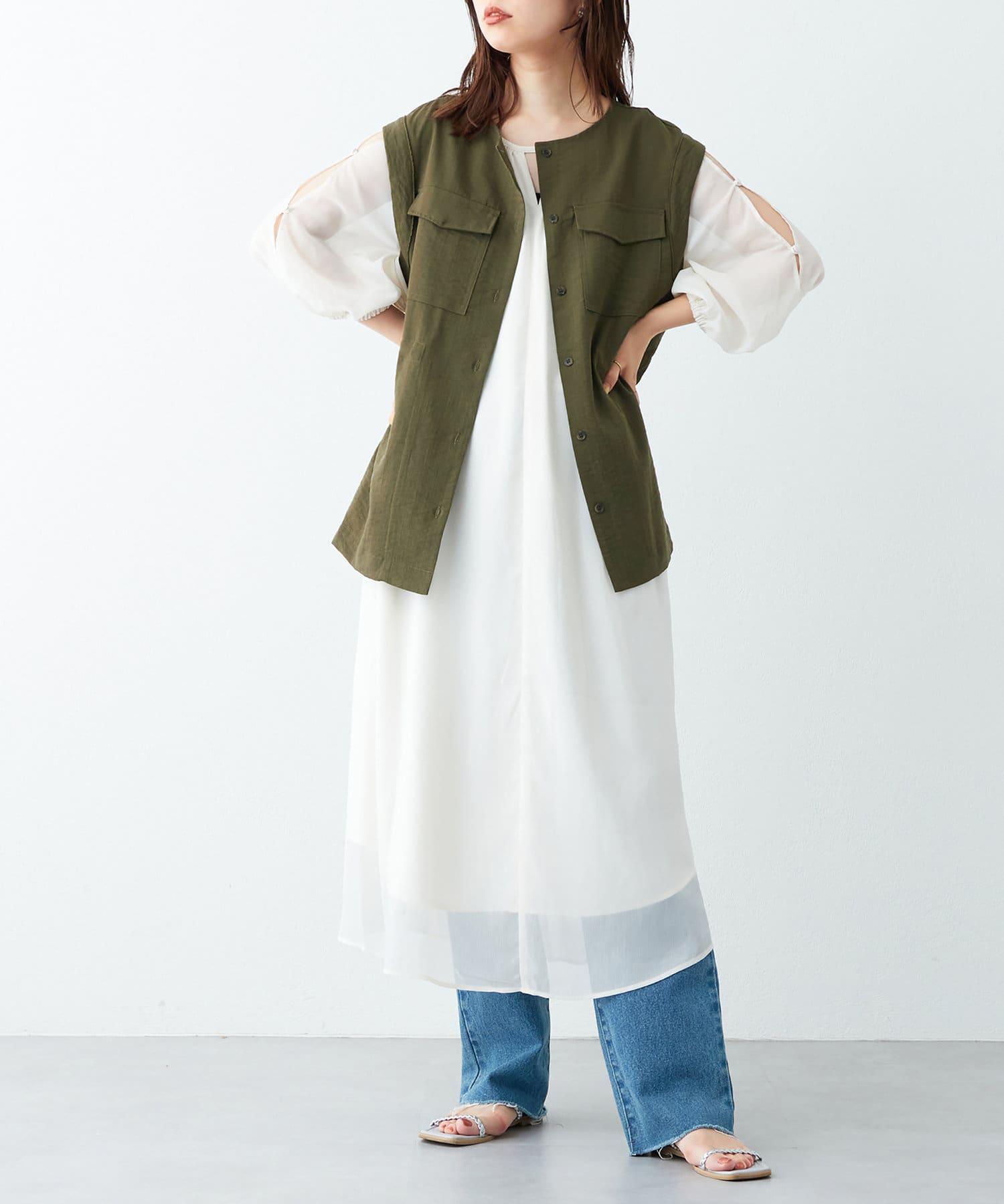 袖を取り外しカジュアルなボーダーシャツや襟付きシャツに羽織ってベストのようにするも良し、