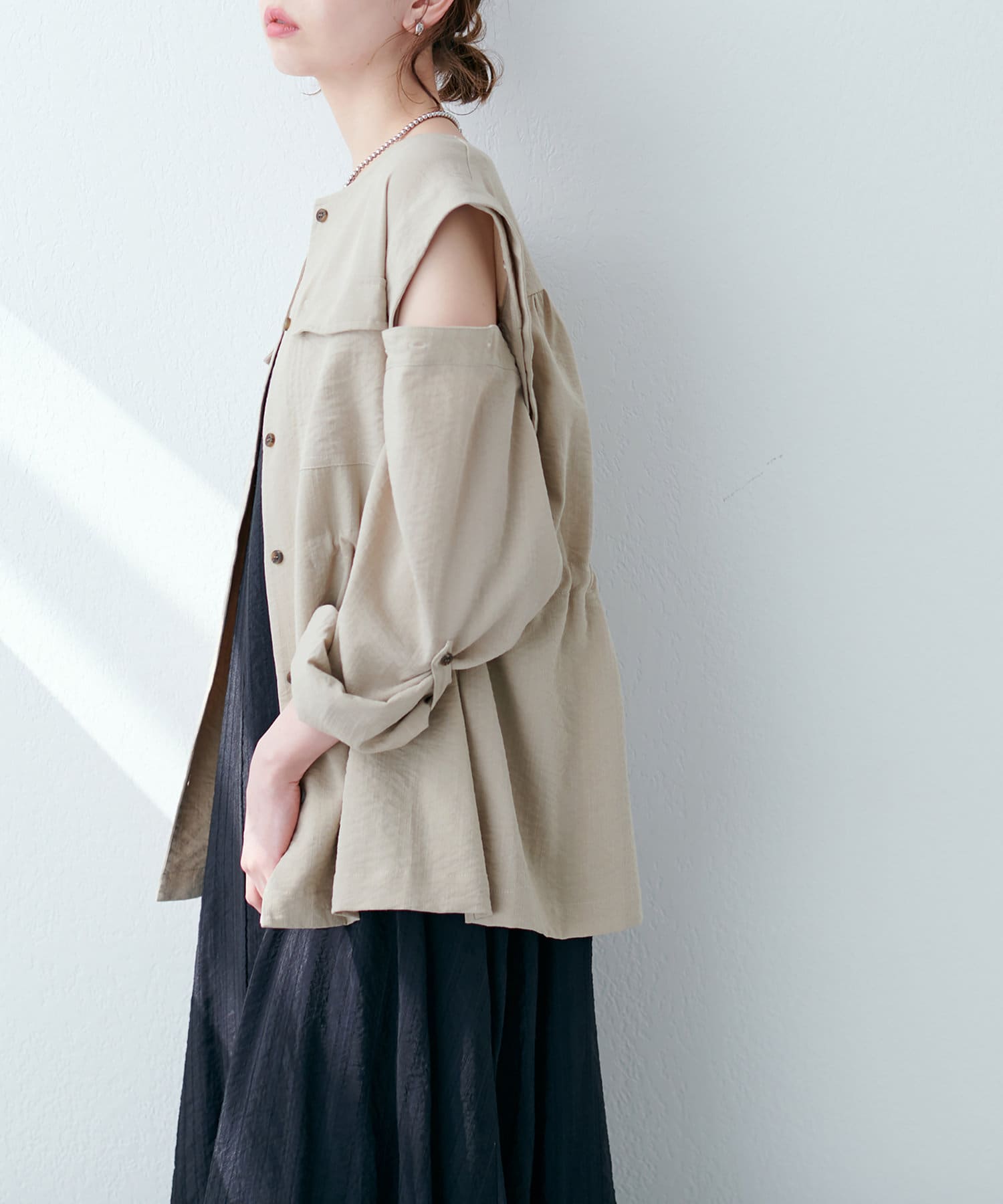 • natural couture(ナチュラルクチュール) 2WAYスリーブミリタリーシャツブルゾン