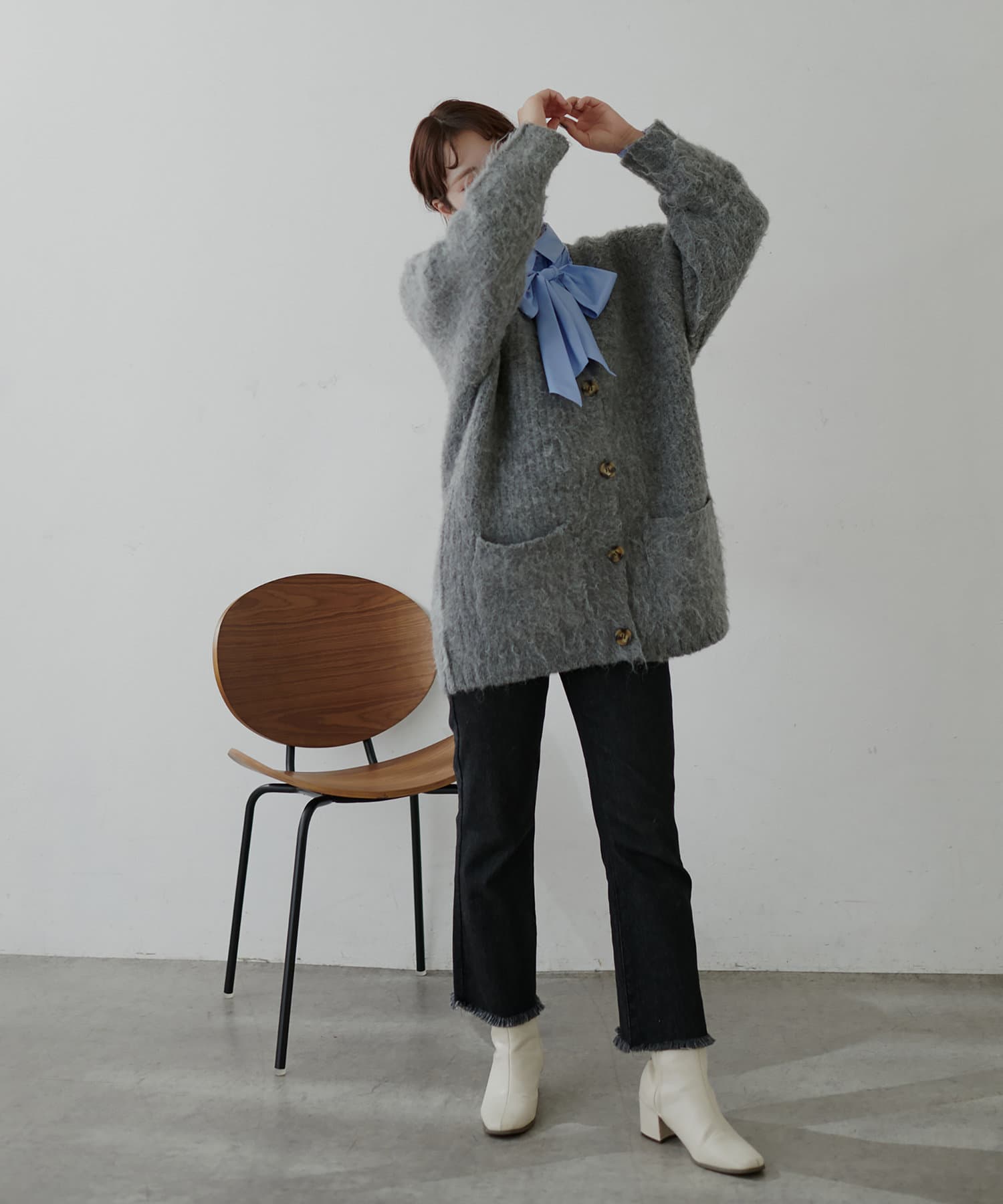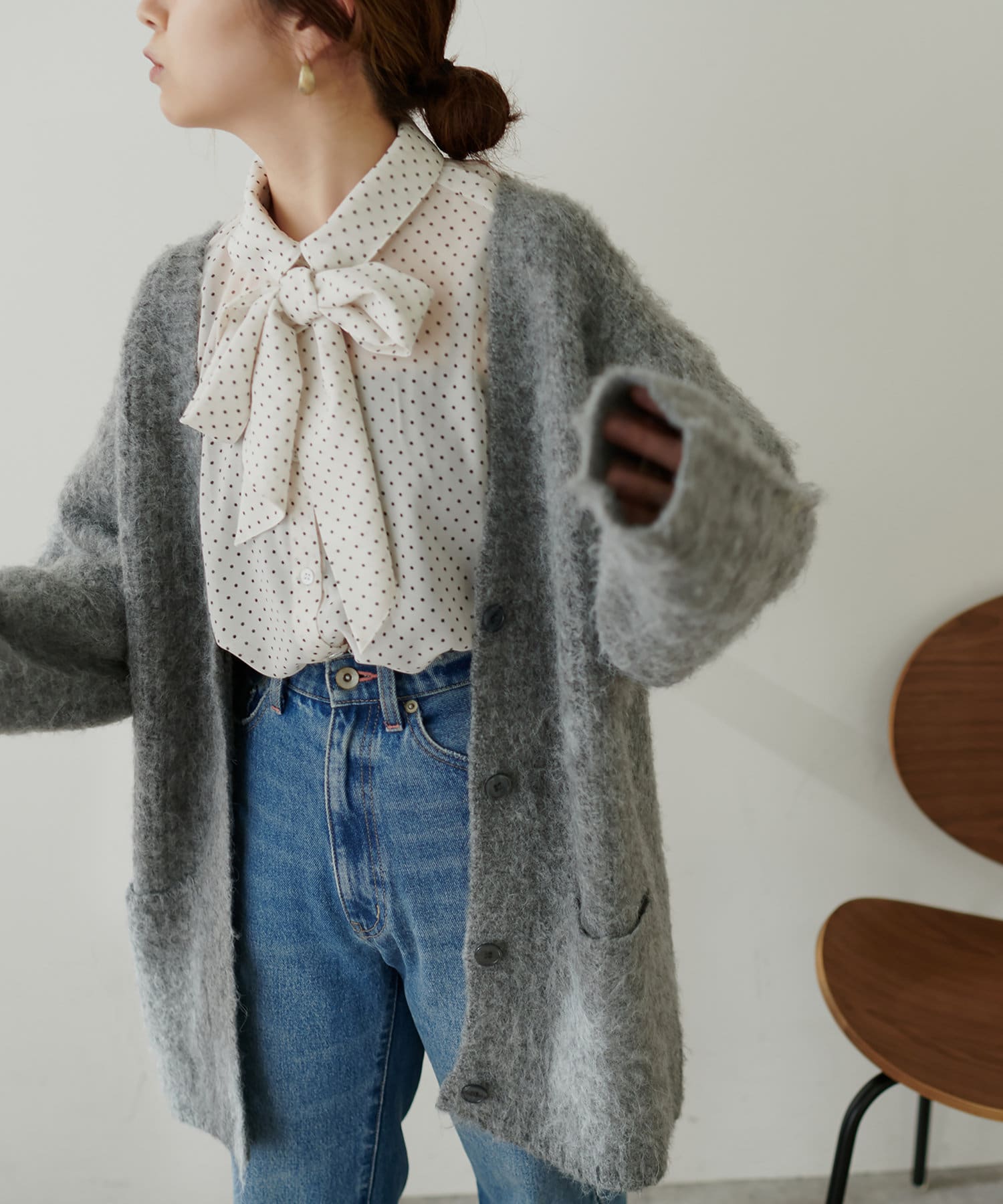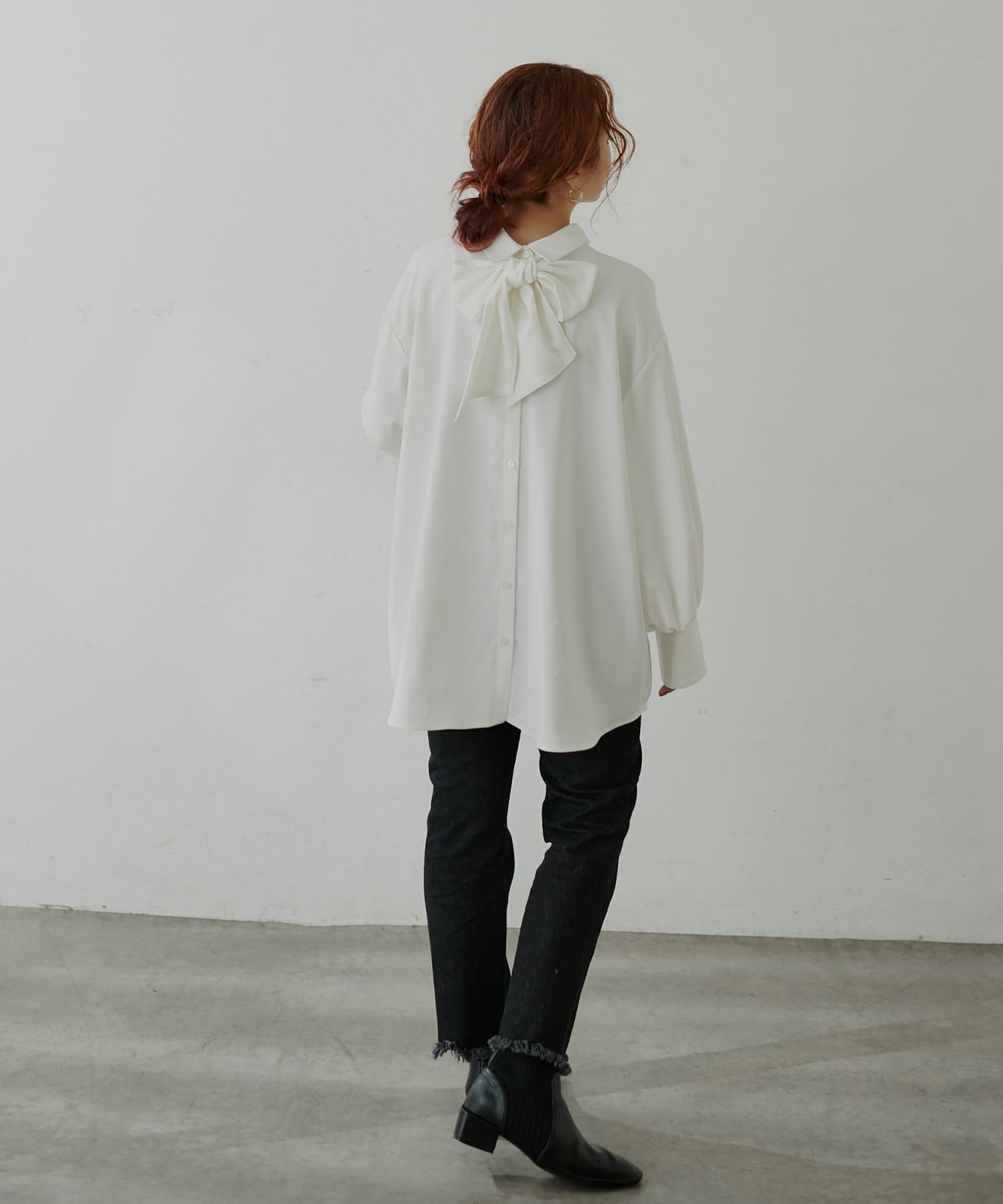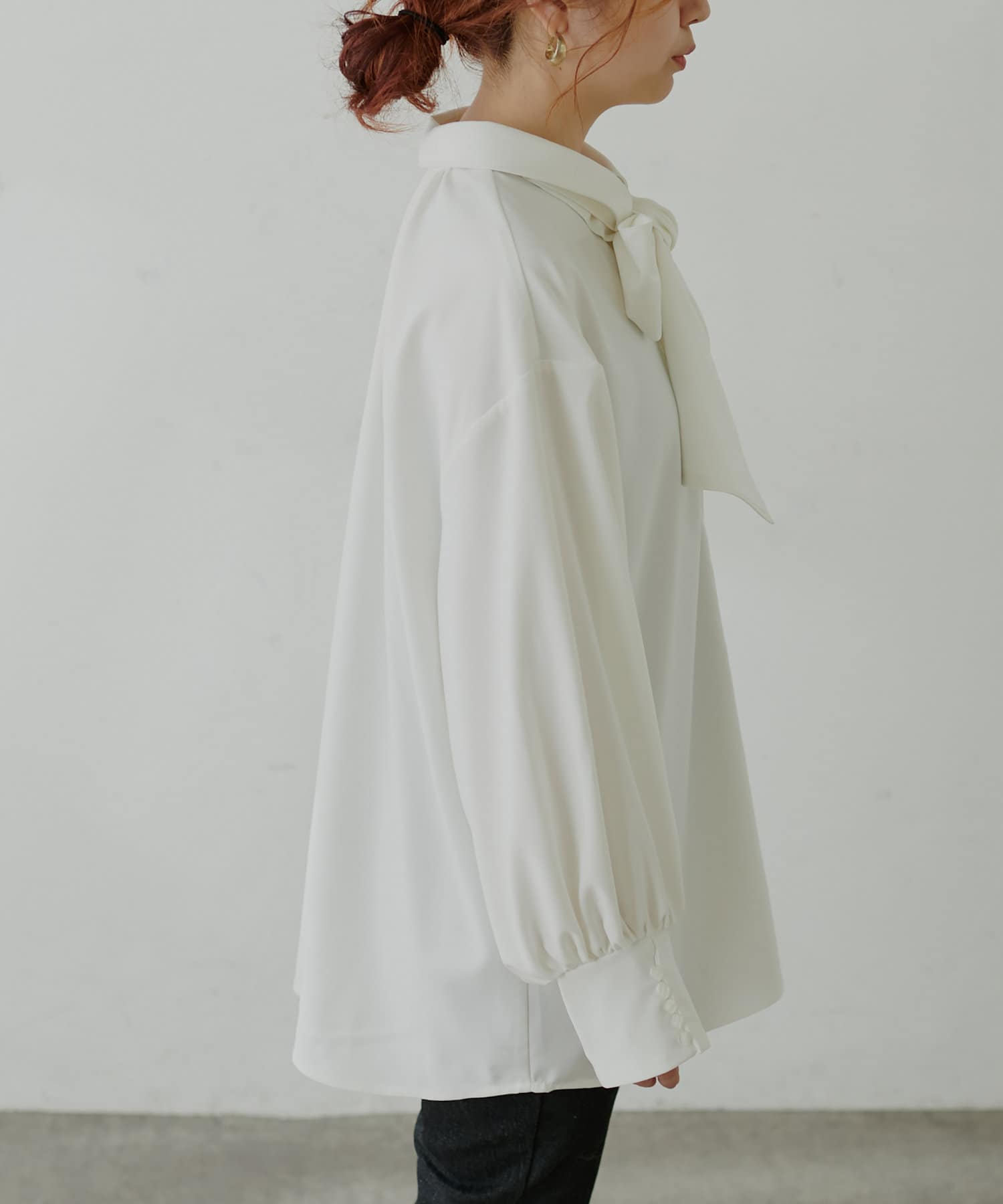 大きめのボウタイをリボン結びしてクラシカルな印象で着用したり、