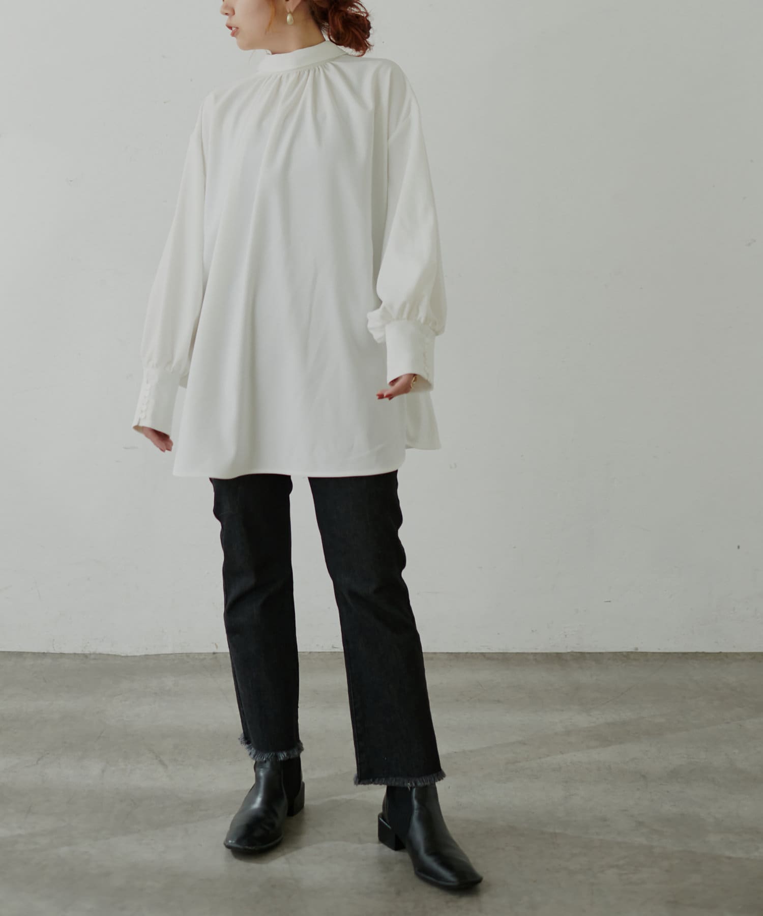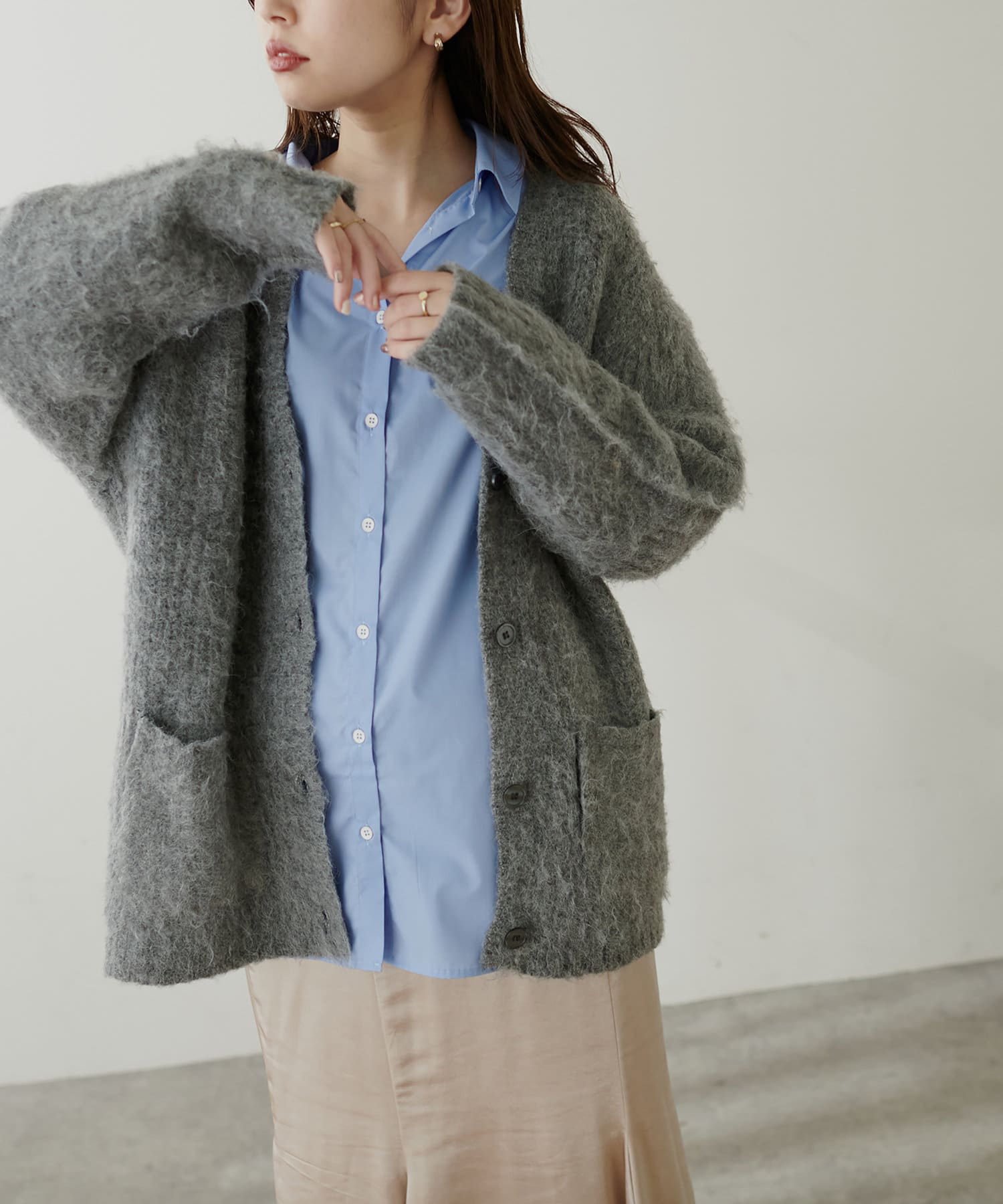 腰がしっかりと隠れる着丈なので、様々なアイテムとのレイヤードをお楽しみいただけます。