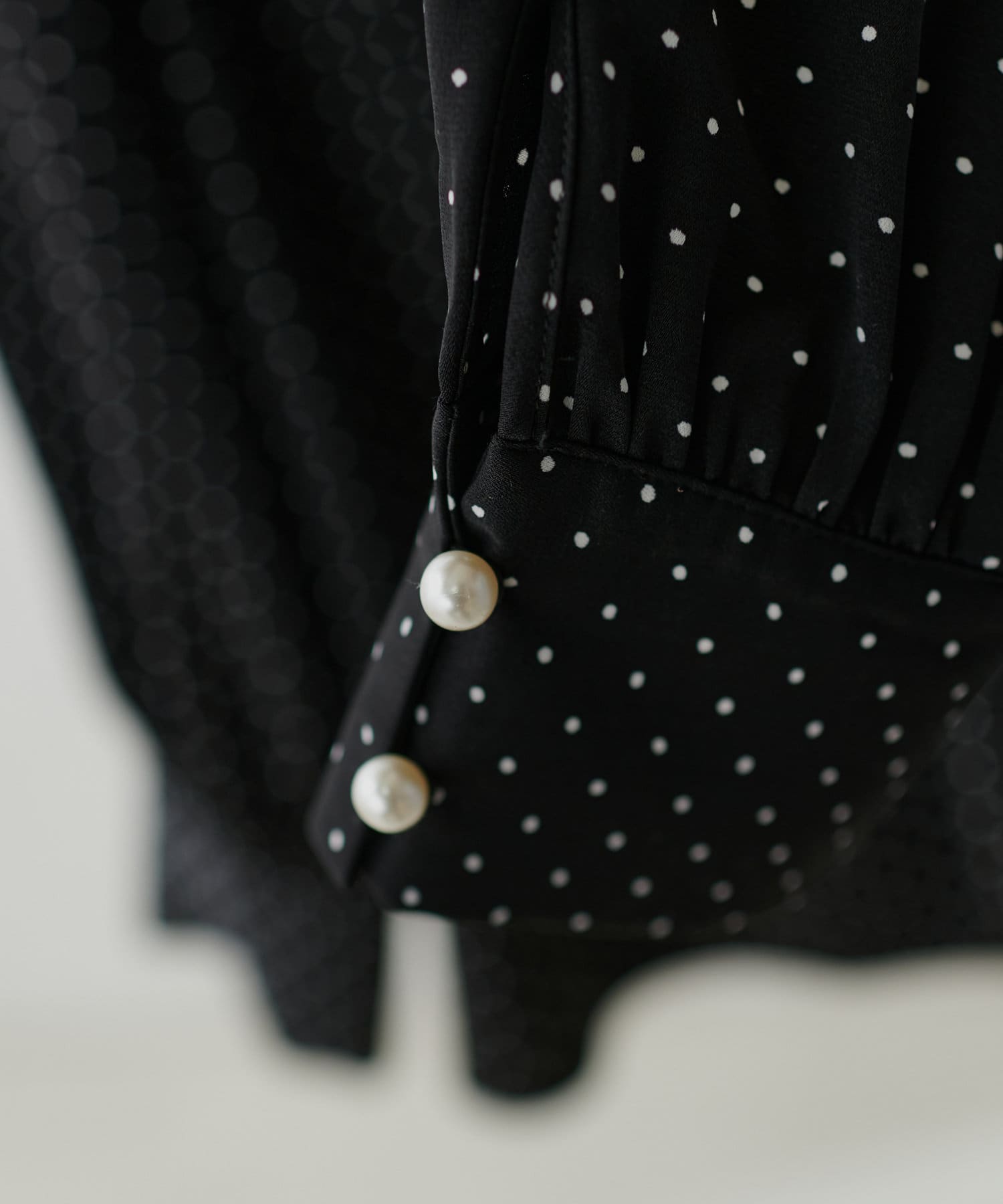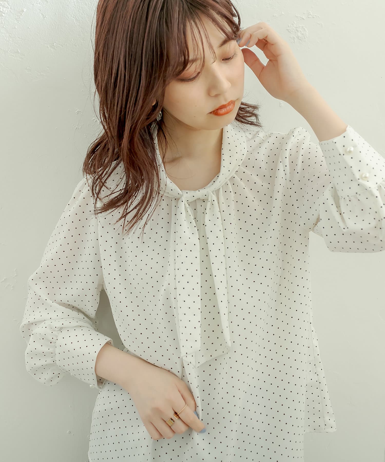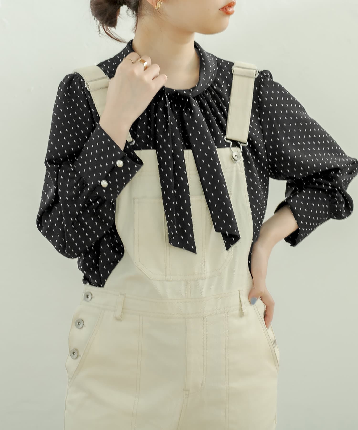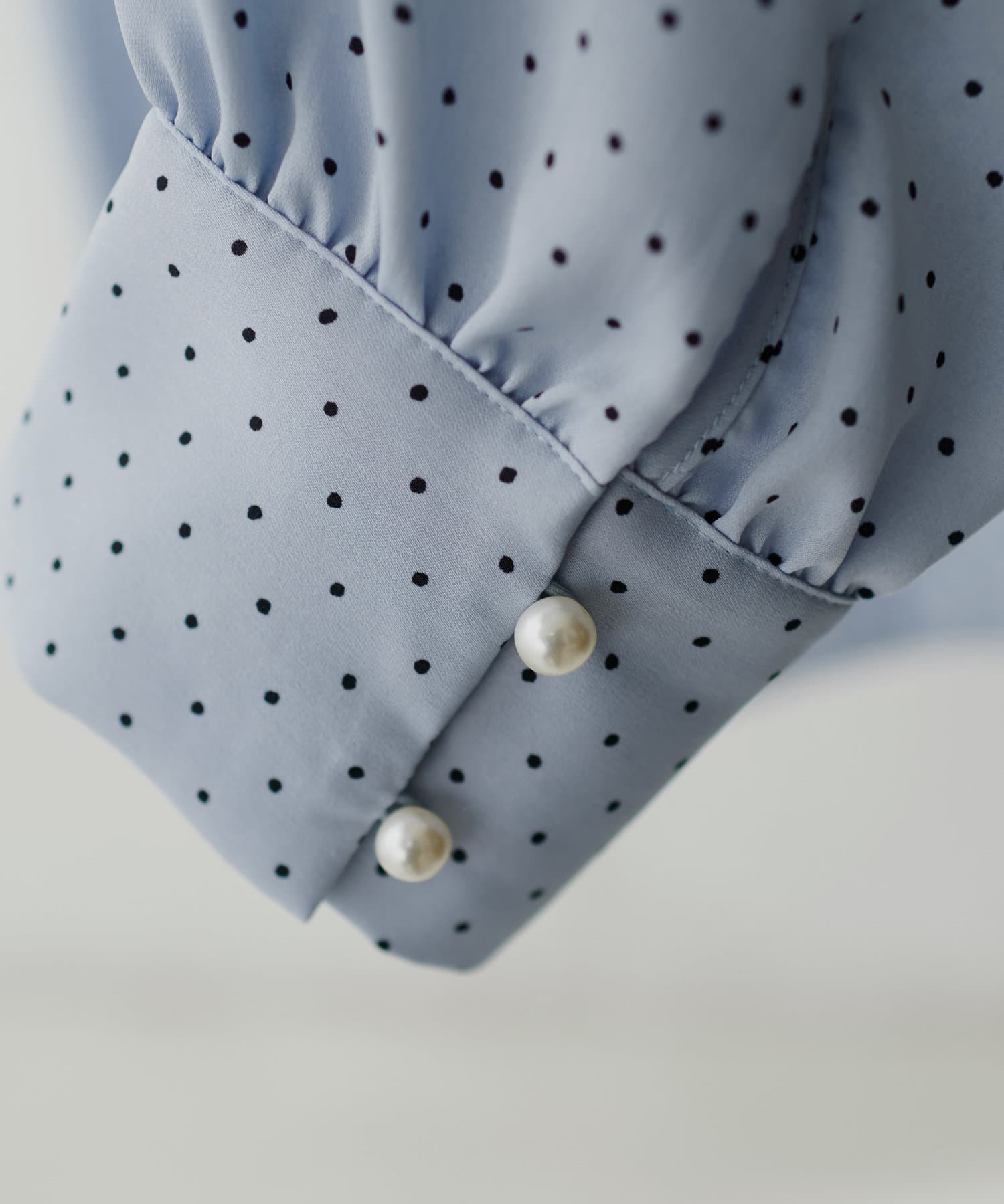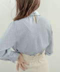 袖口パールノット結びボータイブラウス
