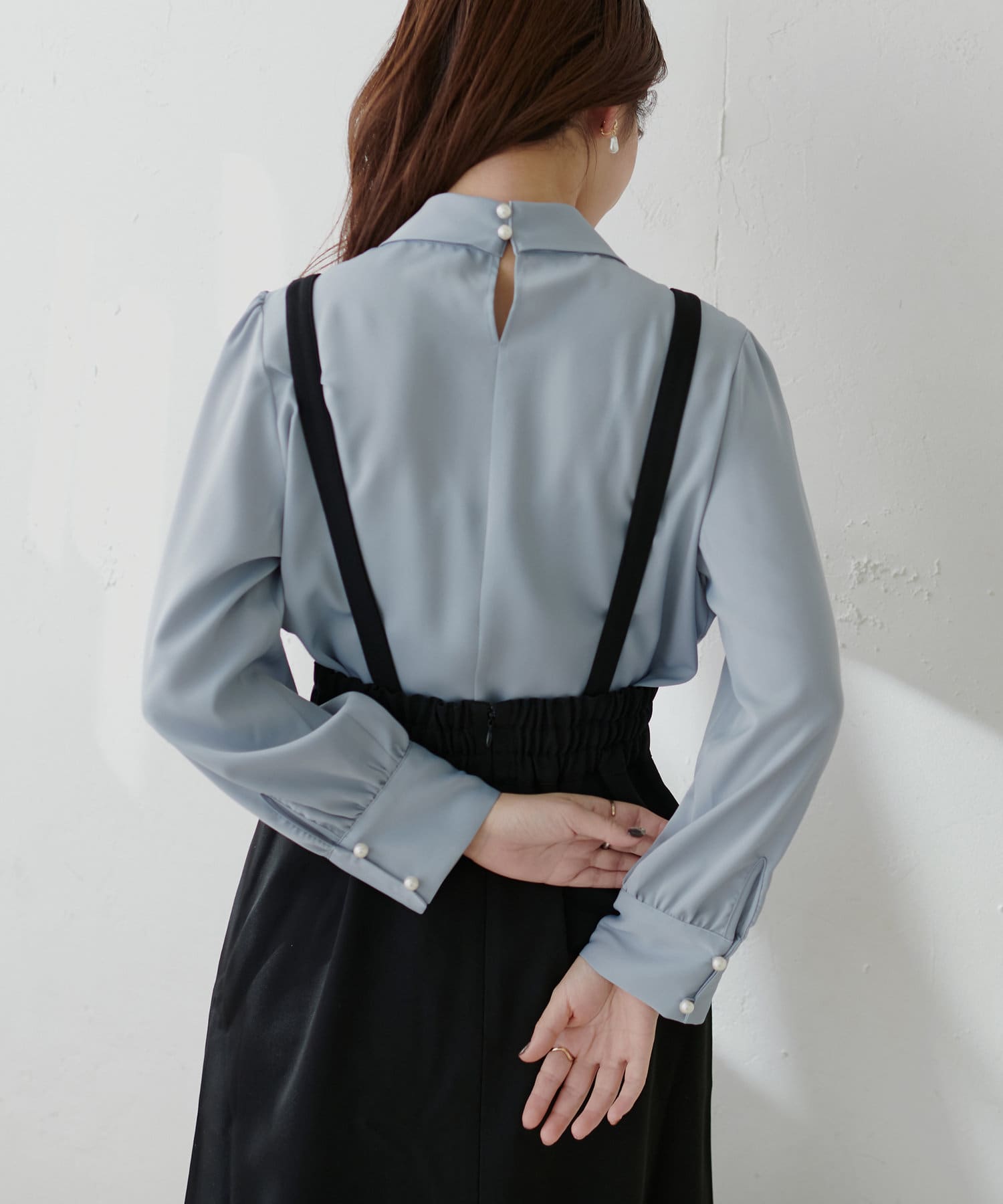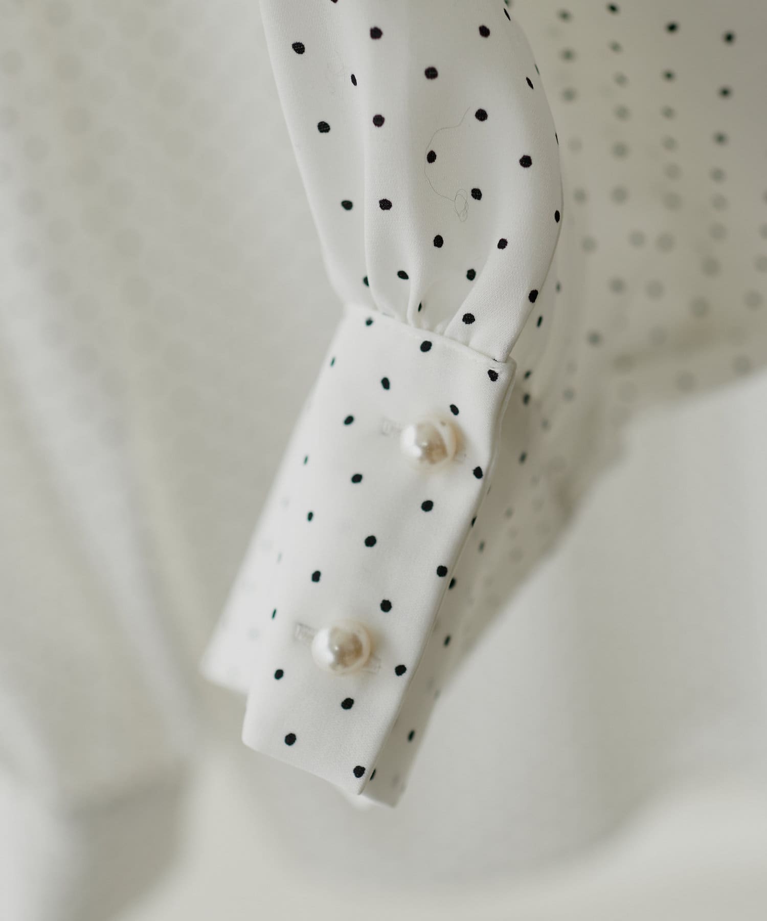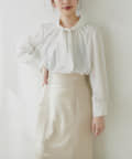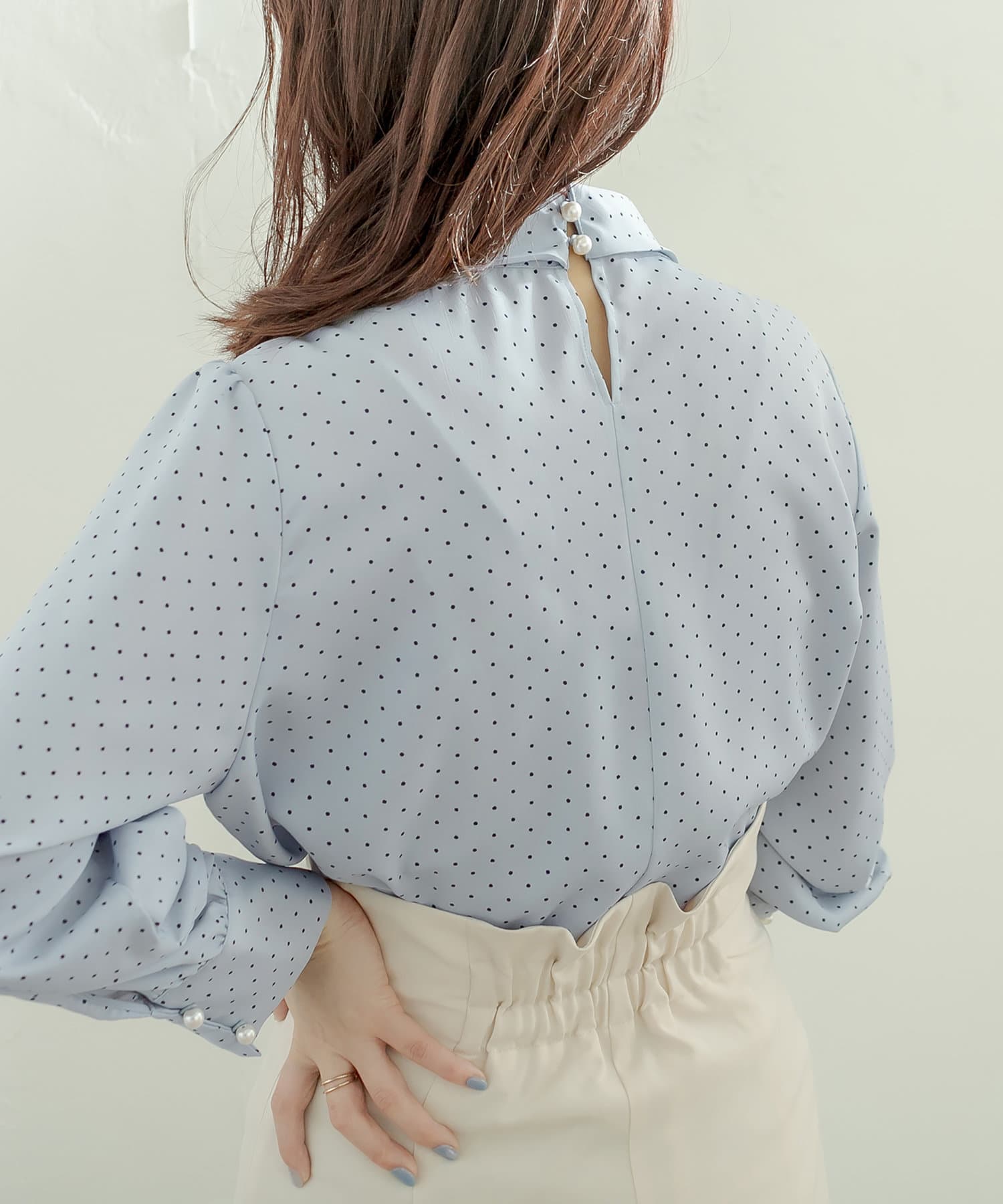 ネック部分と袖口に施したパールが大人上品な、デザイナー一押しの今季注目ブラウス。