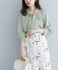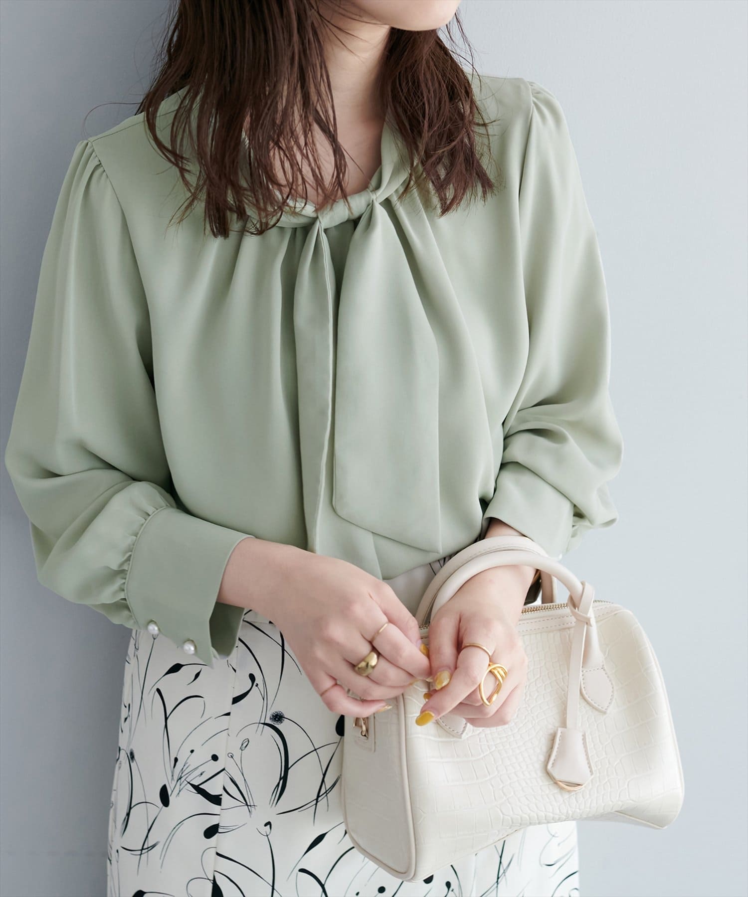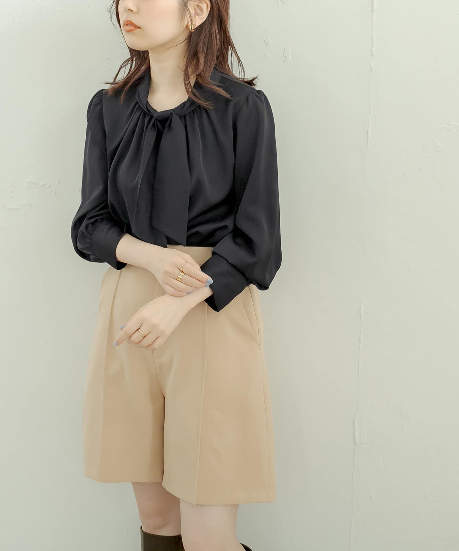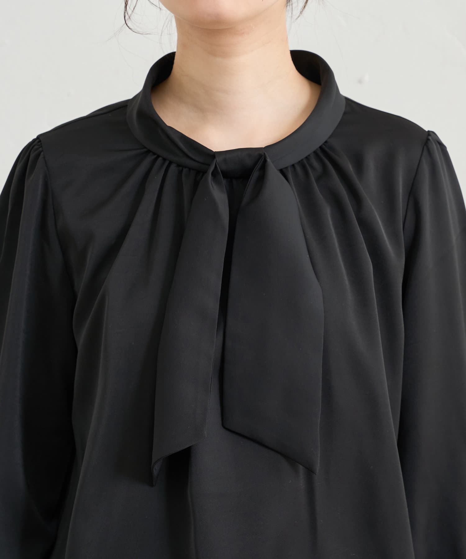 【WEB限定カラー有り】袖口パールノット結びボータイブラウス