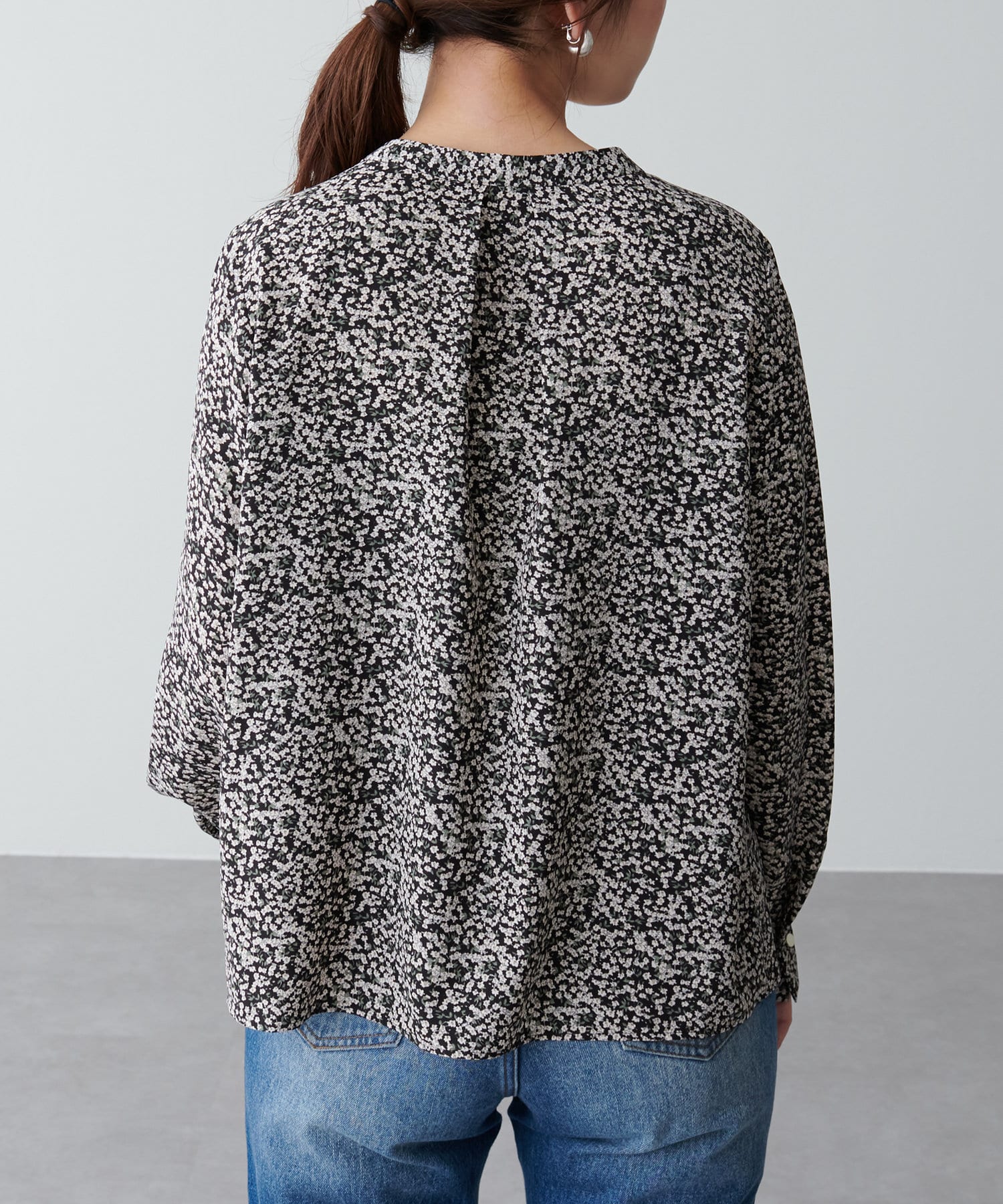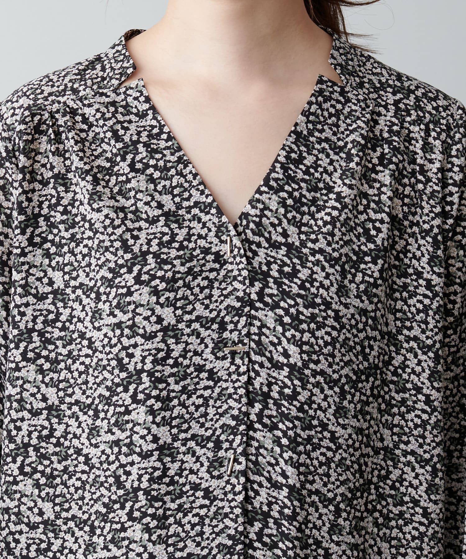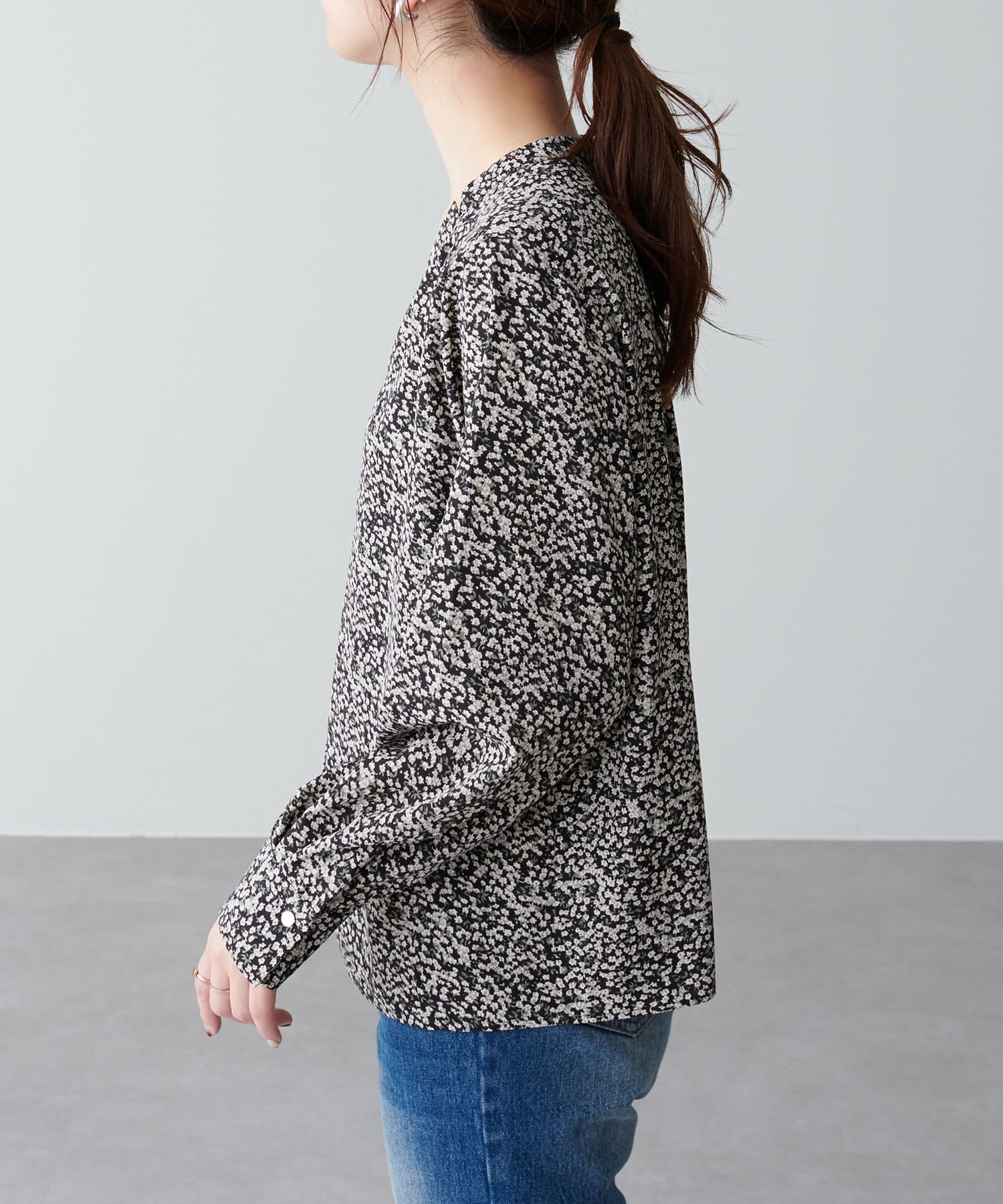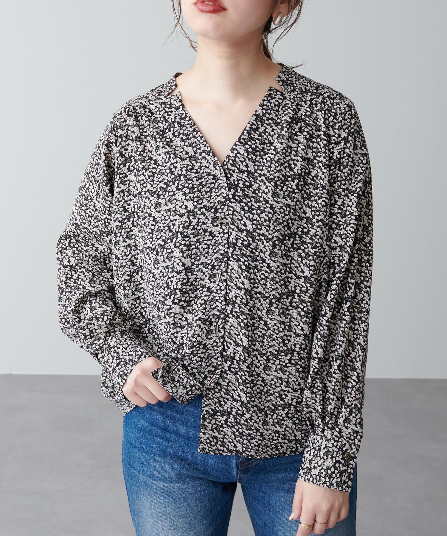 フロントにあしらったゴールドのバーボタンがポイントのお上品ブラウス。