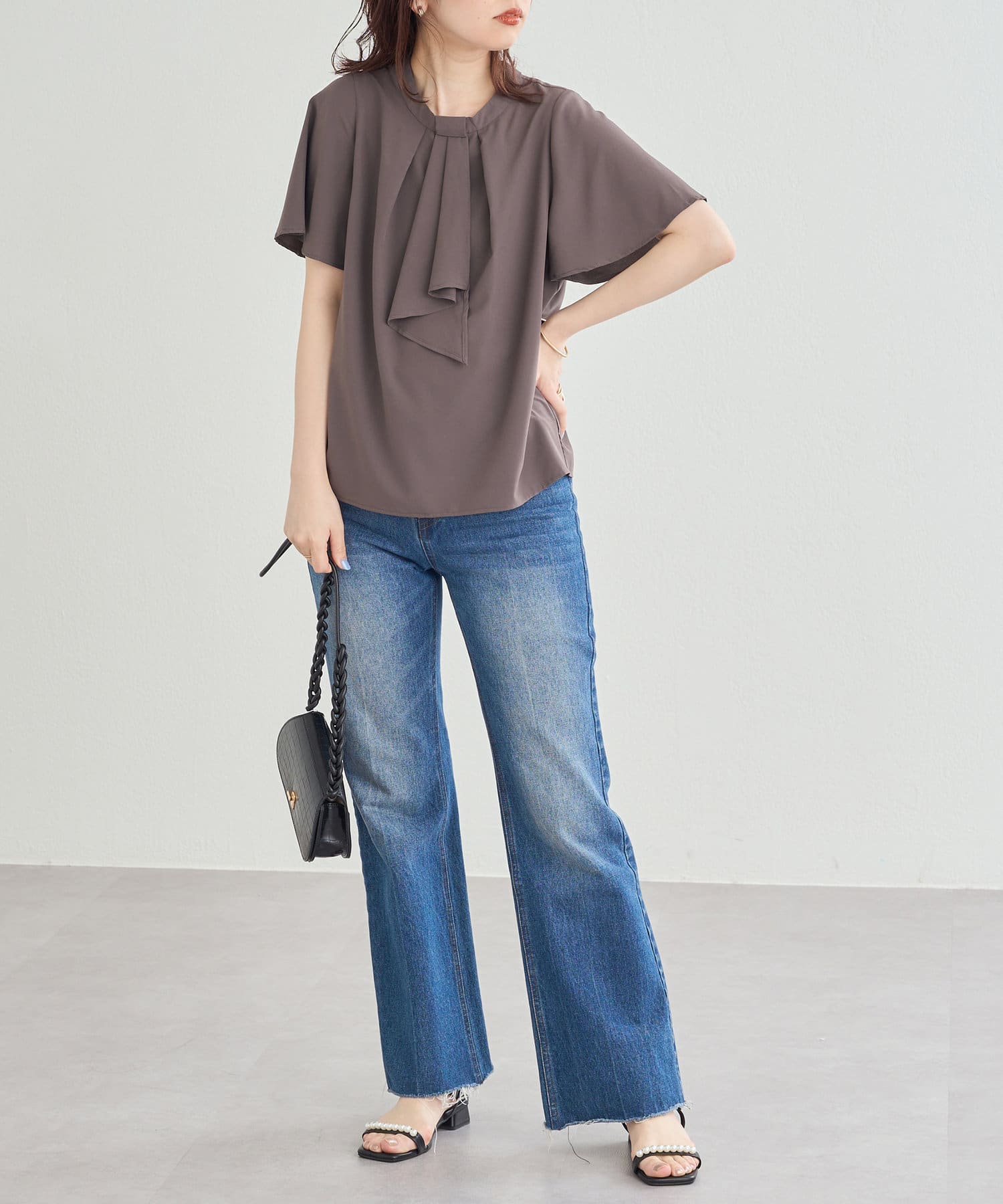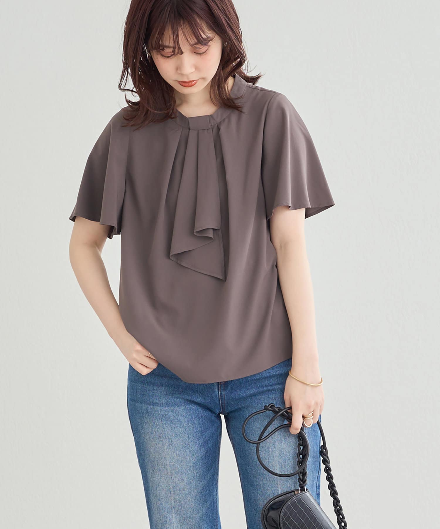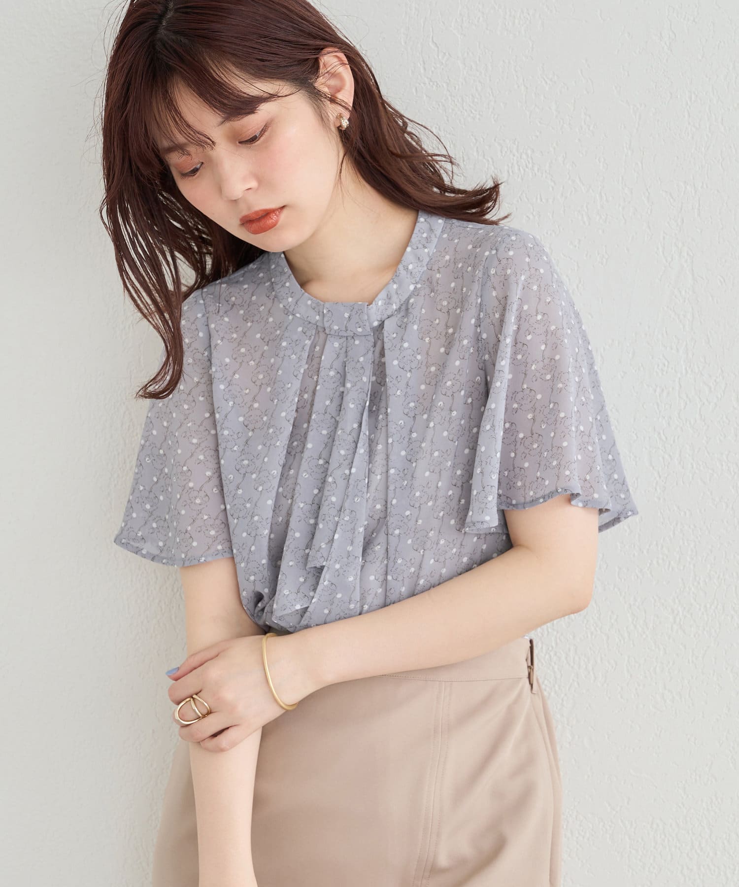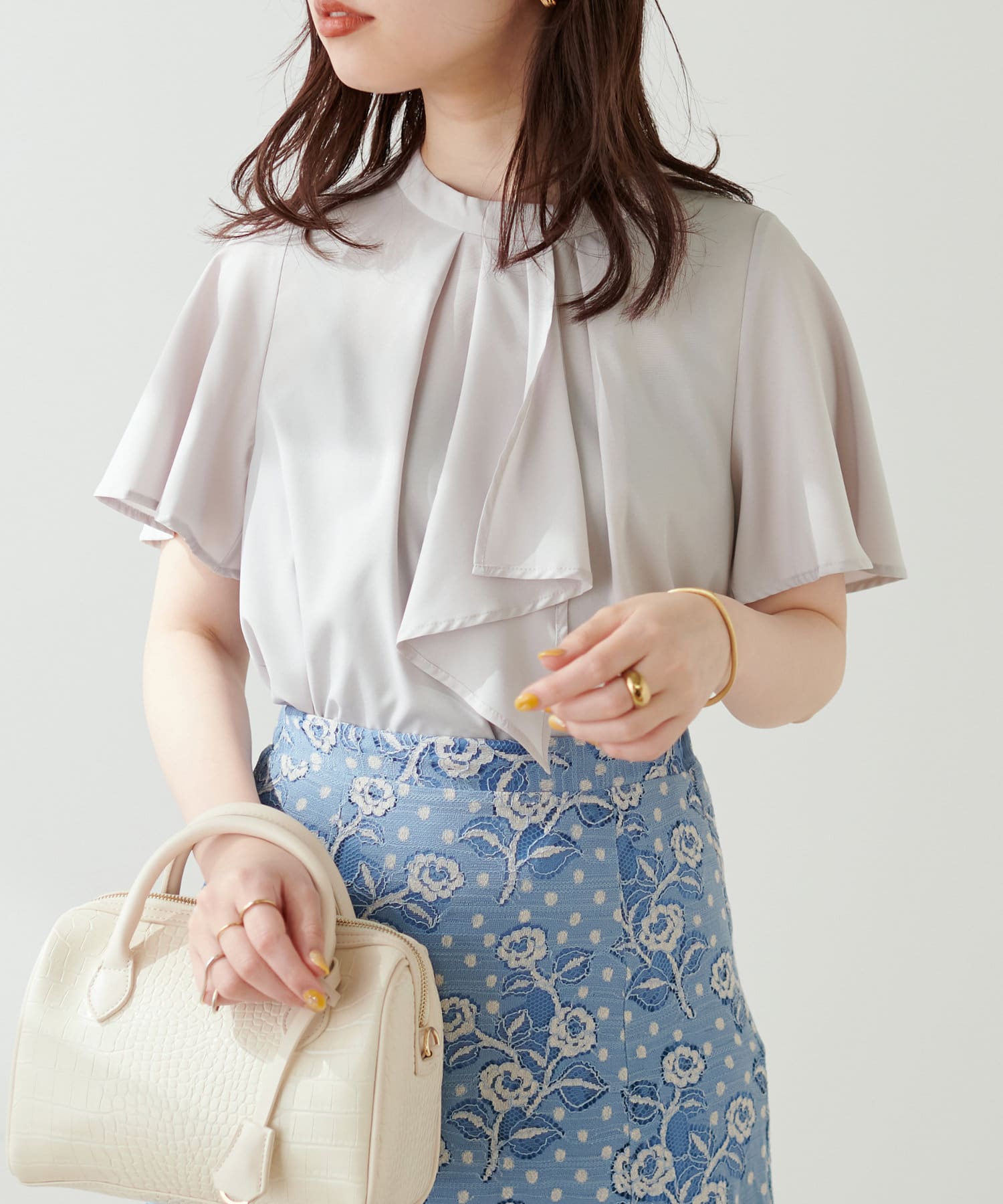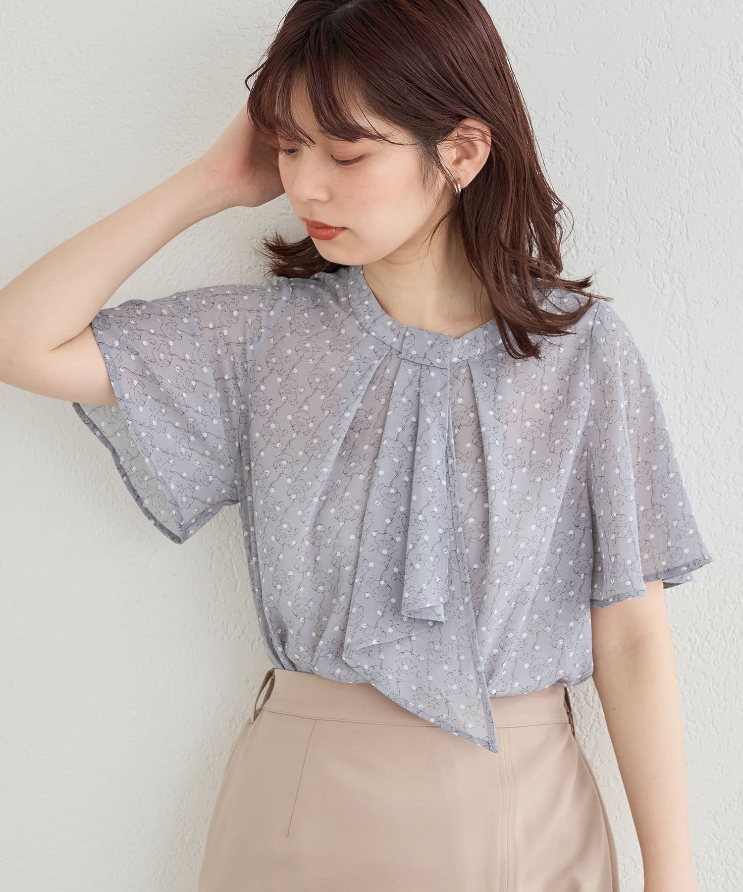 WEB限定カラー有り/スカーフボータイフレア袖ブラウス