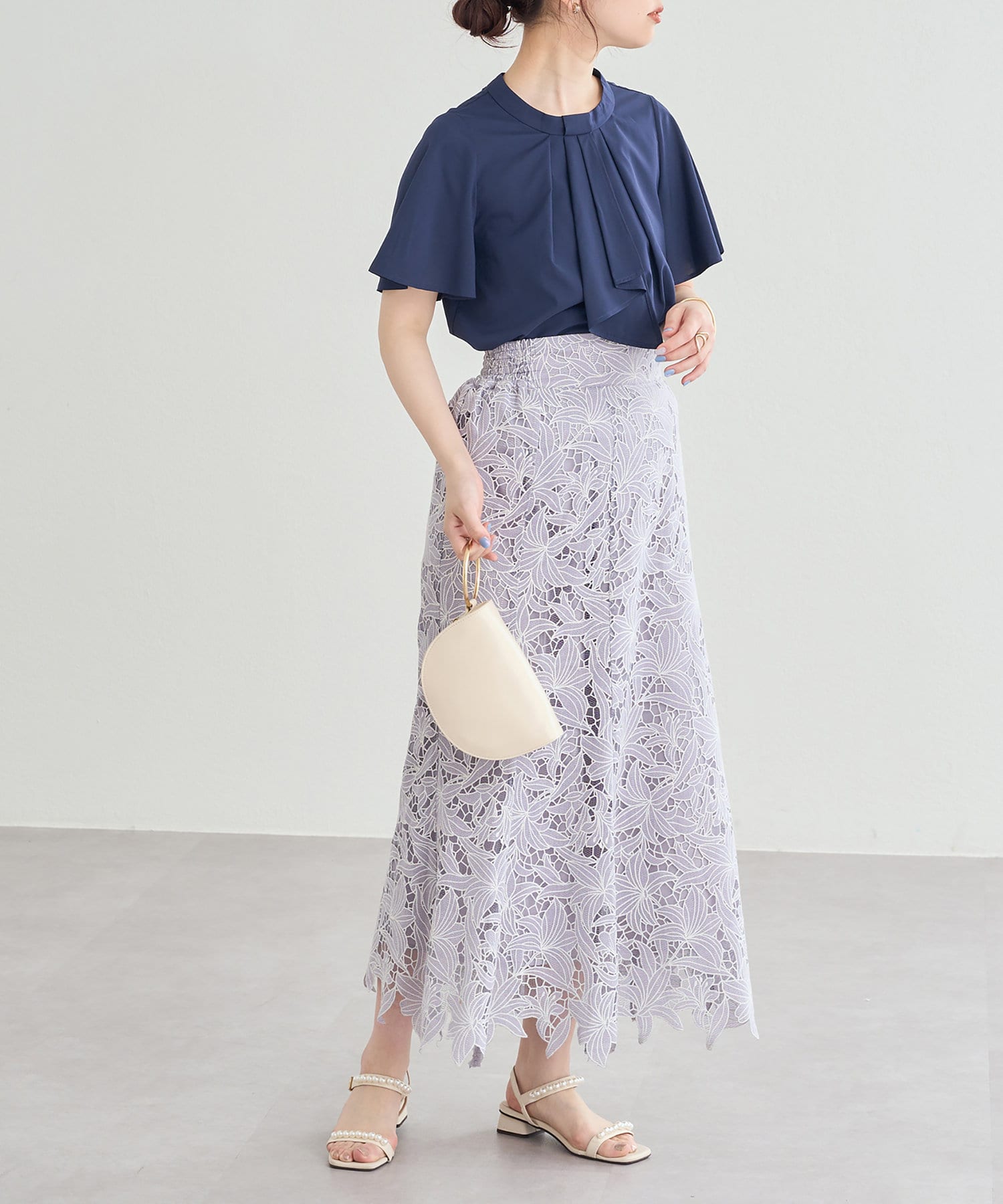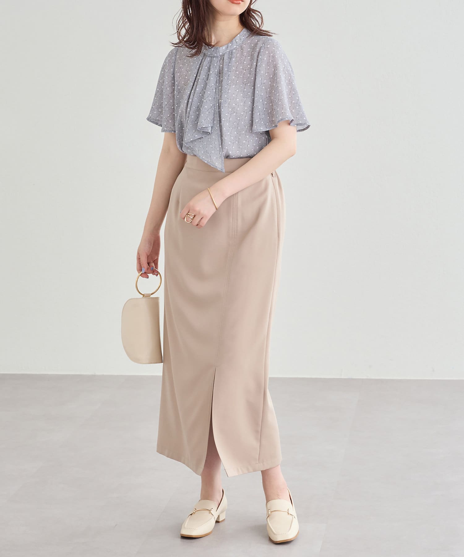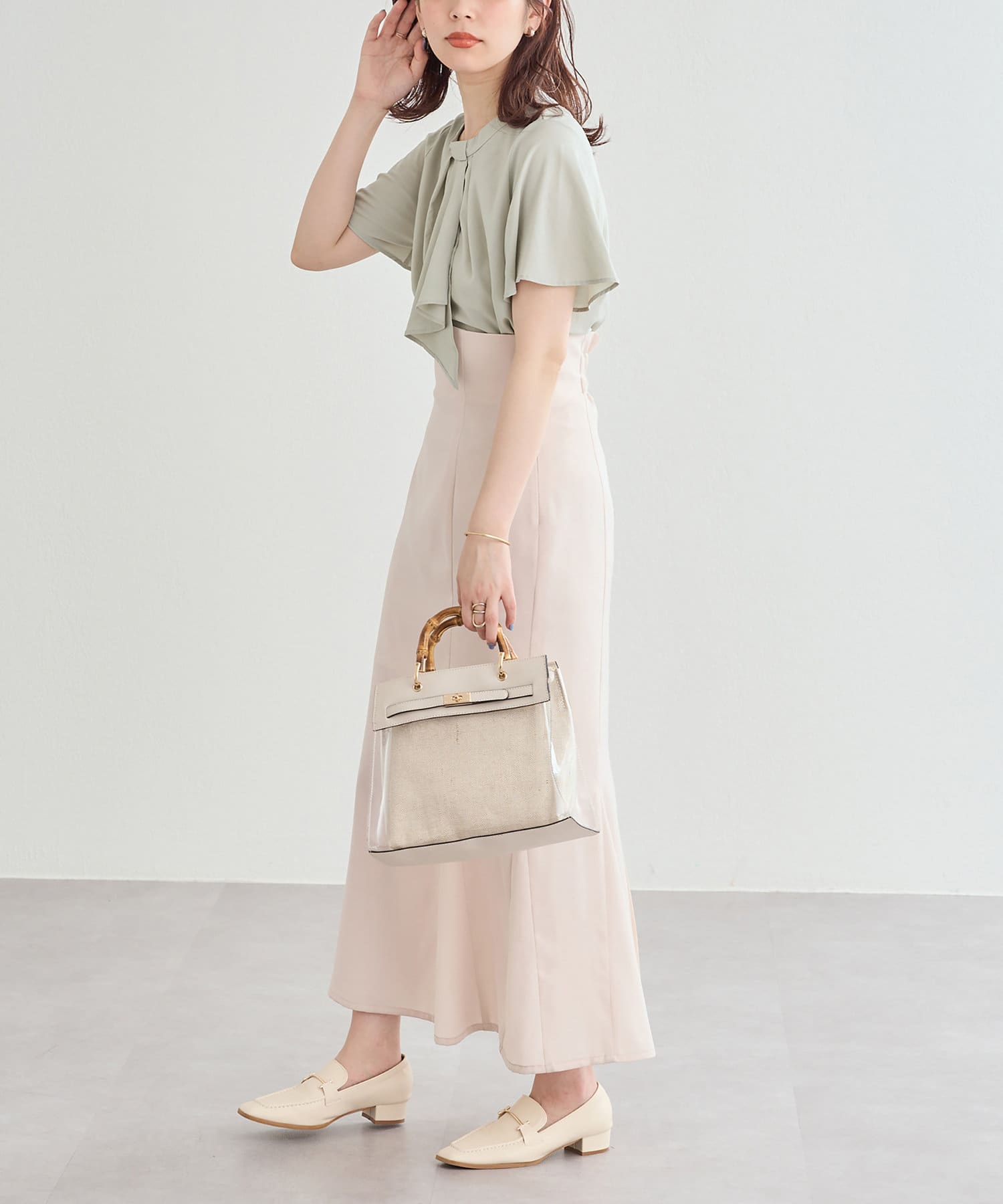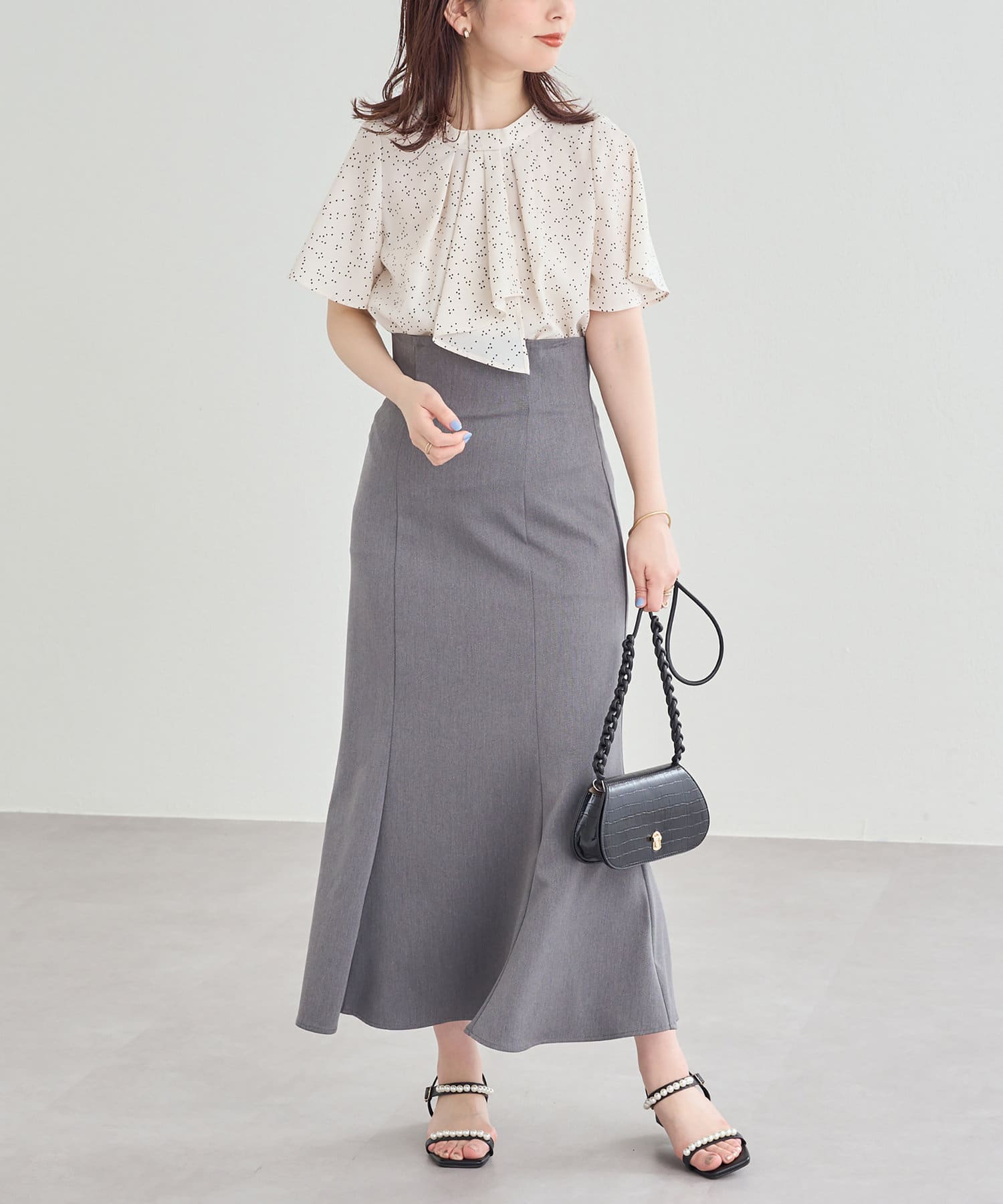 マーメイドスカートやトレンドのIラインのスカートにウエストインして頂くと、