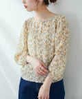 繊細さとヘルシーなシルエットで魅せる 袖タック花柄プリーツブラウス