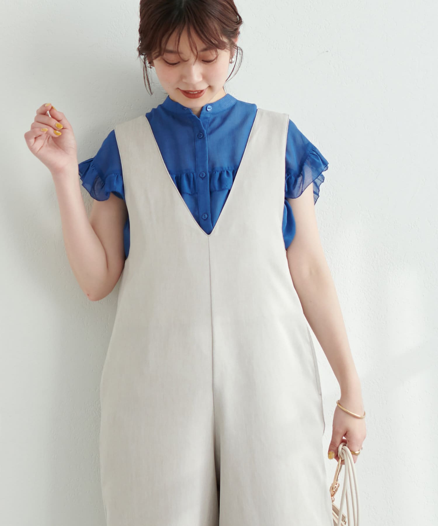 キャミワンピースやサロペットのインナーとしても、ポイント見えで重宝します。