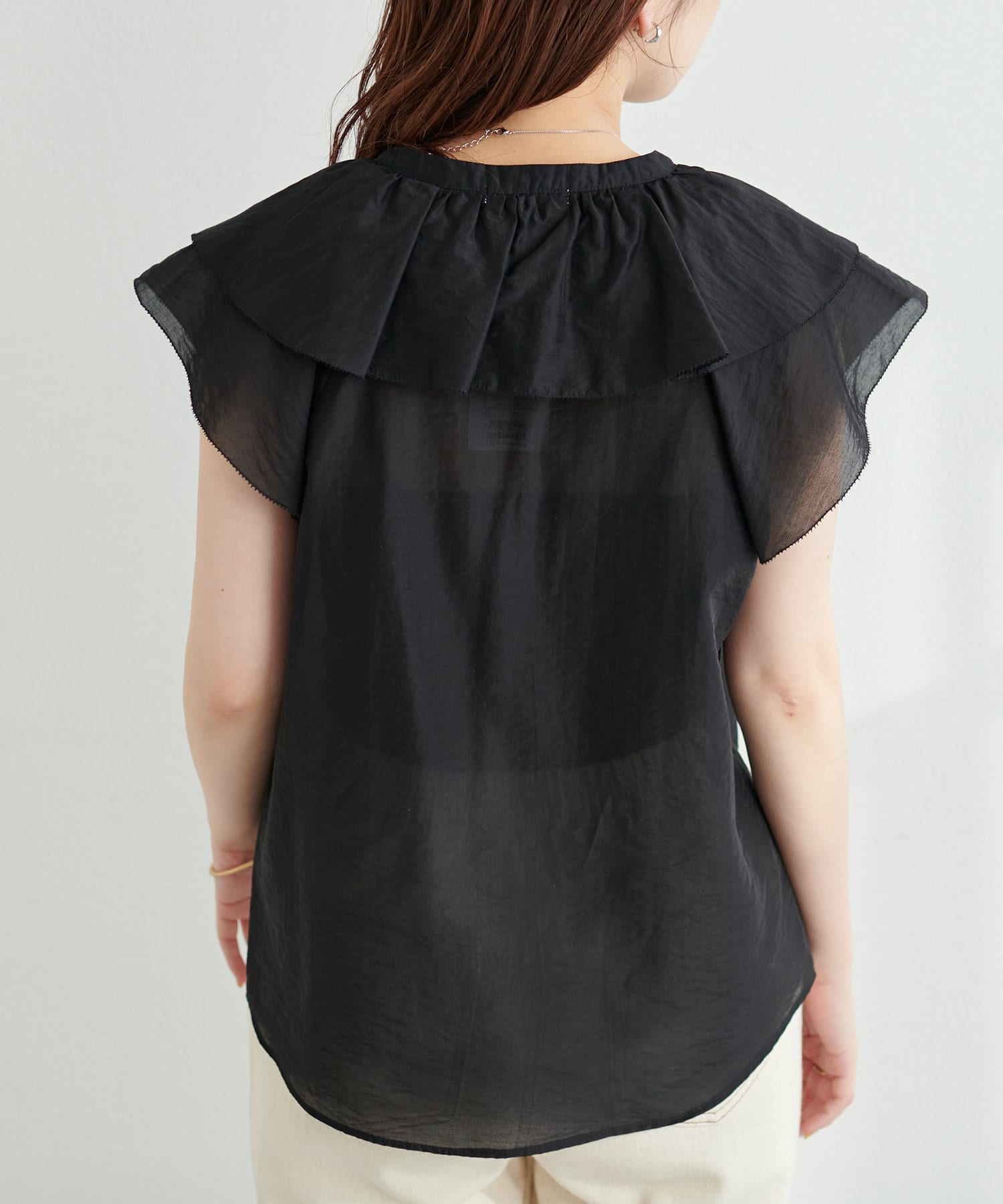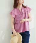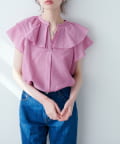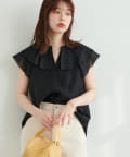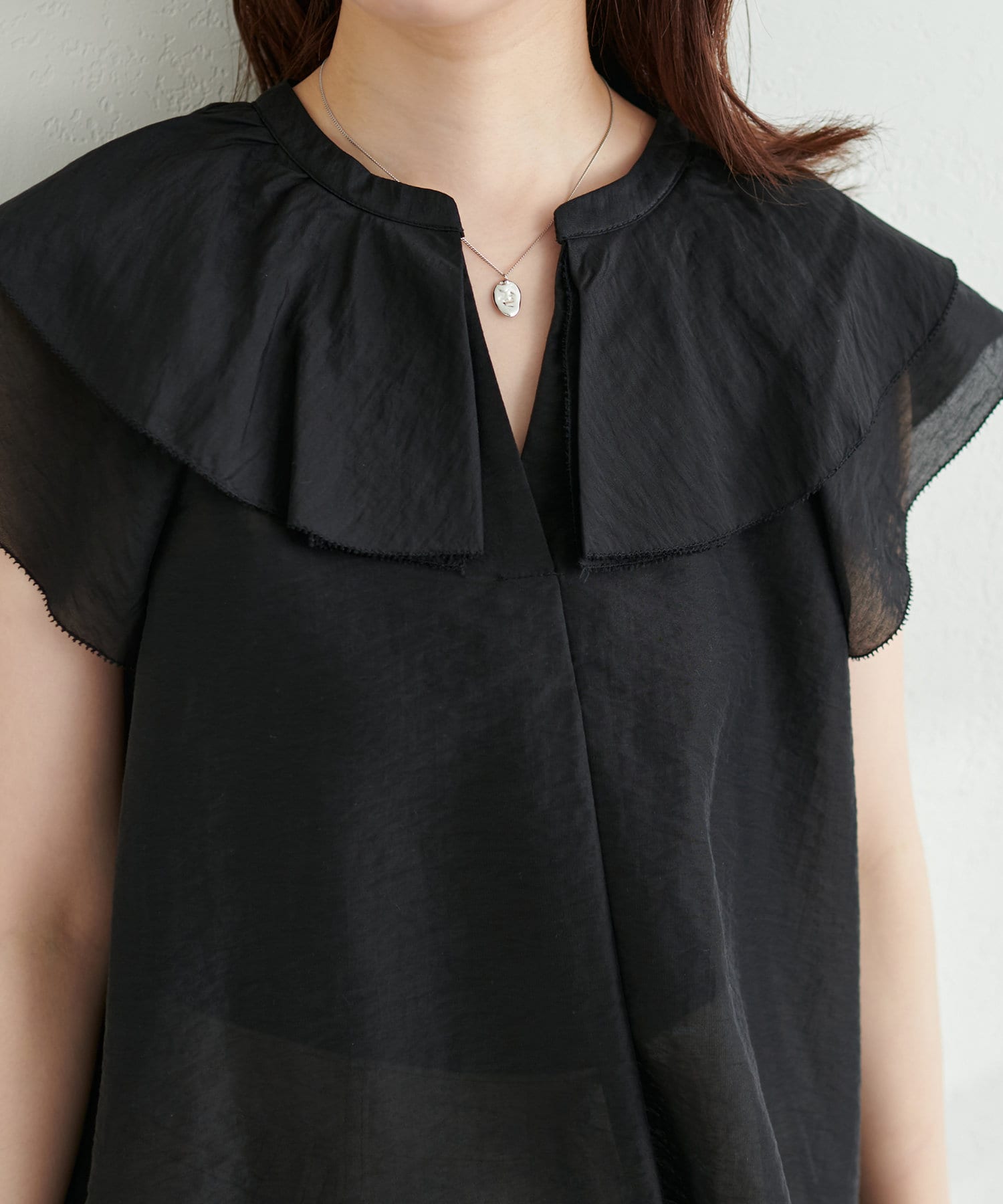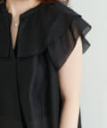 大人ガーリーに決まる タックフリル衿スキッパーあきブラウス