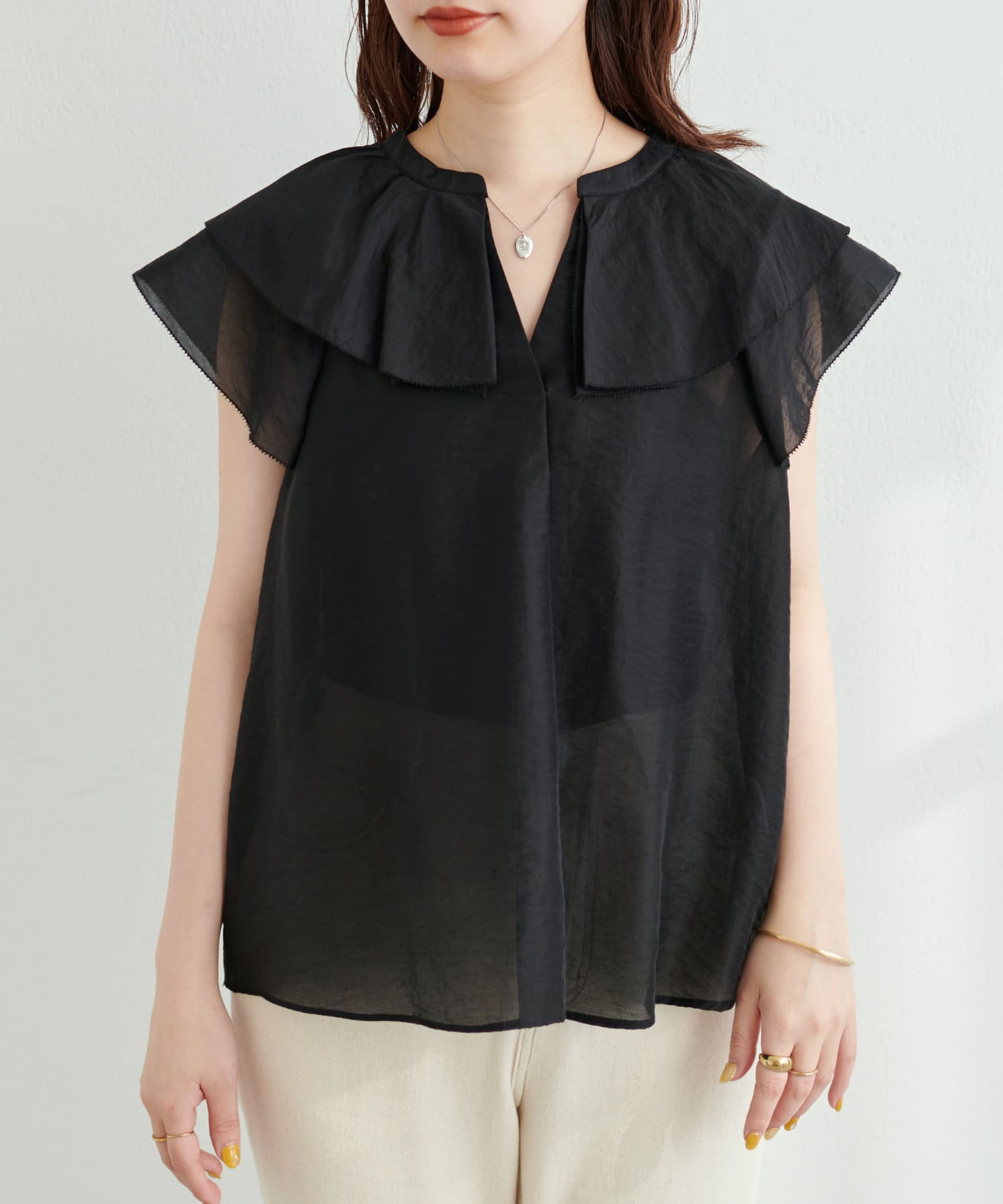 上品な質感とほんのりシアー感が旬なムードを演出してくれる、大人ガーリーな注目のブラウスが登場。