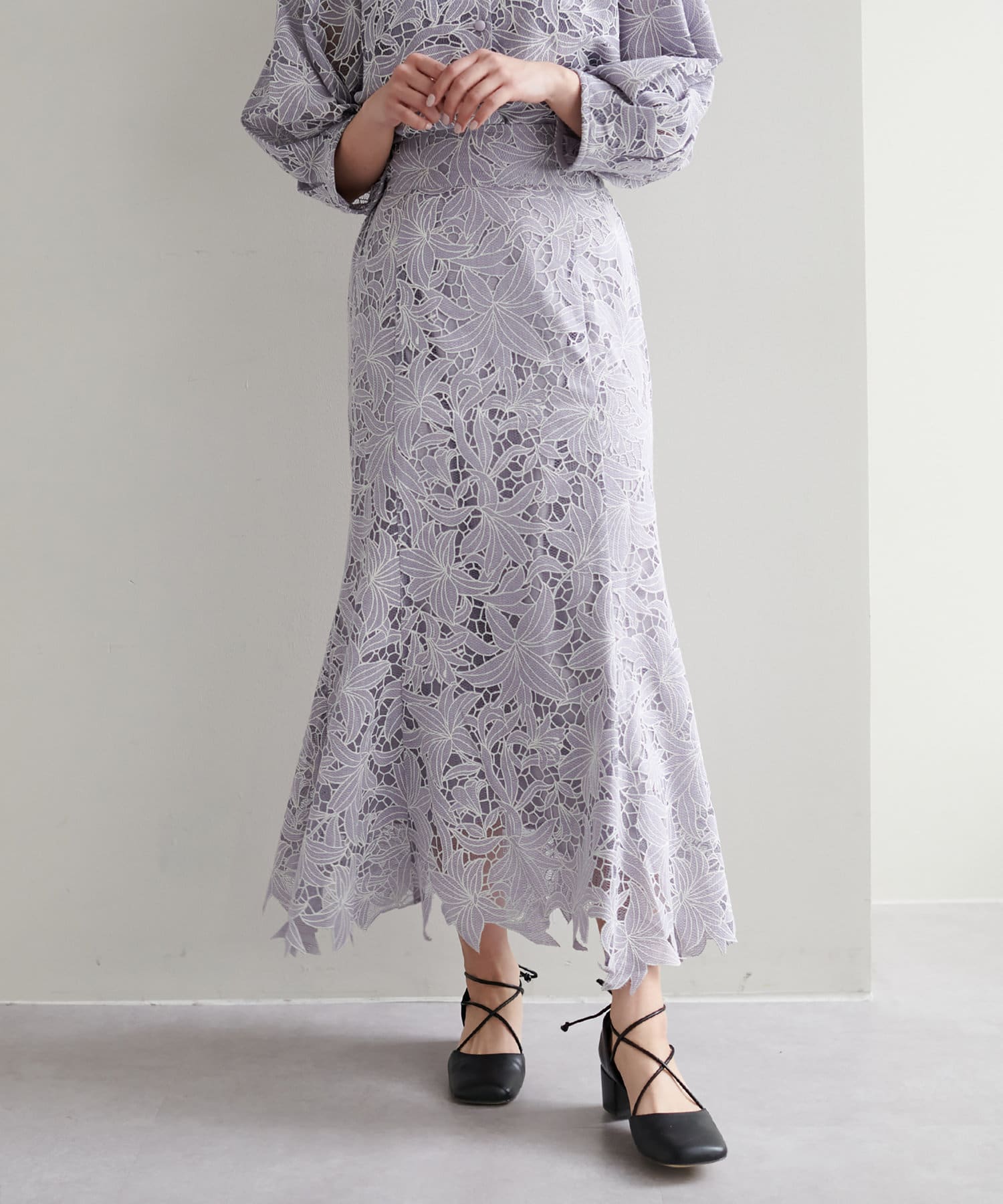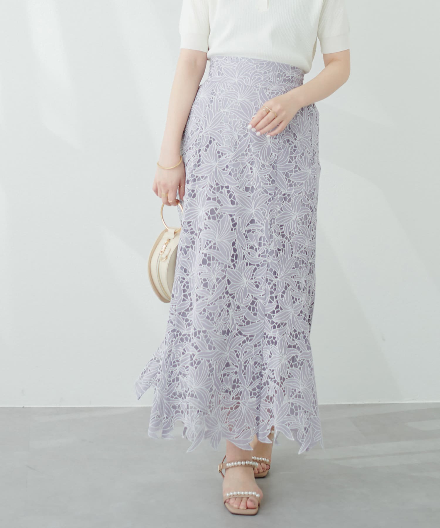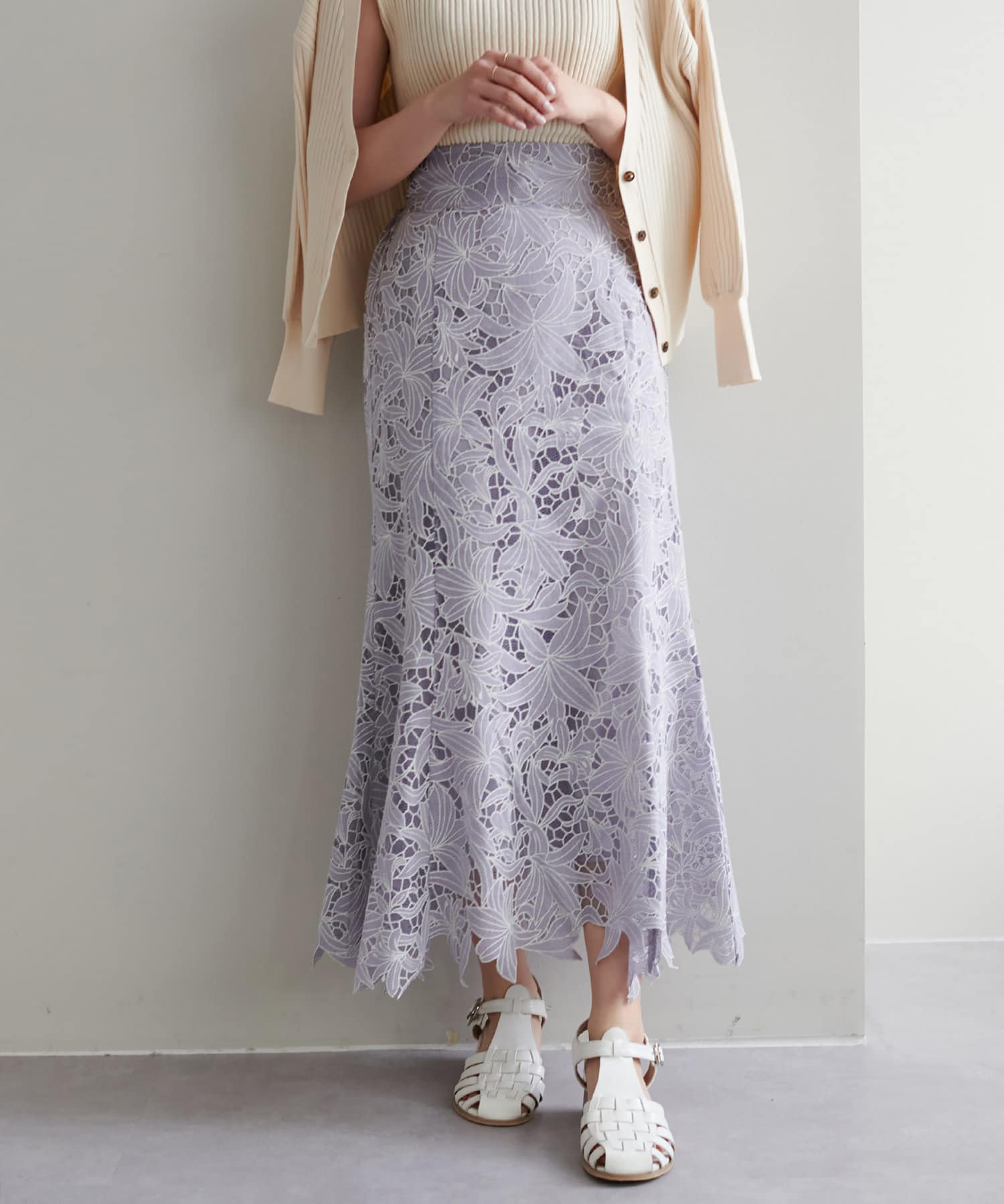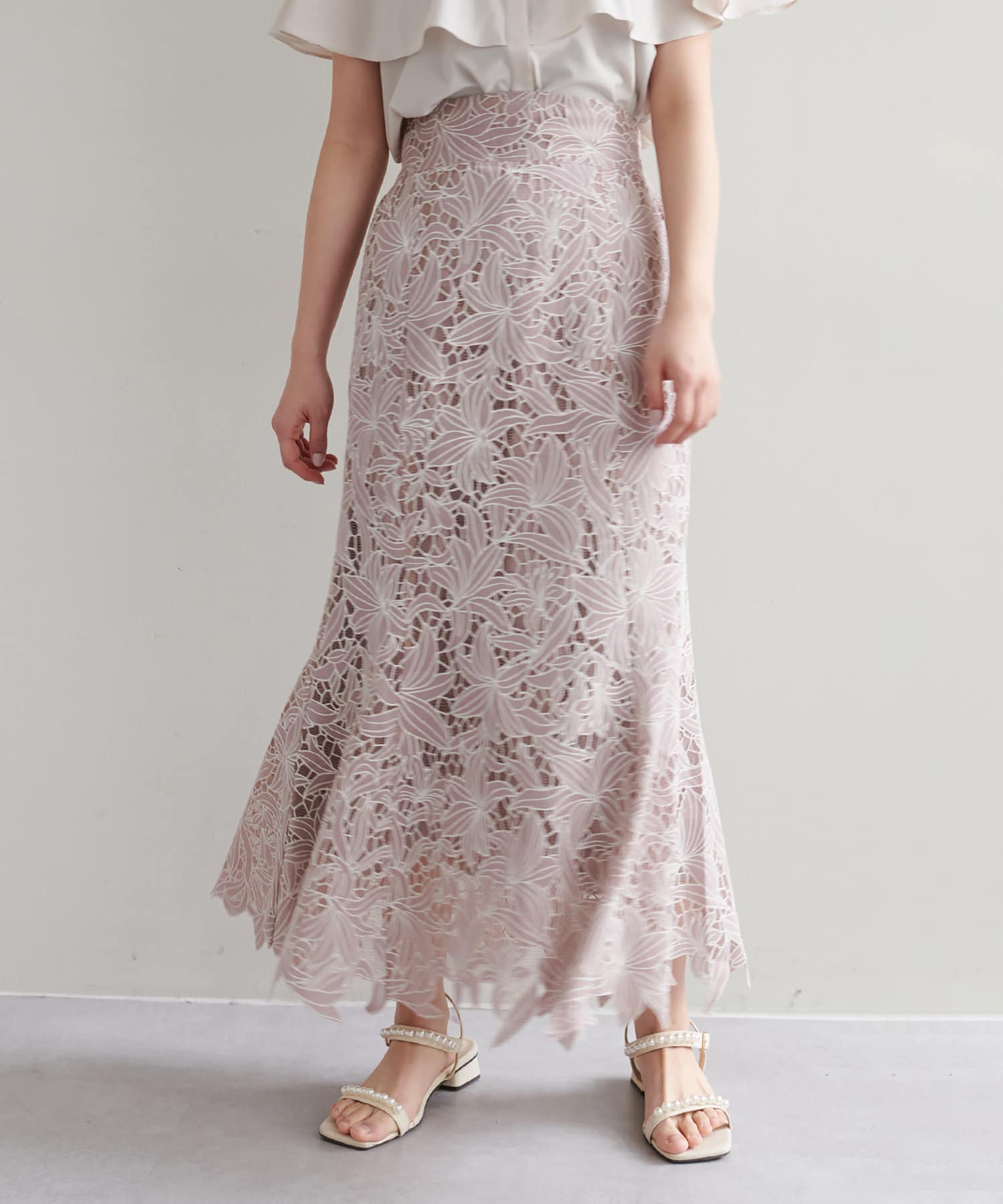 セットアップ着用可/オケージョンにも◎ 配色スカラップレーススカート