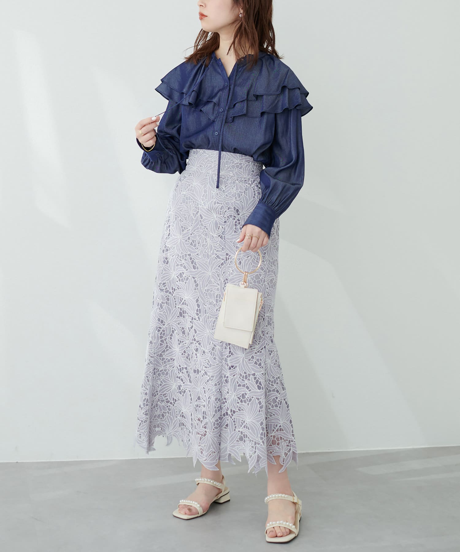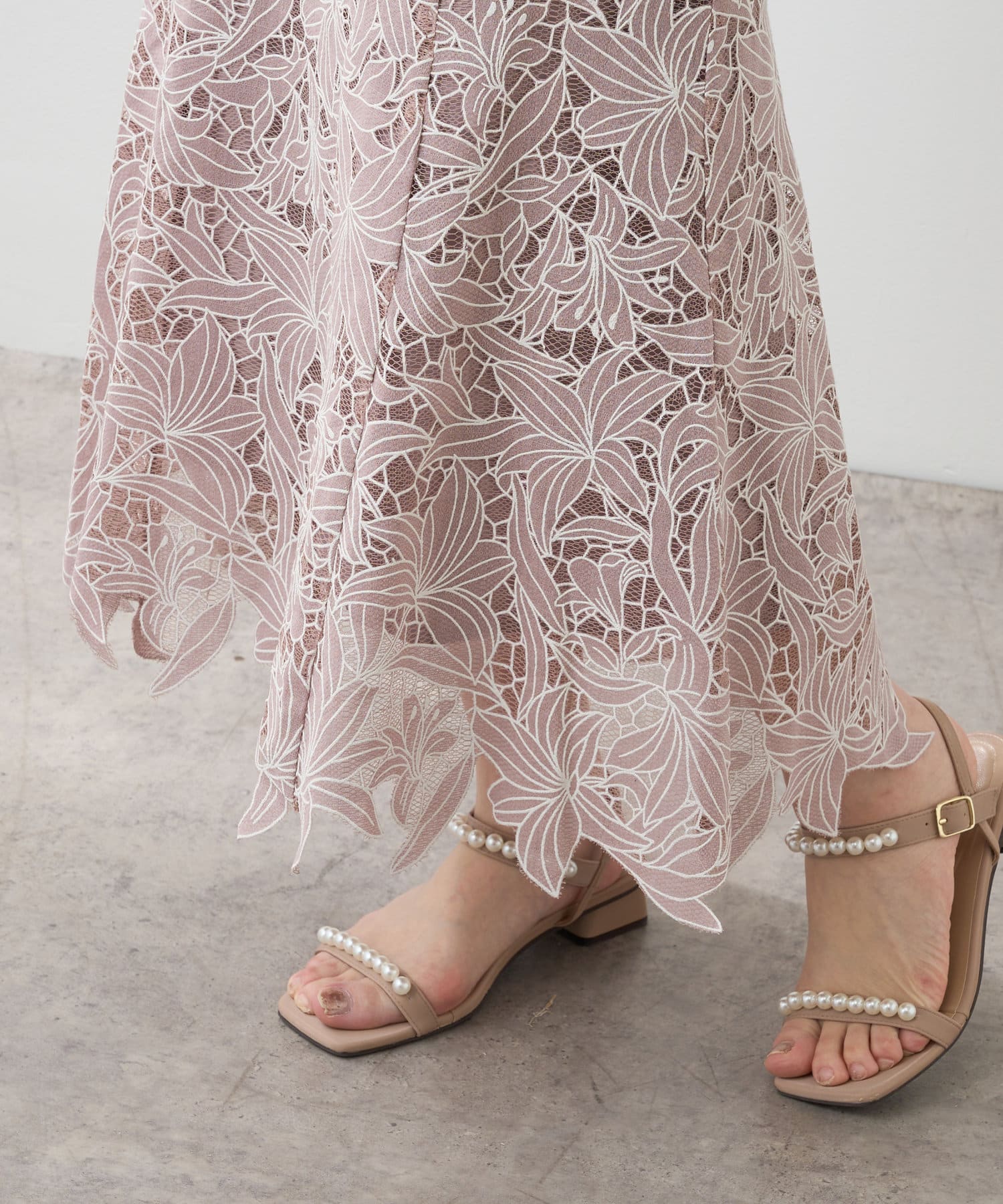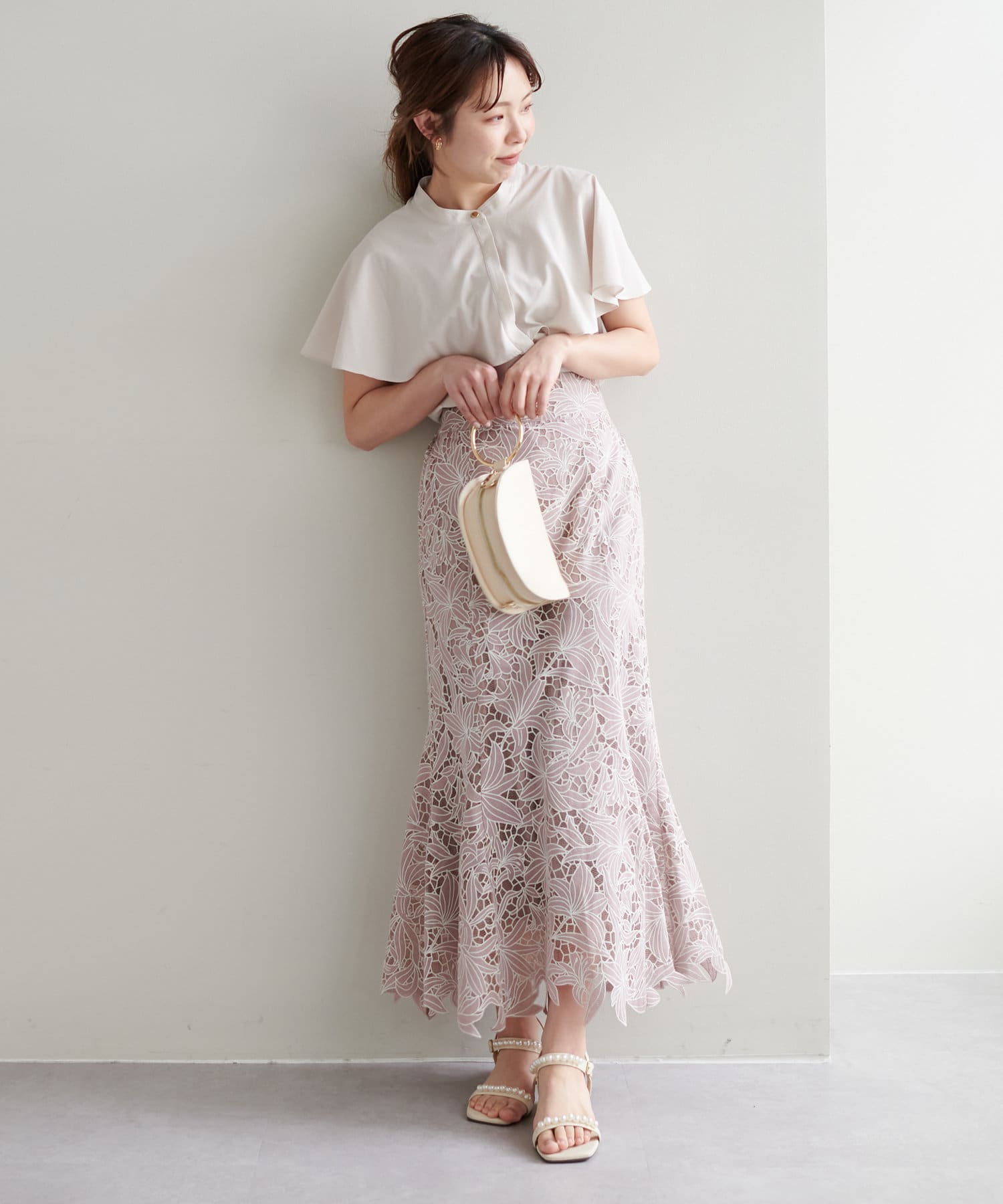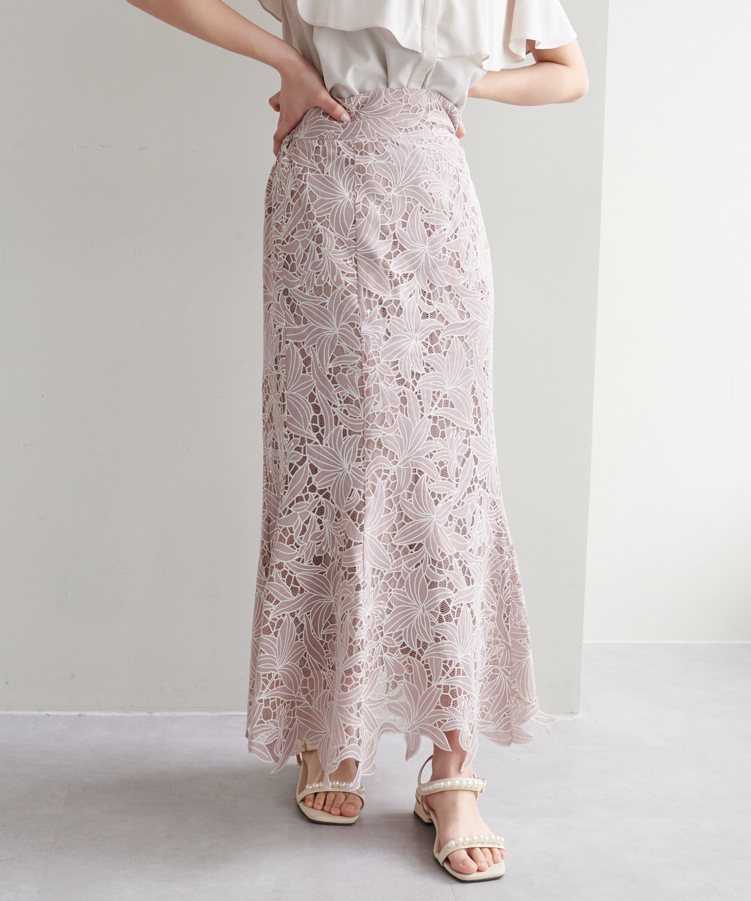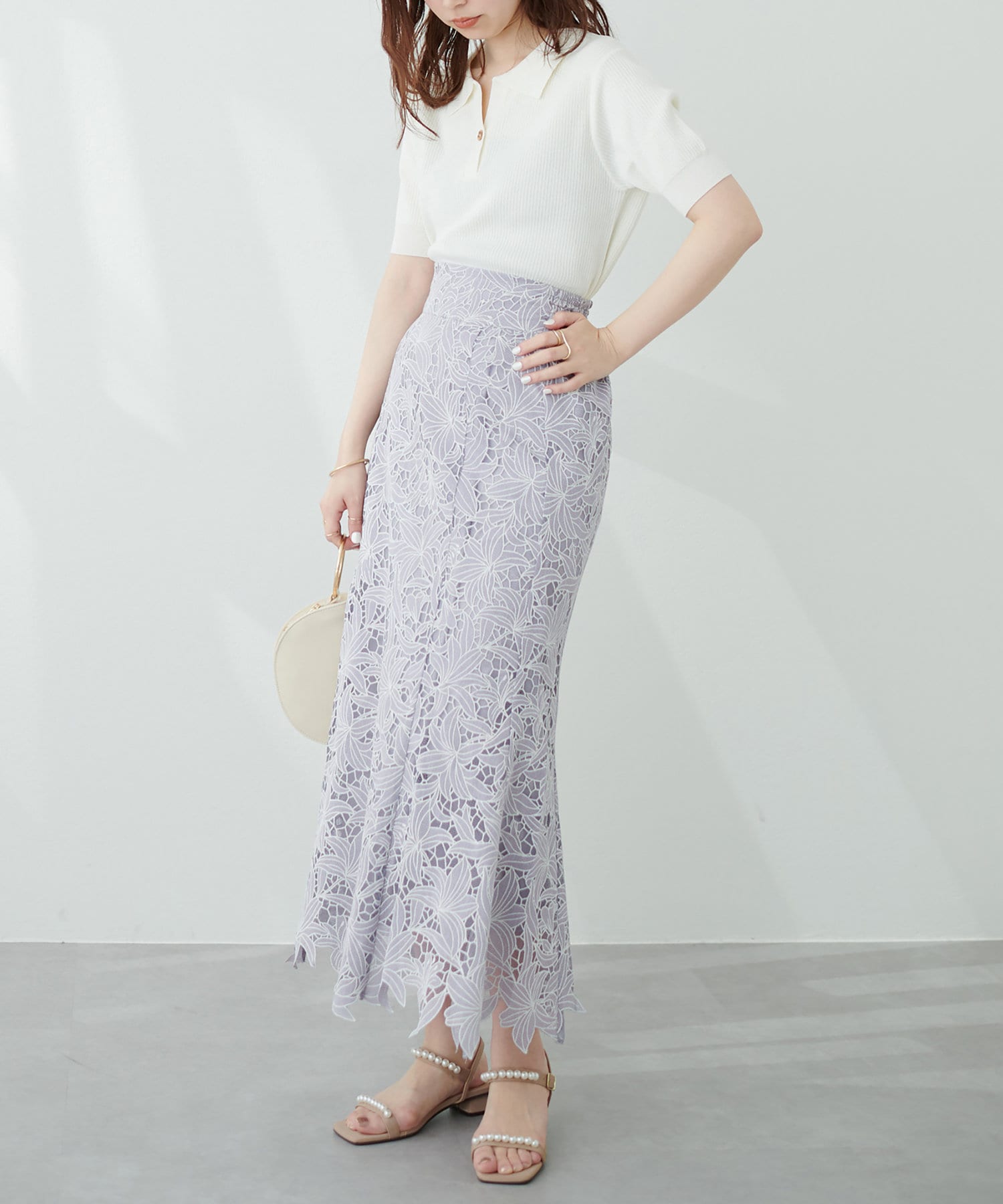 セットアップ着用可/オケージョンにも◎ 配色スカラップレーススカート