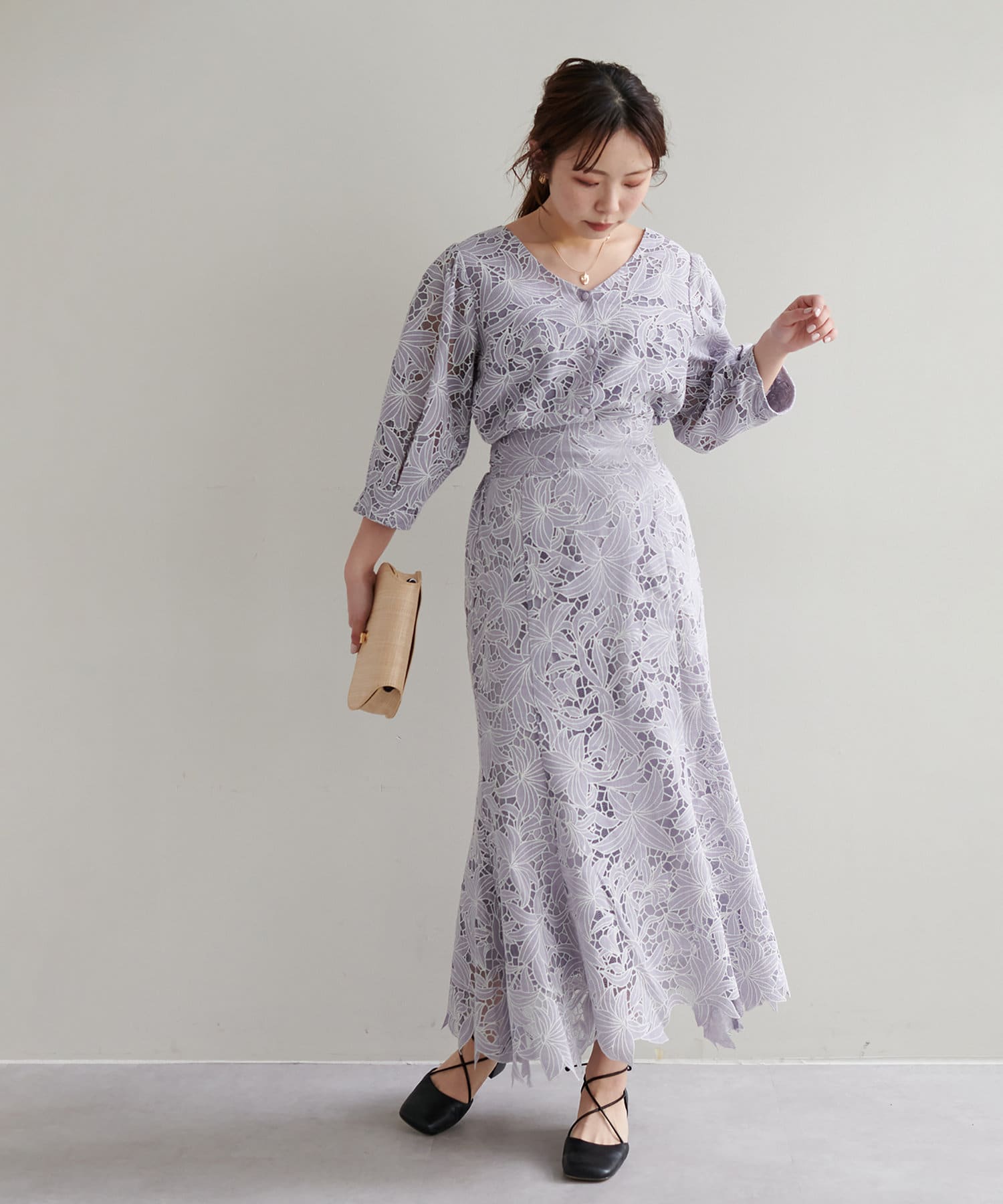 351310060:配色レースタックスリーブブラウスとセットアップでもお召し頂け、オケージョンにもおすすめのアイテムです。