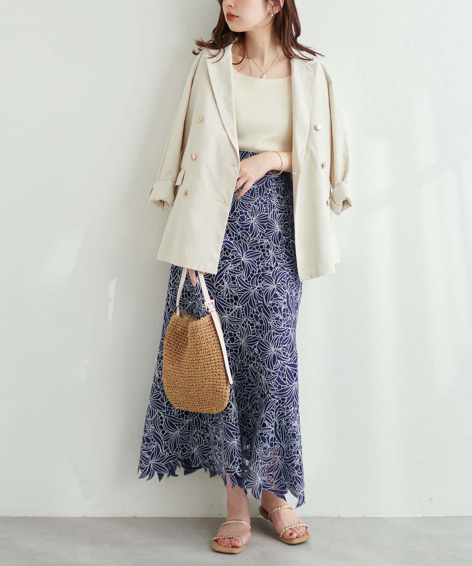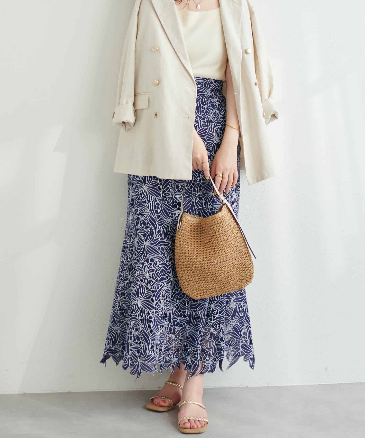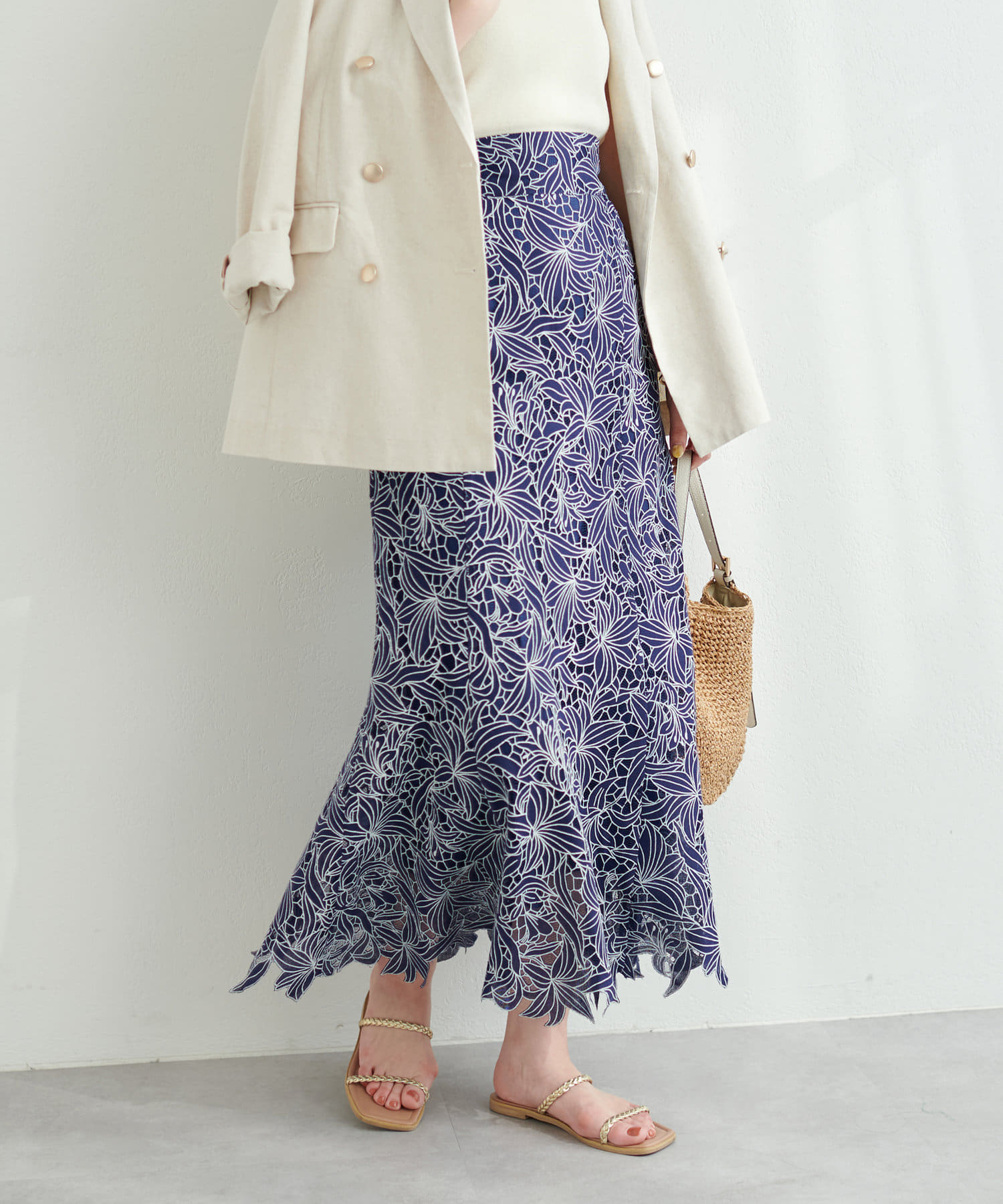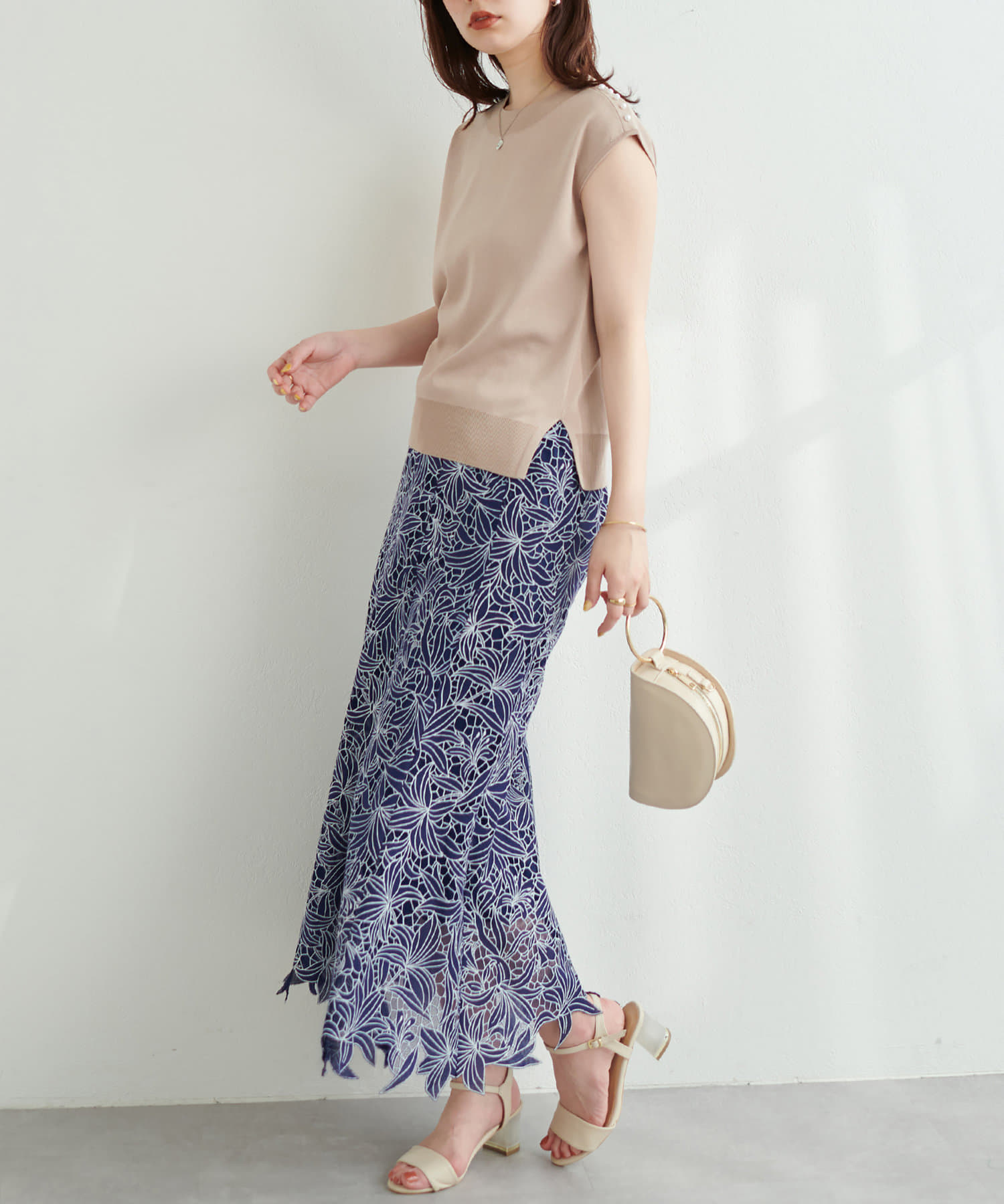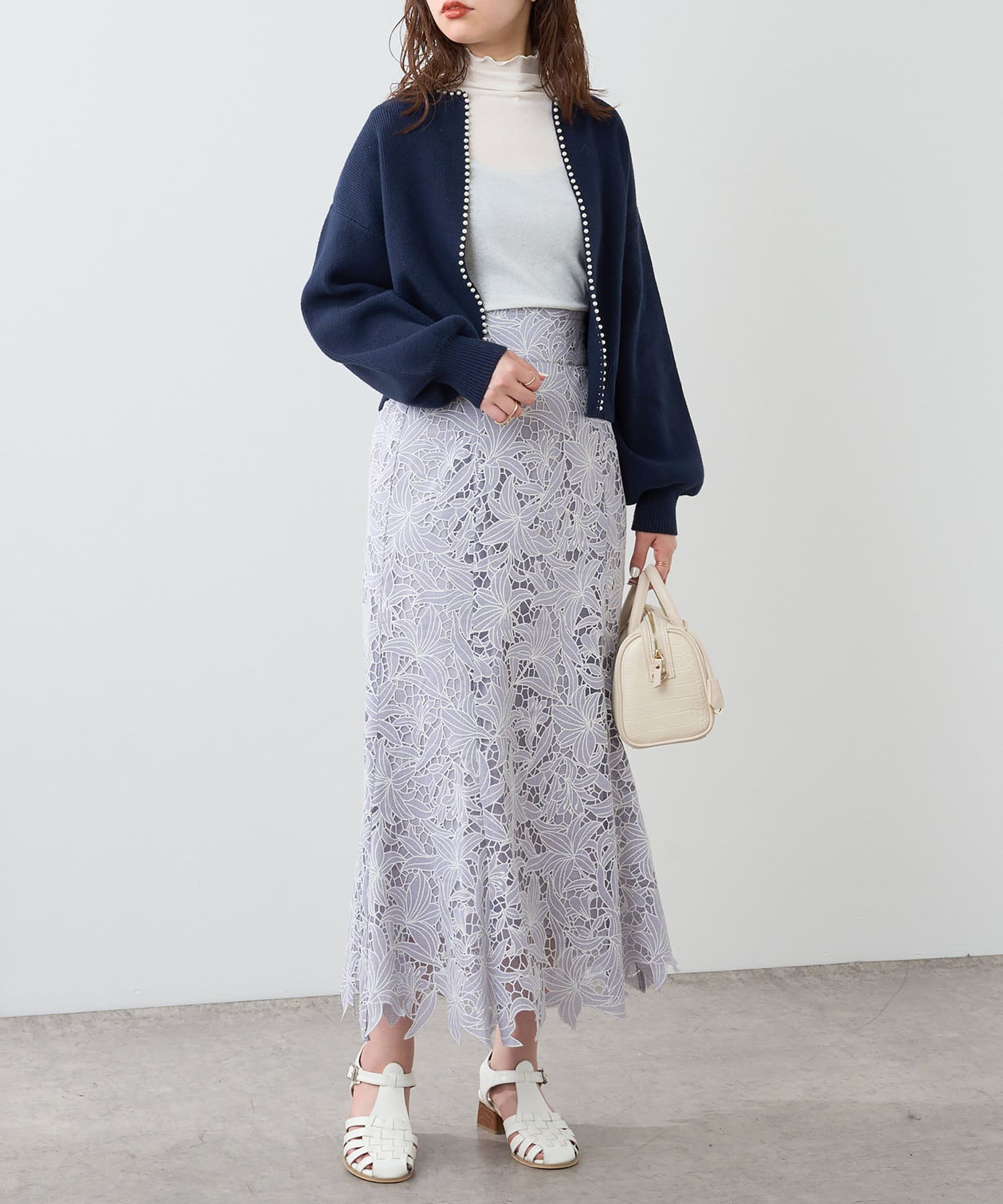 配色使いの上品なモチーフのスカラップレースが目を惹く、今季注目の1品。