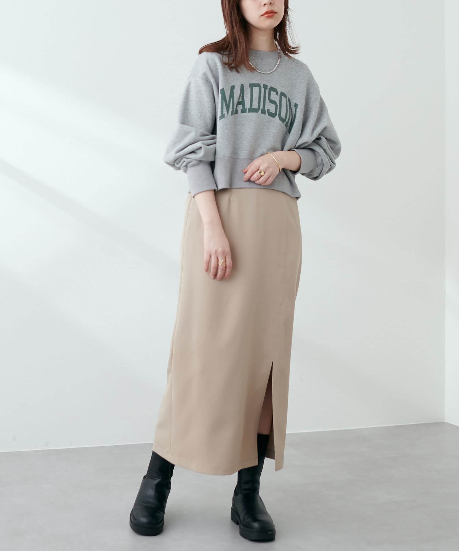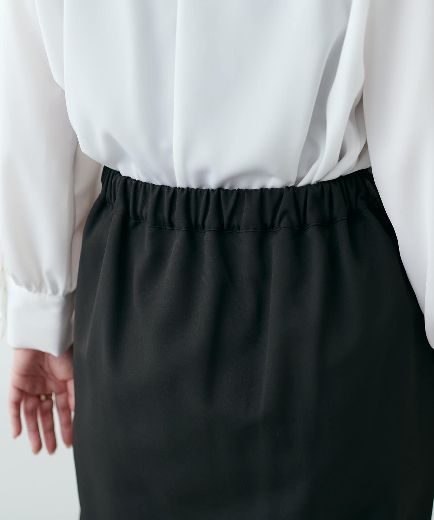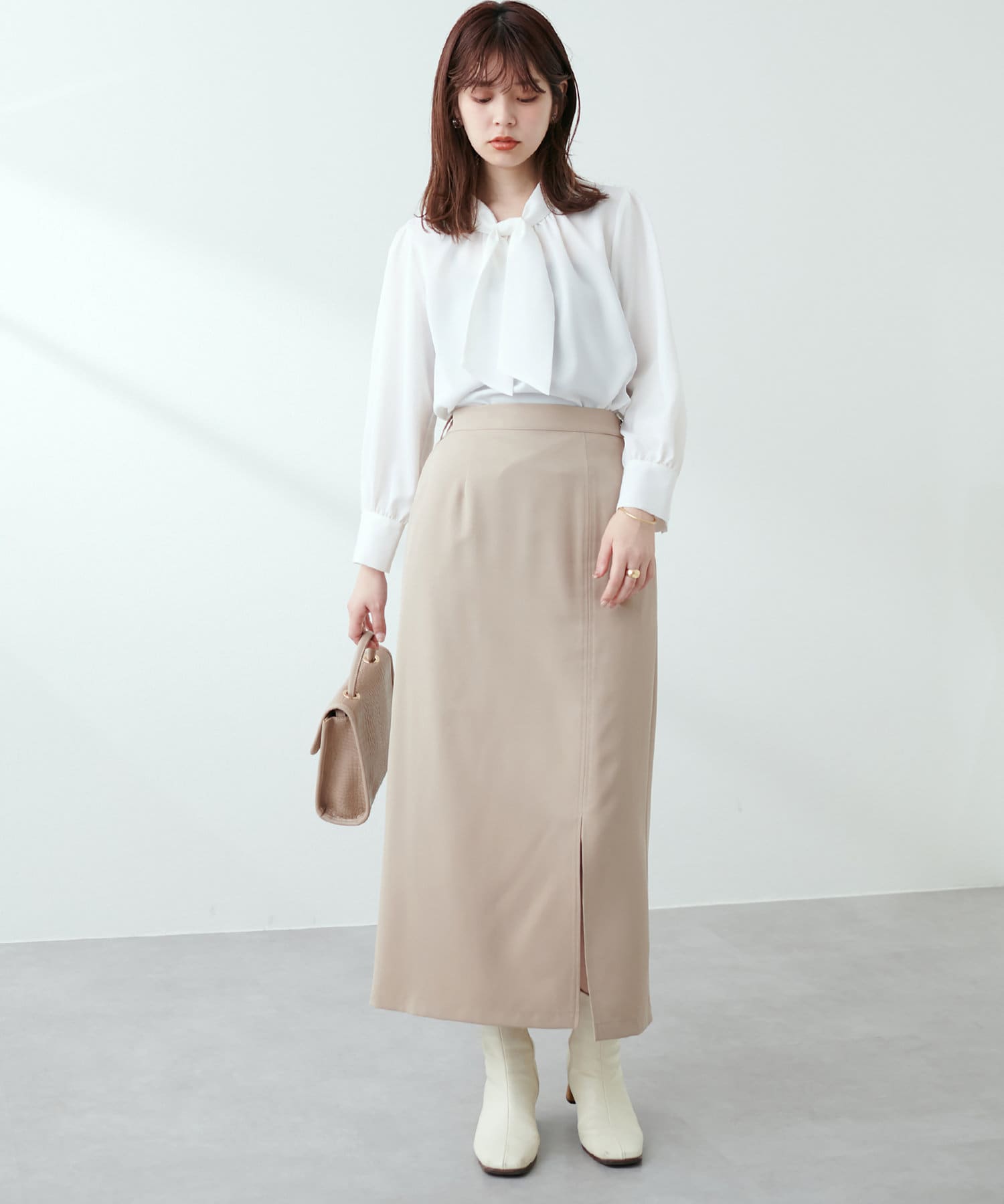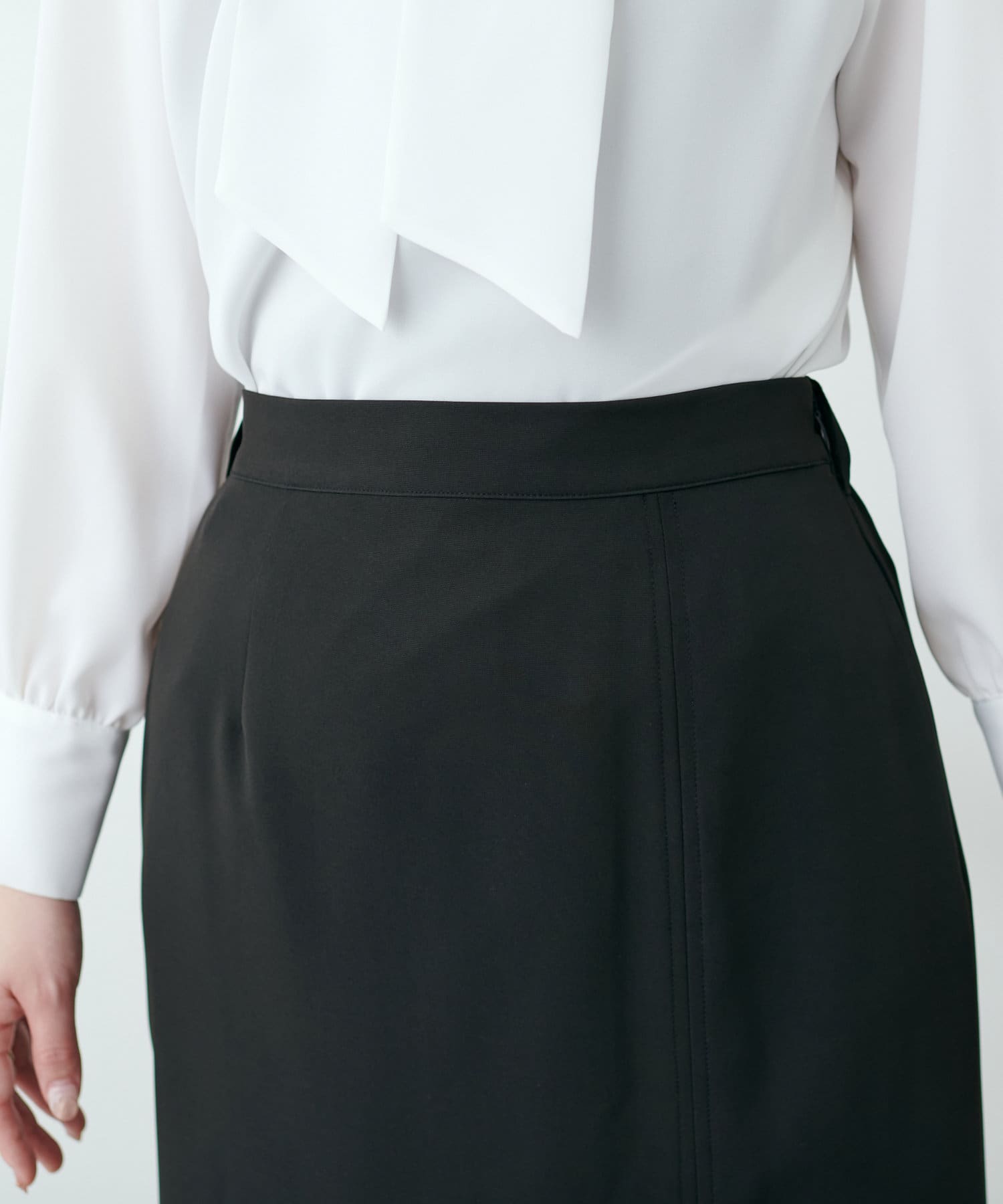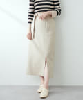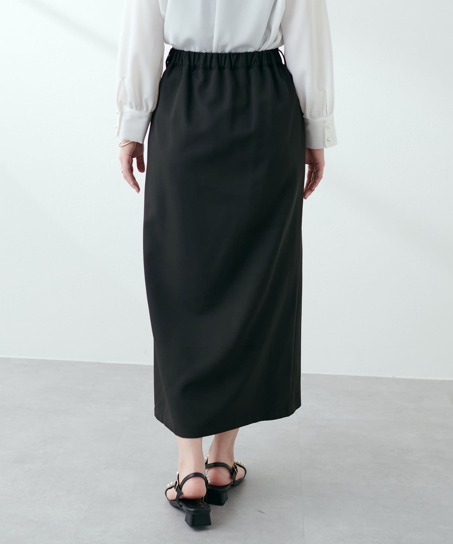 ゆとりのある丈感とややサイドに施したスリットデザインが、脚のラインを美しく見せてくれる1品。