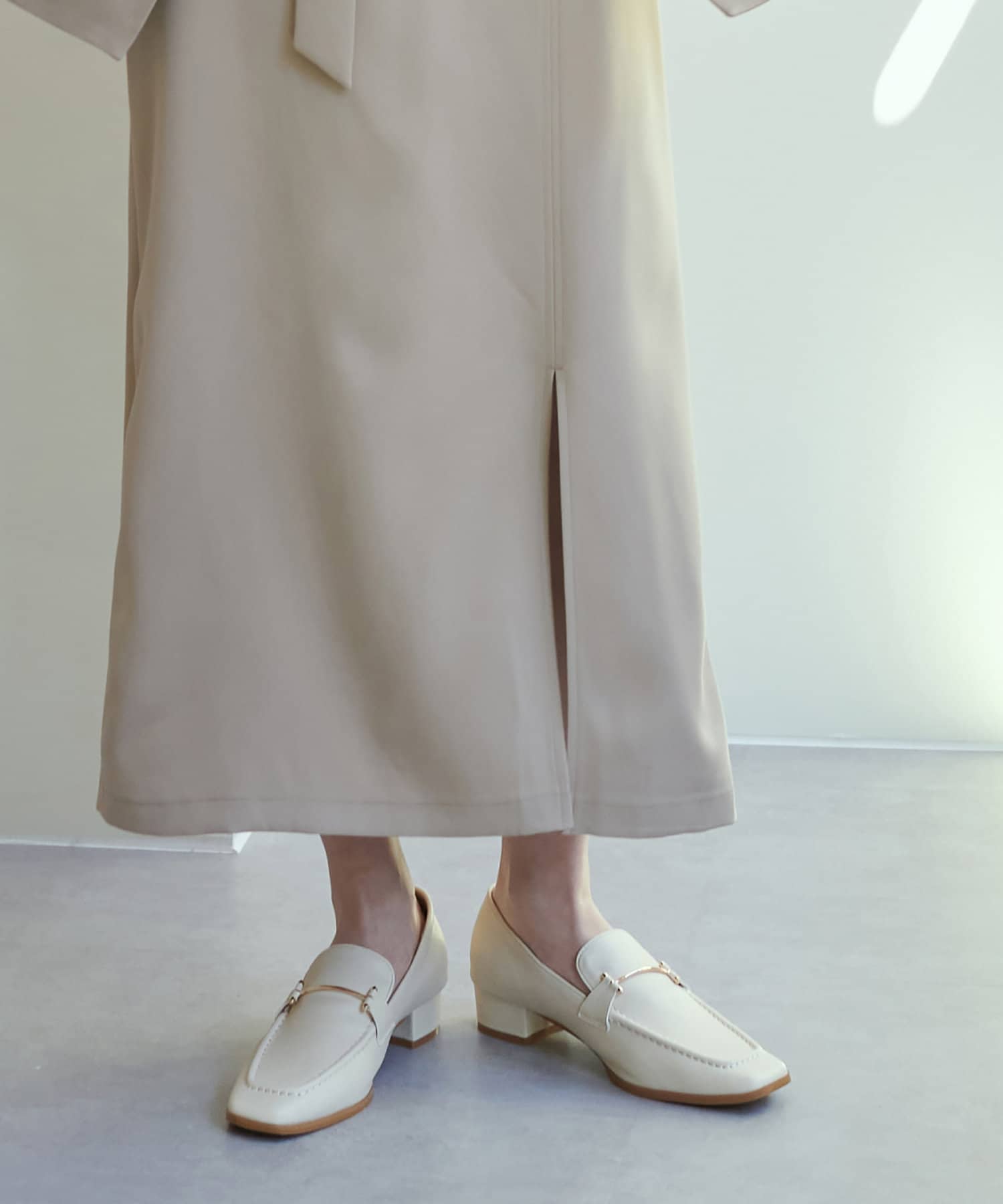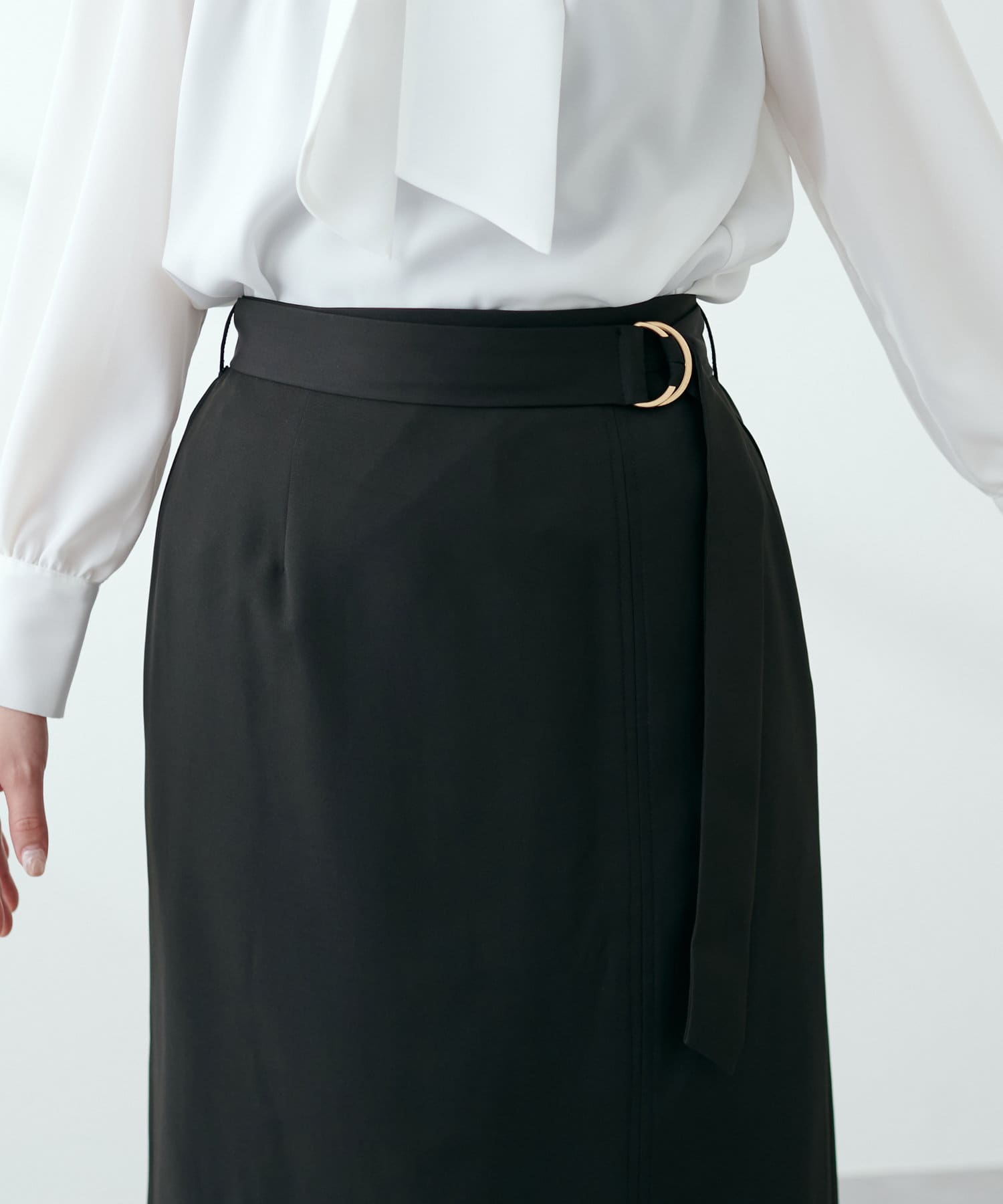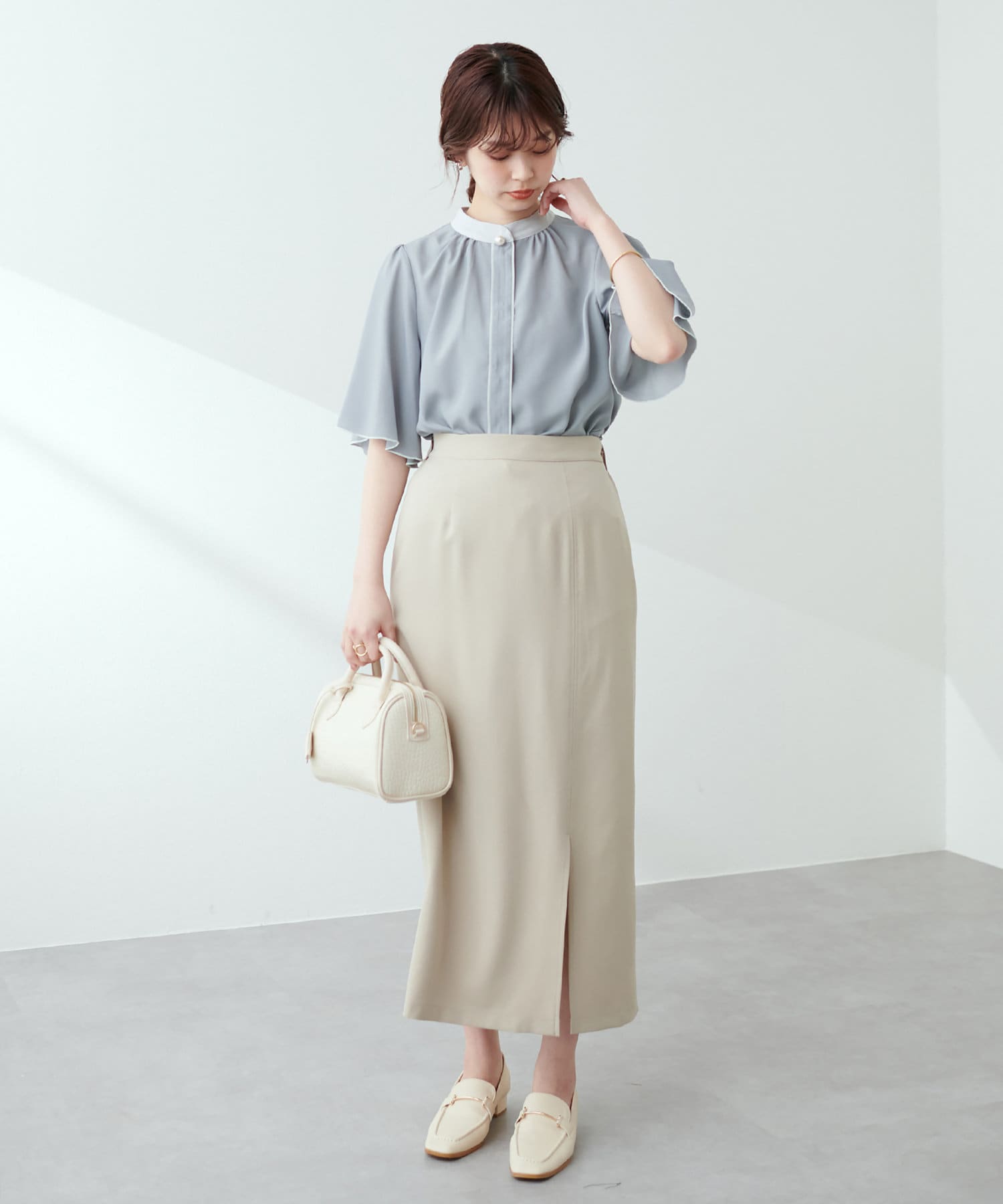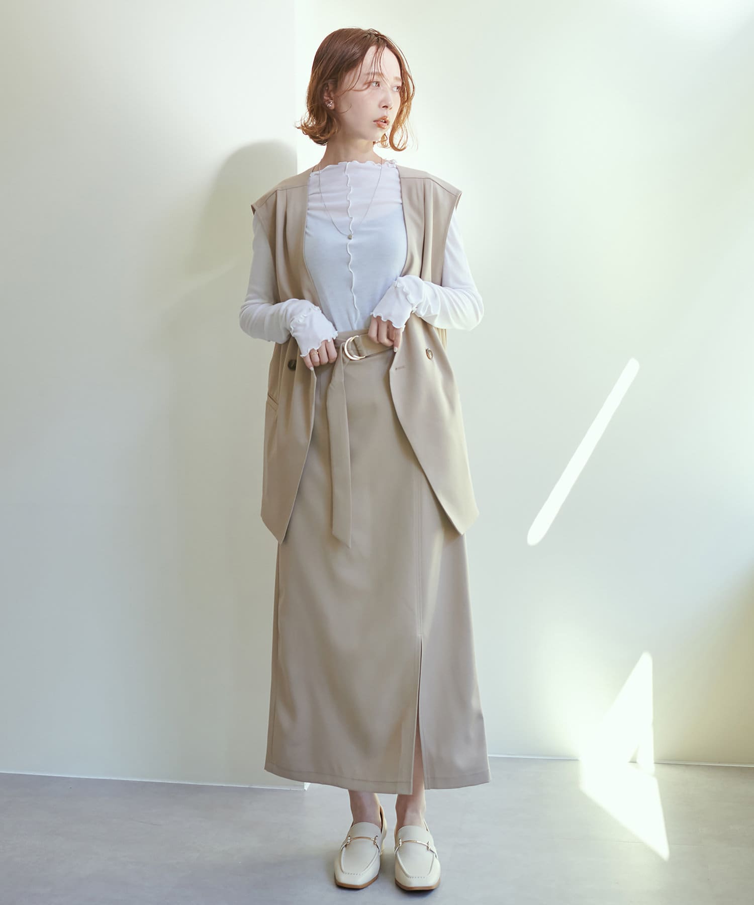 ゆとりのある丈感とややサイドに施したスリットデザインが、脚のラインを美しく見せてくれる1品。