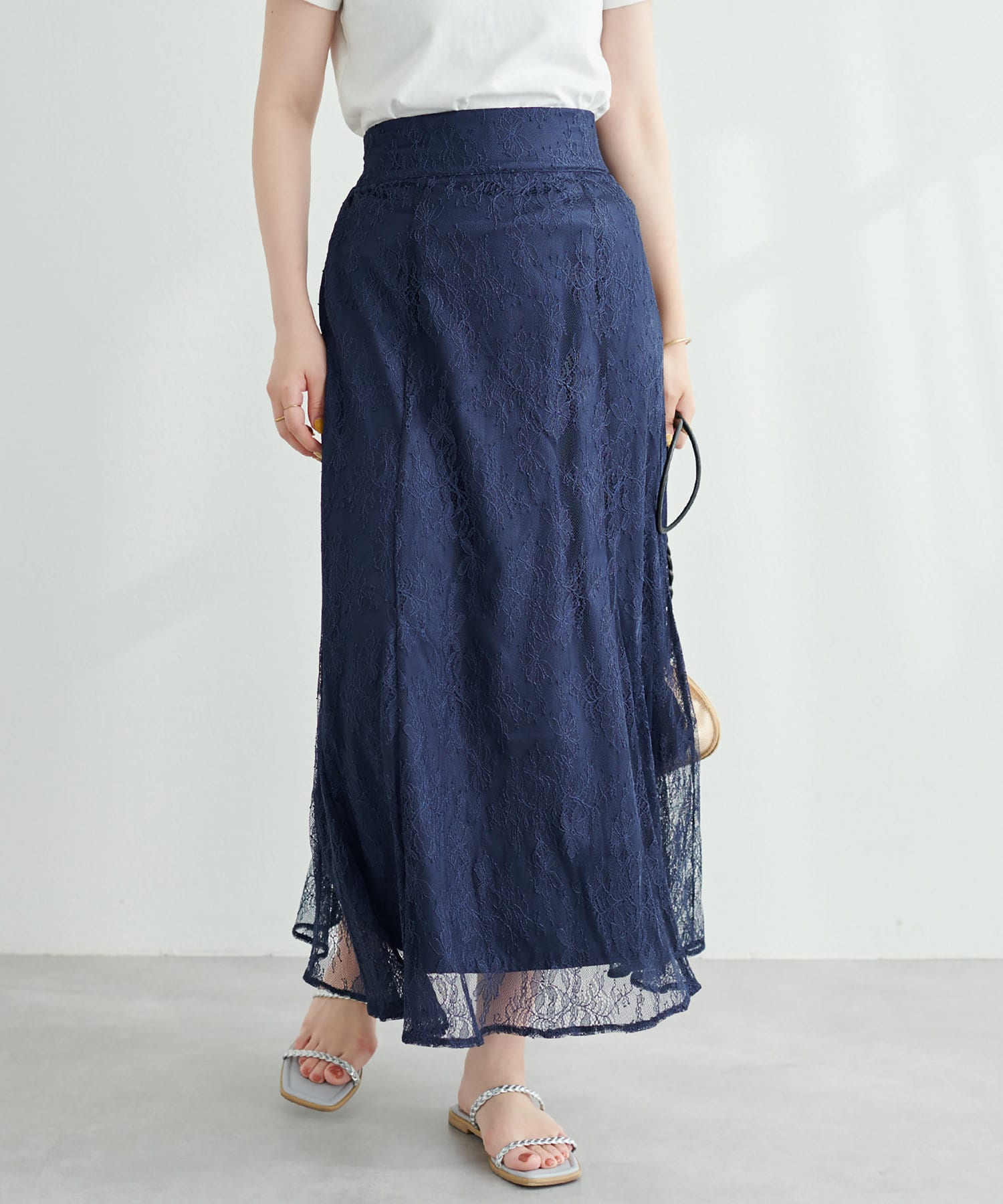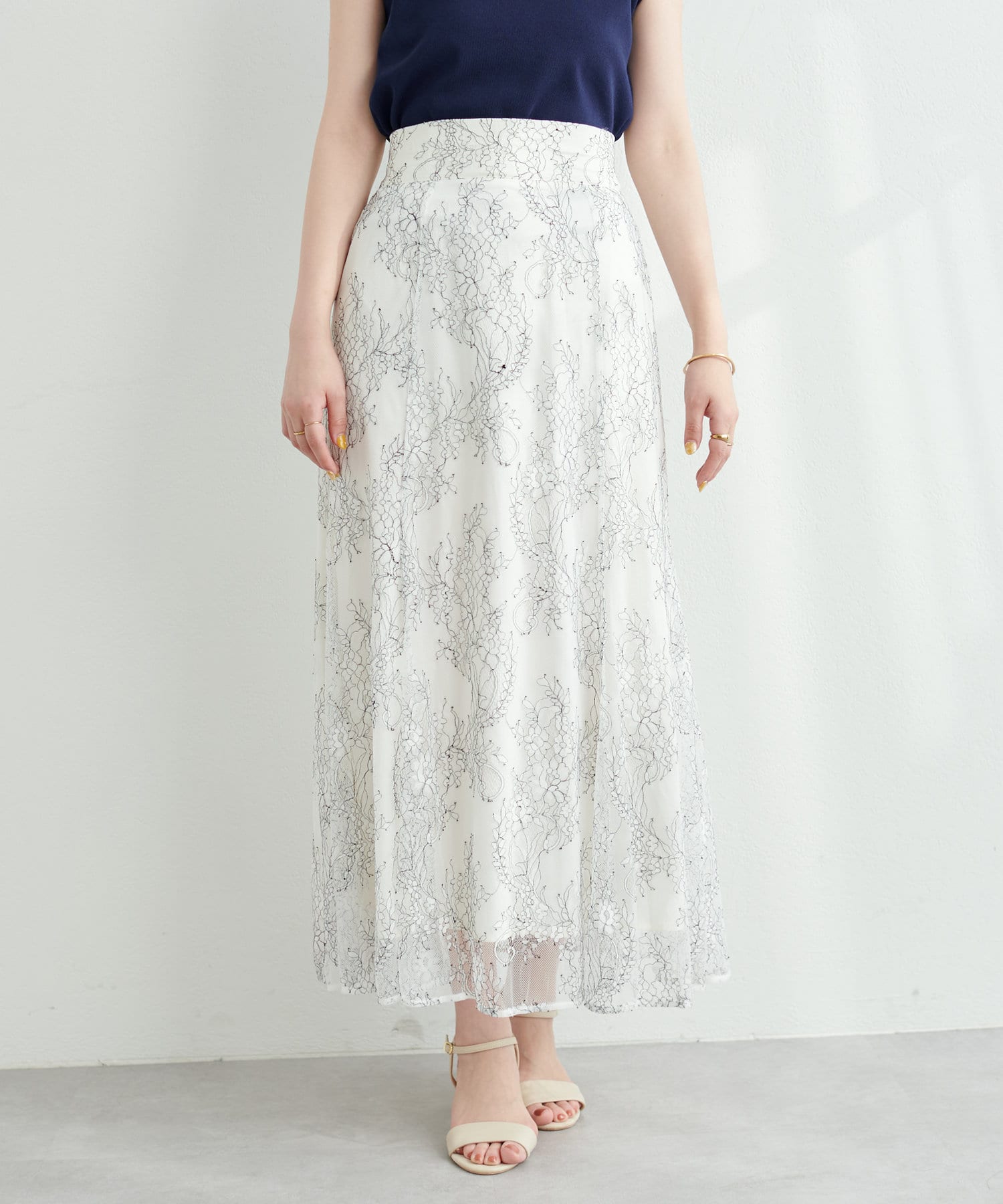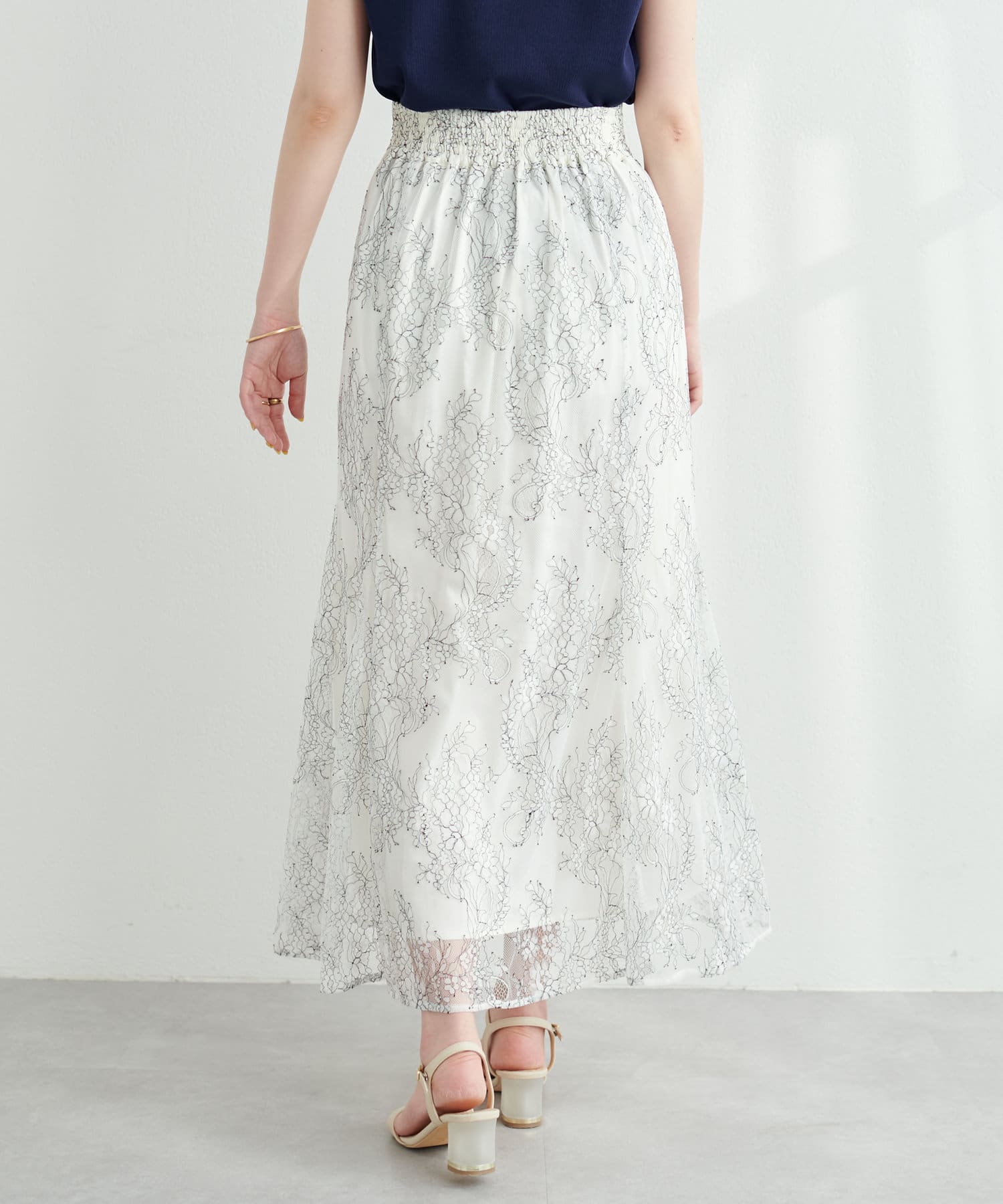 しなやかなスカートの動きと共に裾レースの透け感が上品且つ可愛らしい仕上がりになっています。