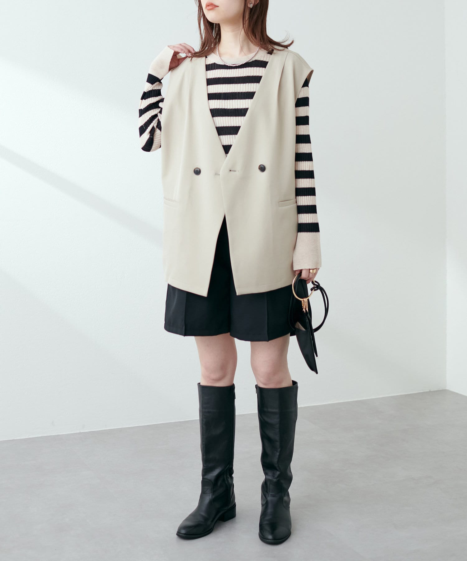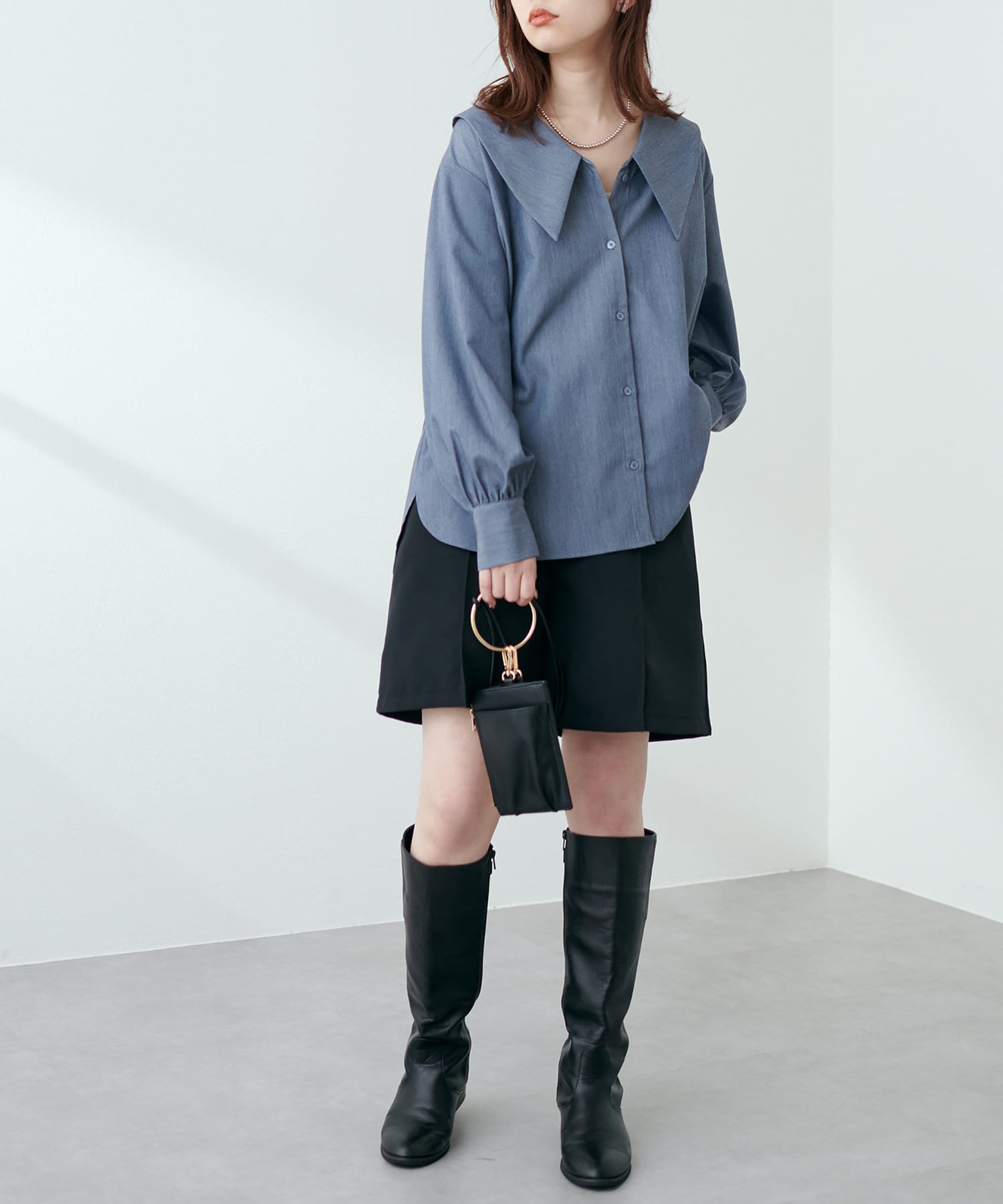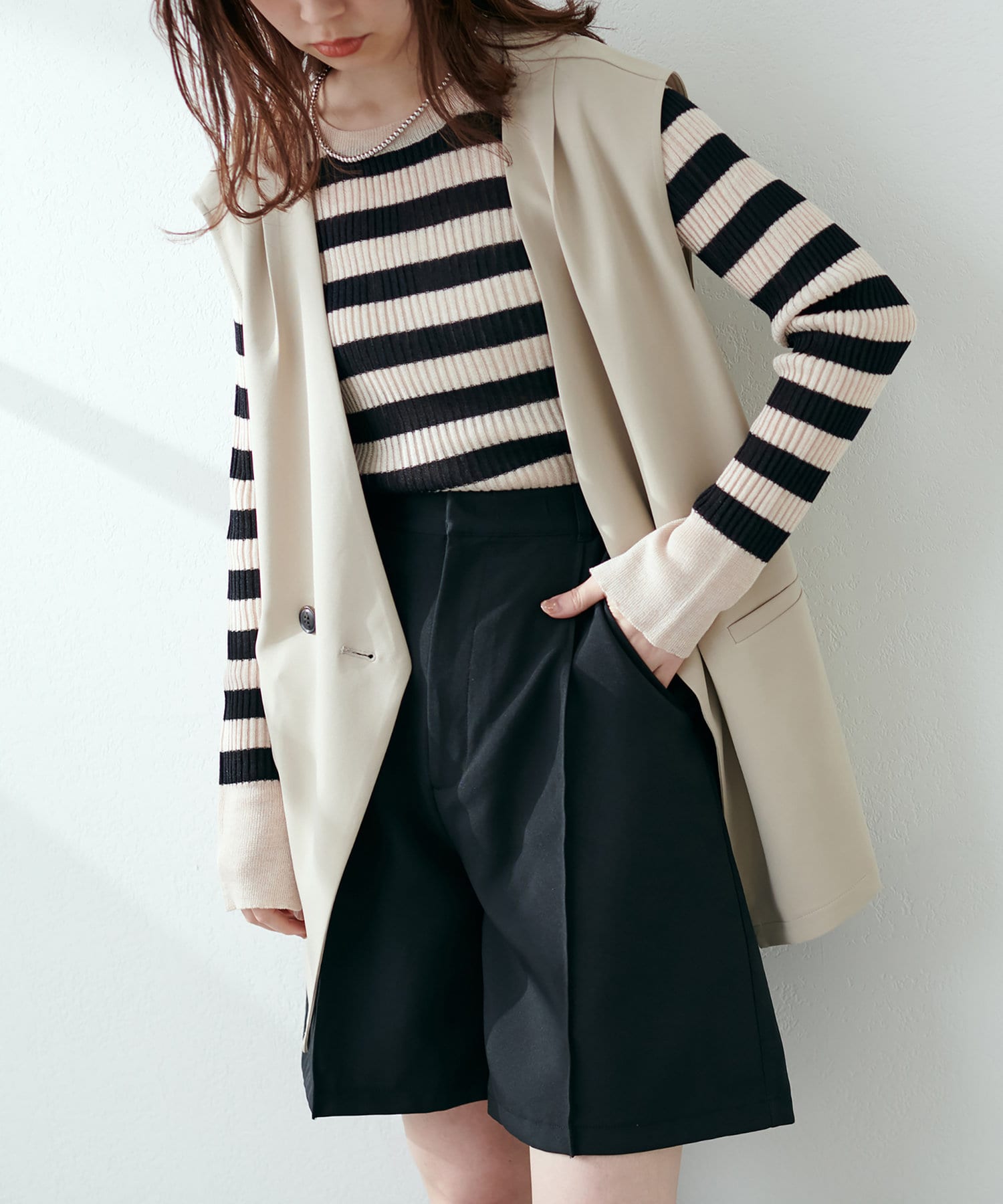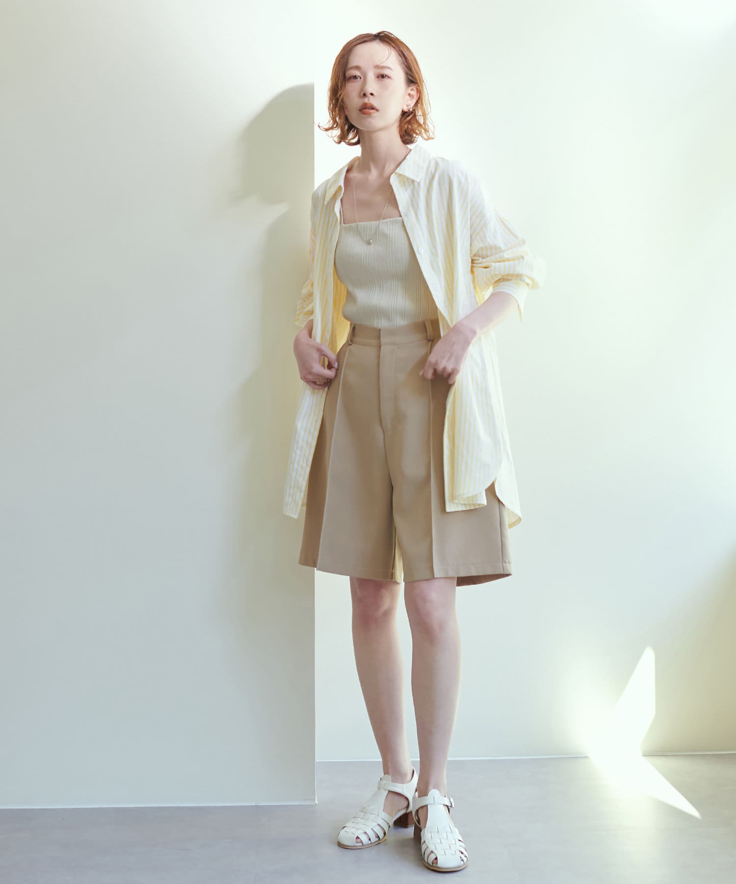 ミドル丈のシャツやブラウスをウエストアウトでさっと合わせたり、