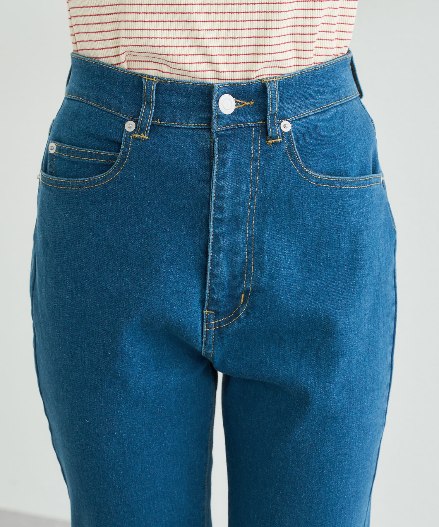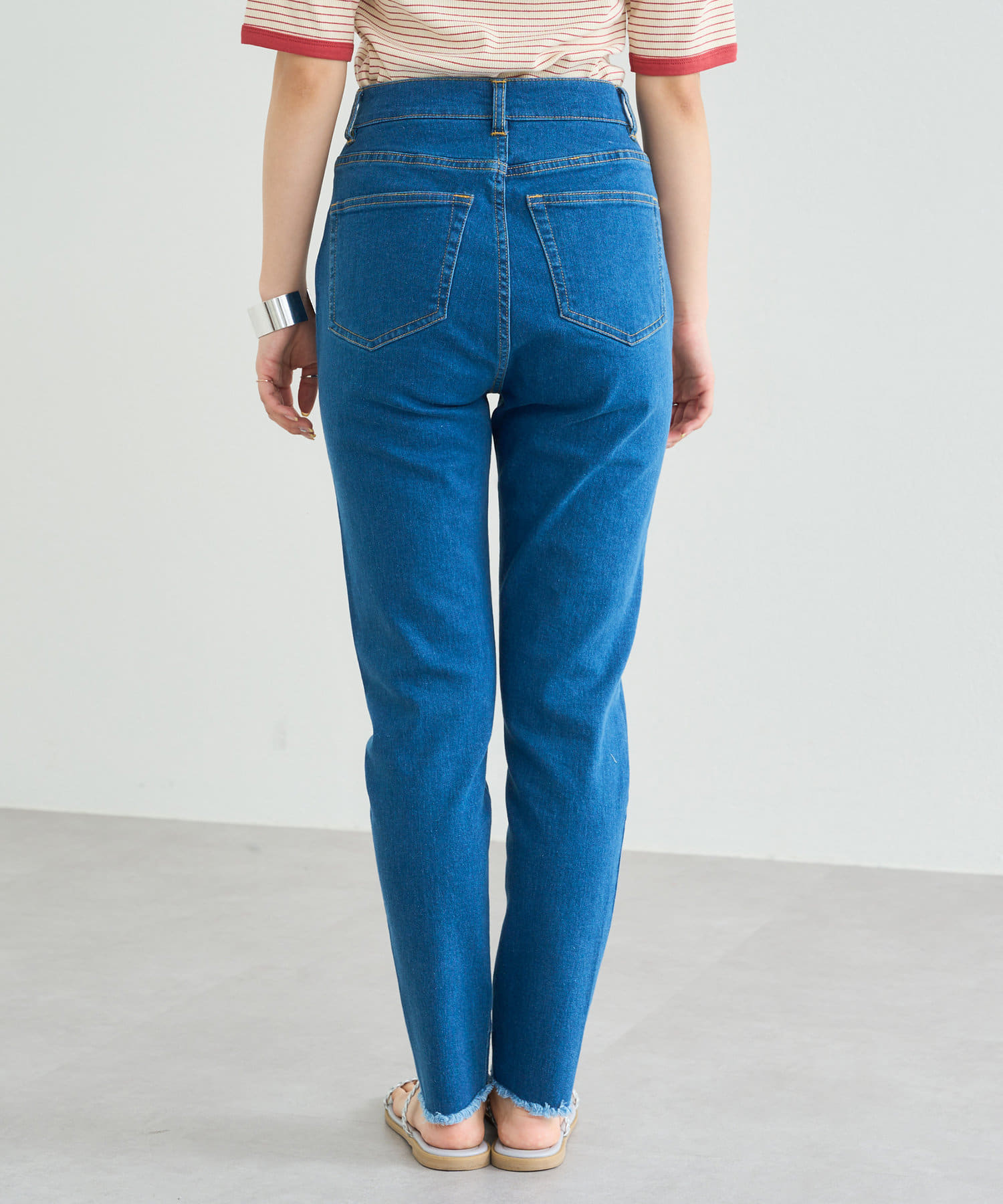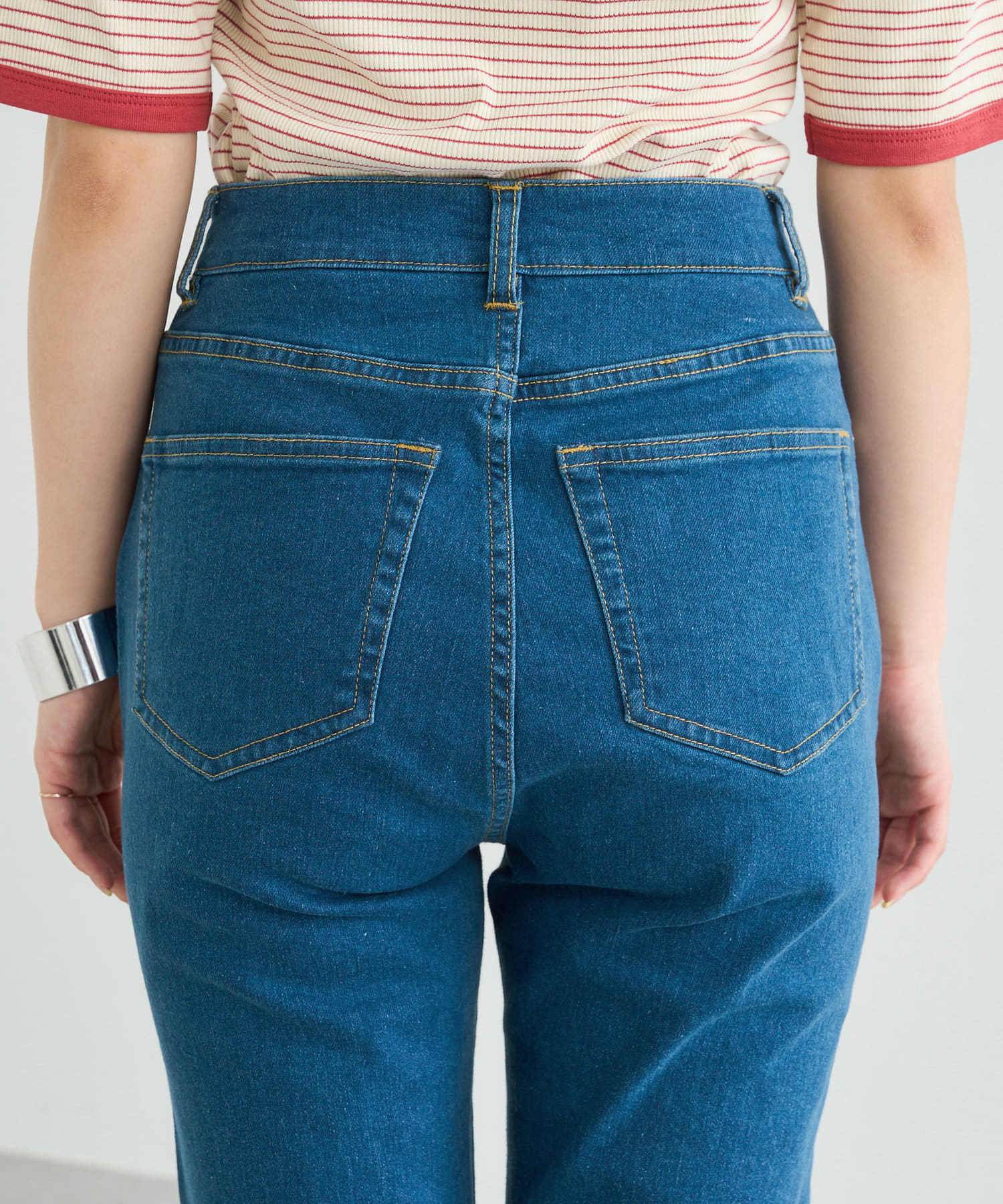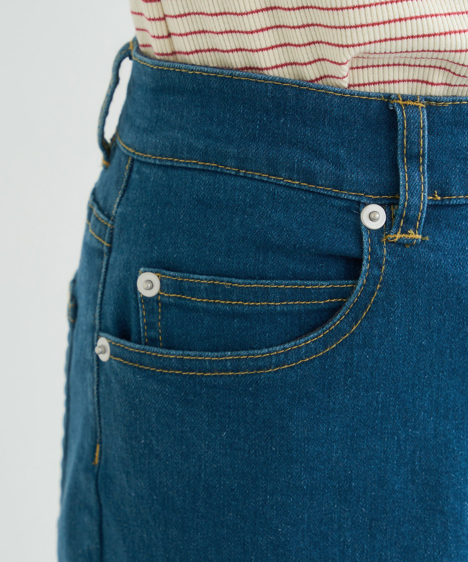 伸縮性のあるデニムを採用し、動きやすく程よく脚にフィットする素材。