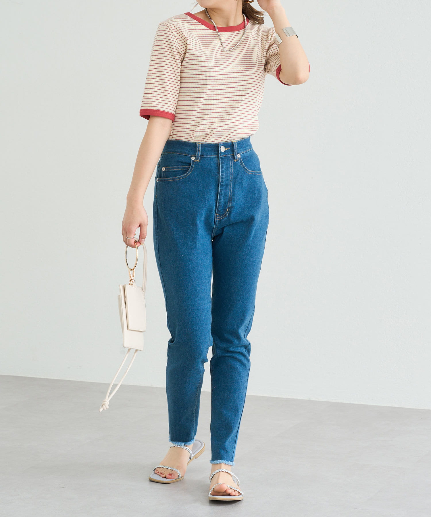 • natural couture(ナチュラルクチュール) 【プチナチュ】【低身長向け】デニムスキニーパンツ