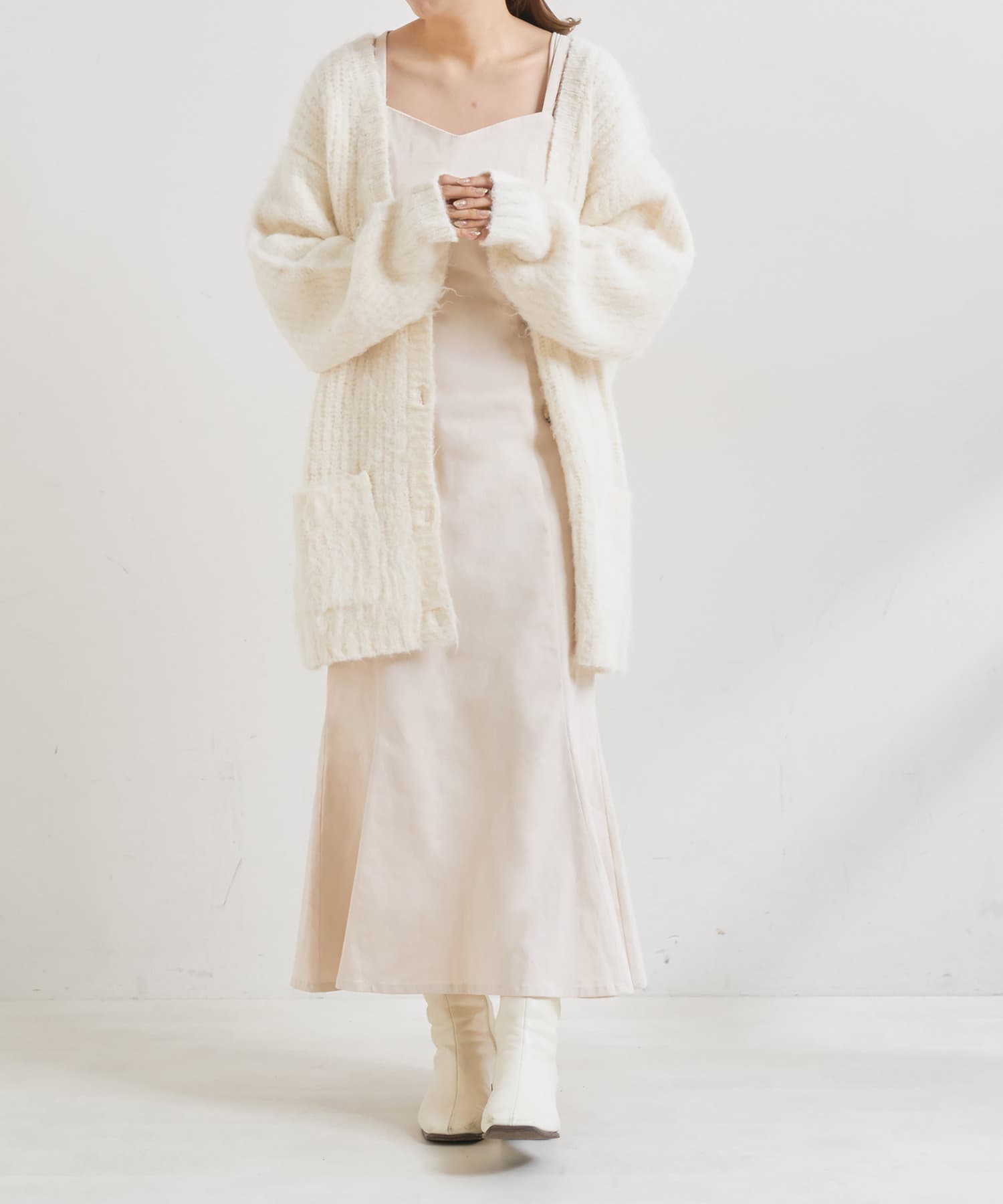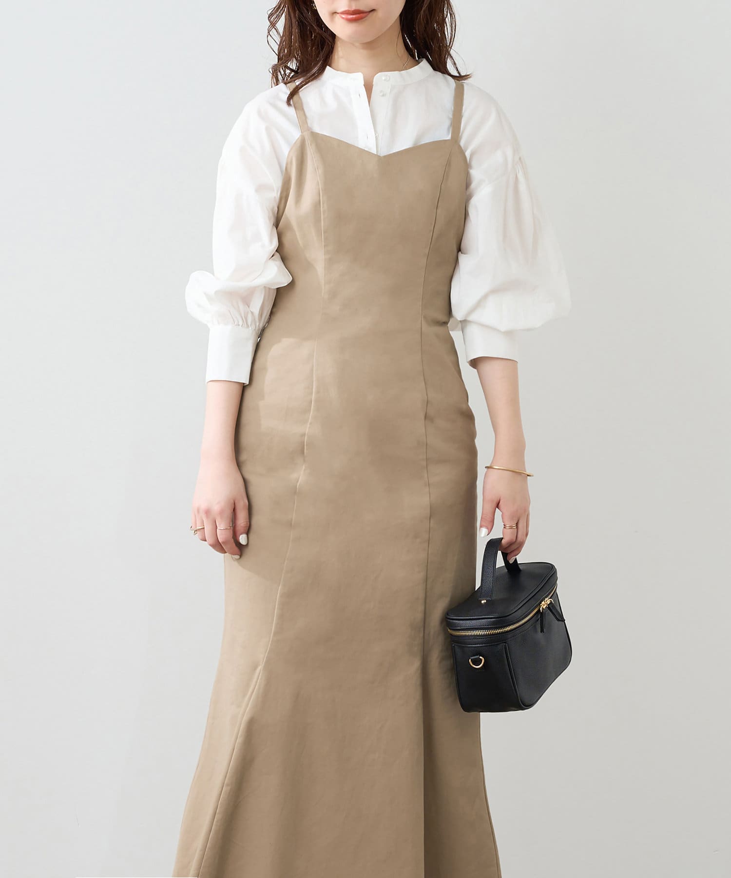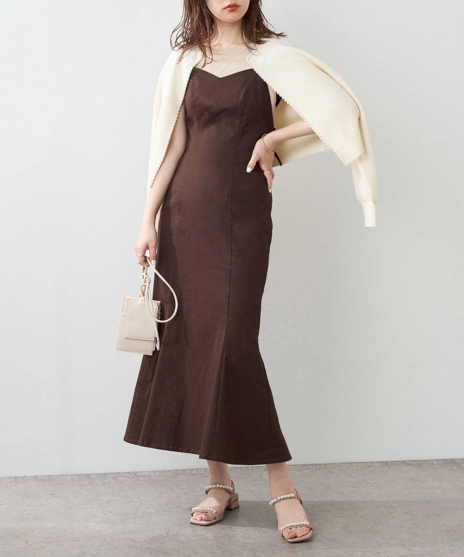 裾にかけて緩やかなマーメイドラインが、着るだけで女性らしさをアップしてくれます。