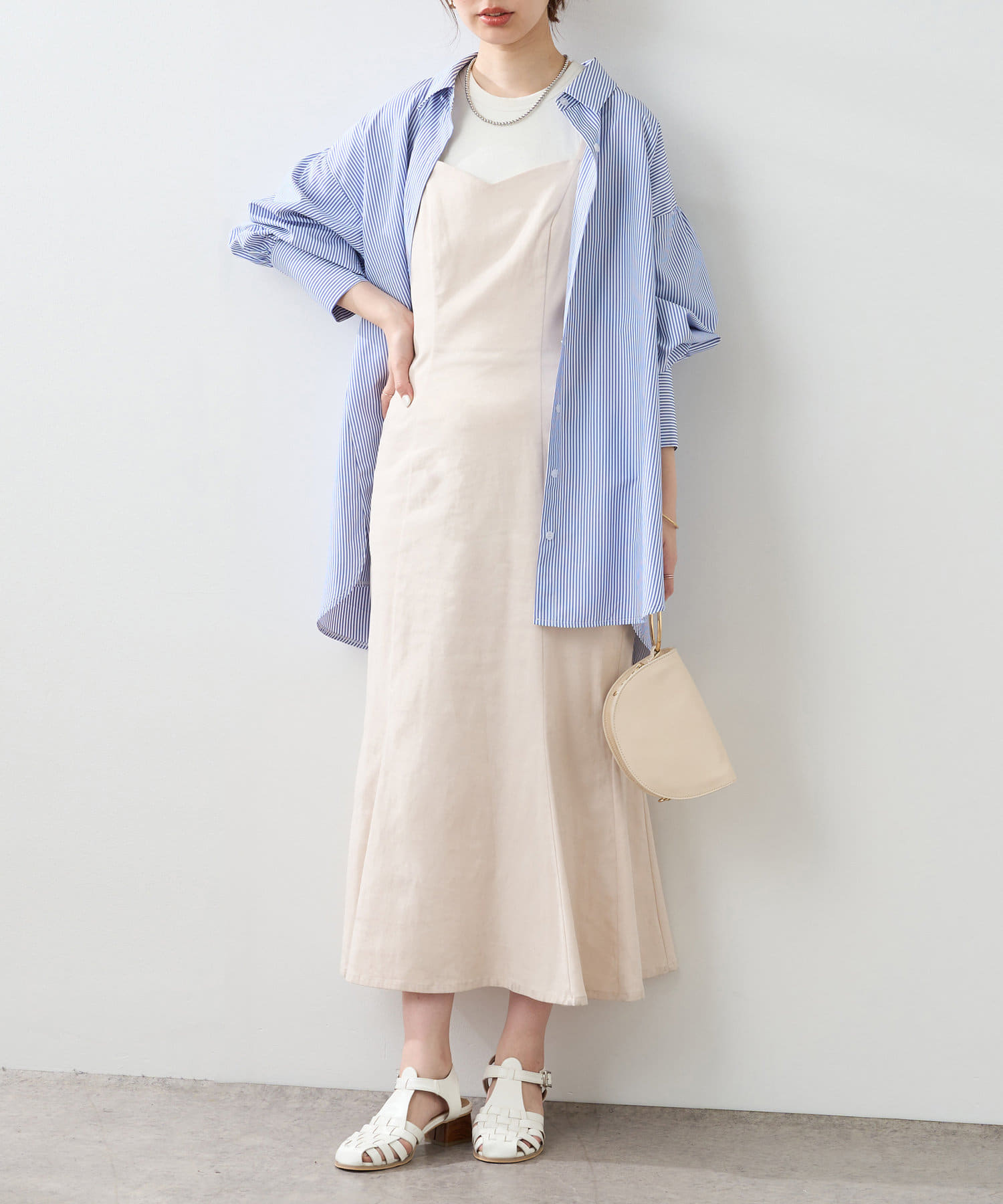 ジャンスカタイプなので、インナーにタンクトップやキャミソールを合わせて羽織りアイテムで