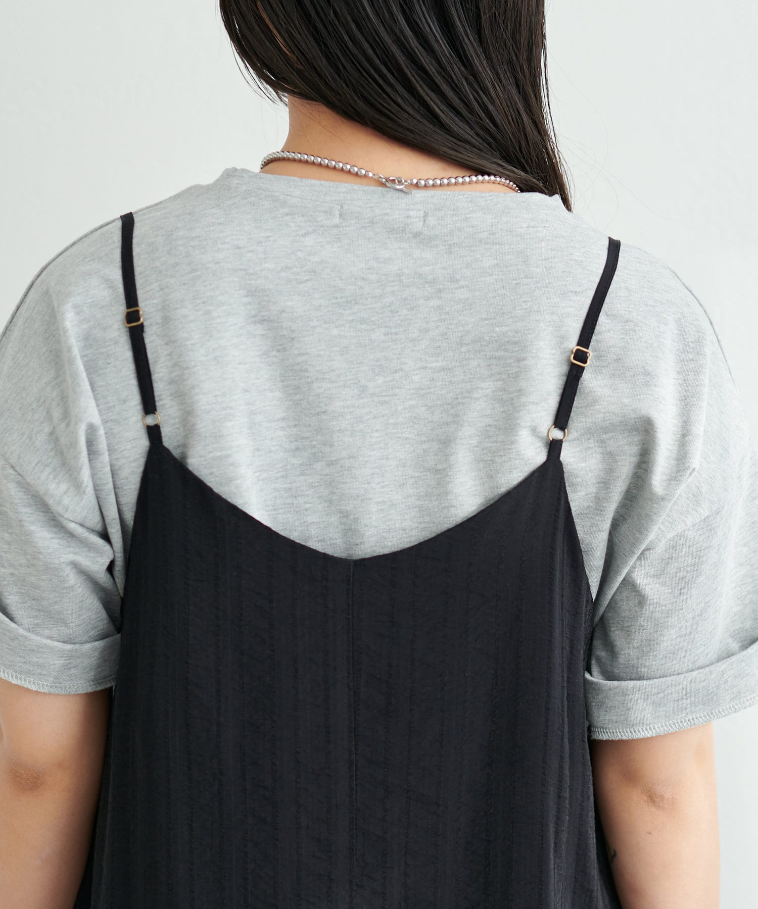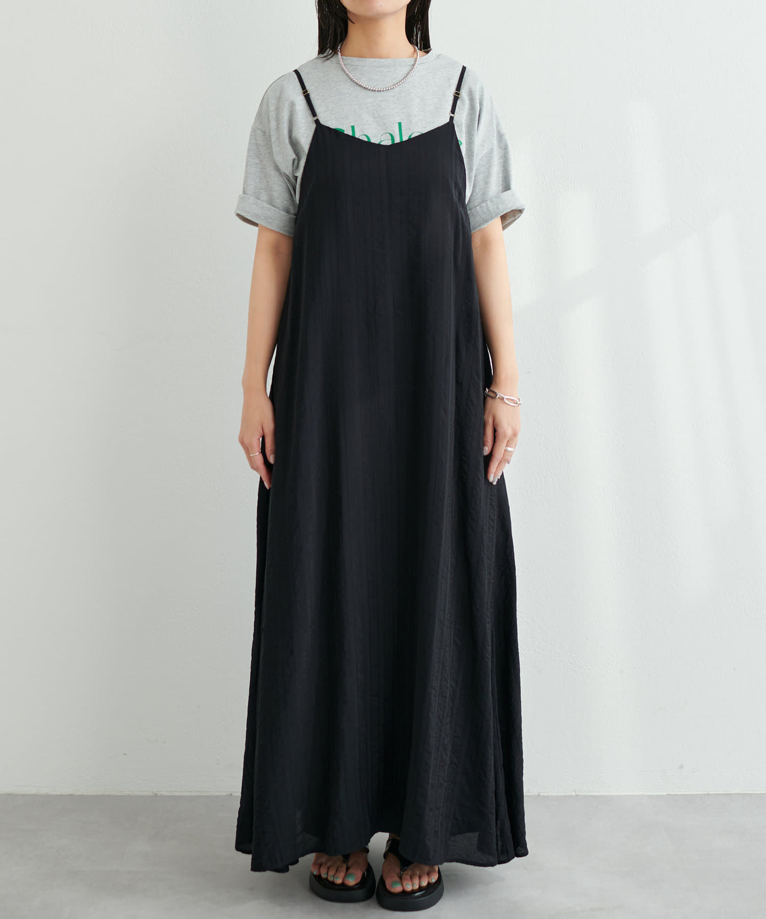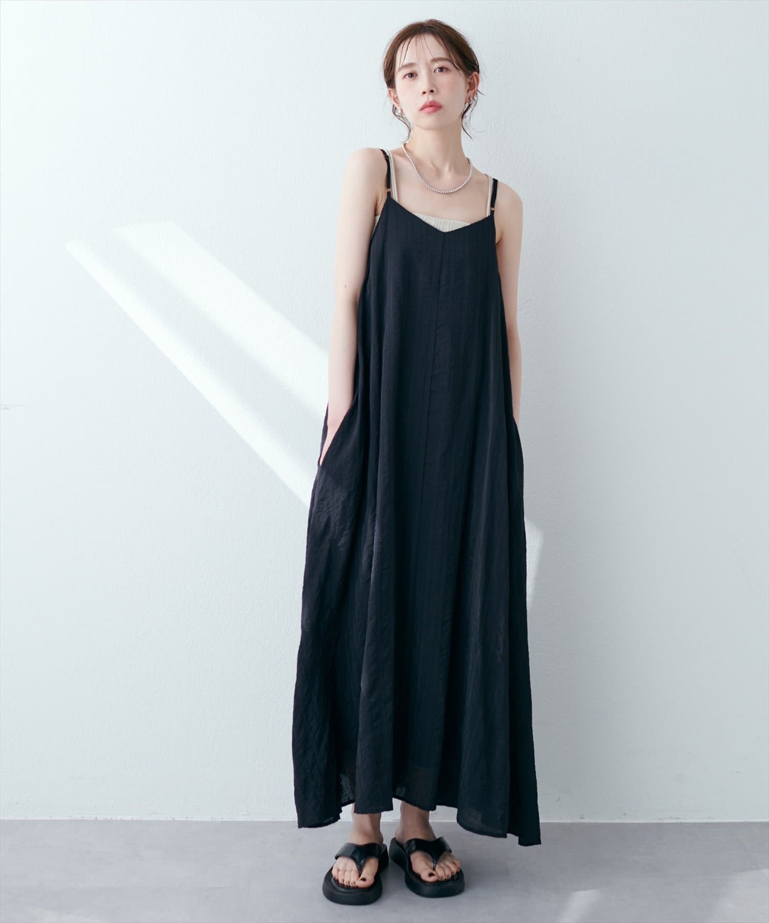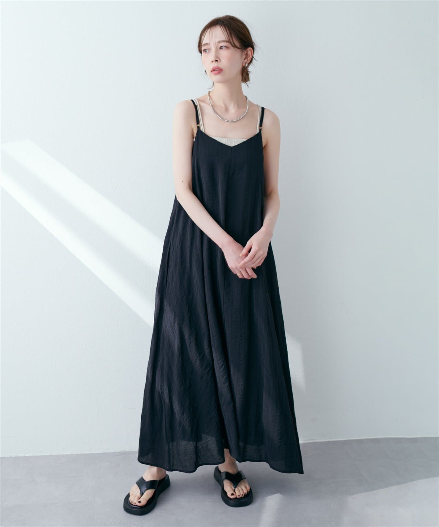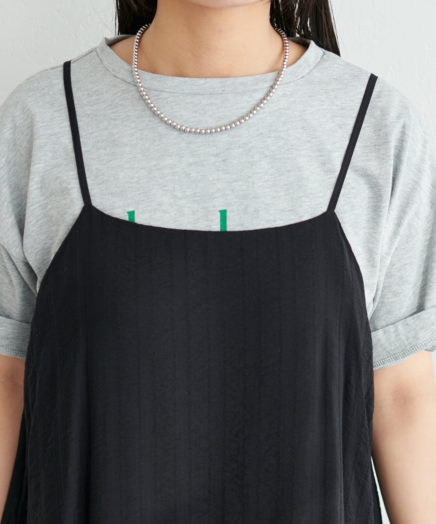 シンプルなキャミソールやタンクトップをインナーにして、シンプルに1枚でさらっとお召し頂き、